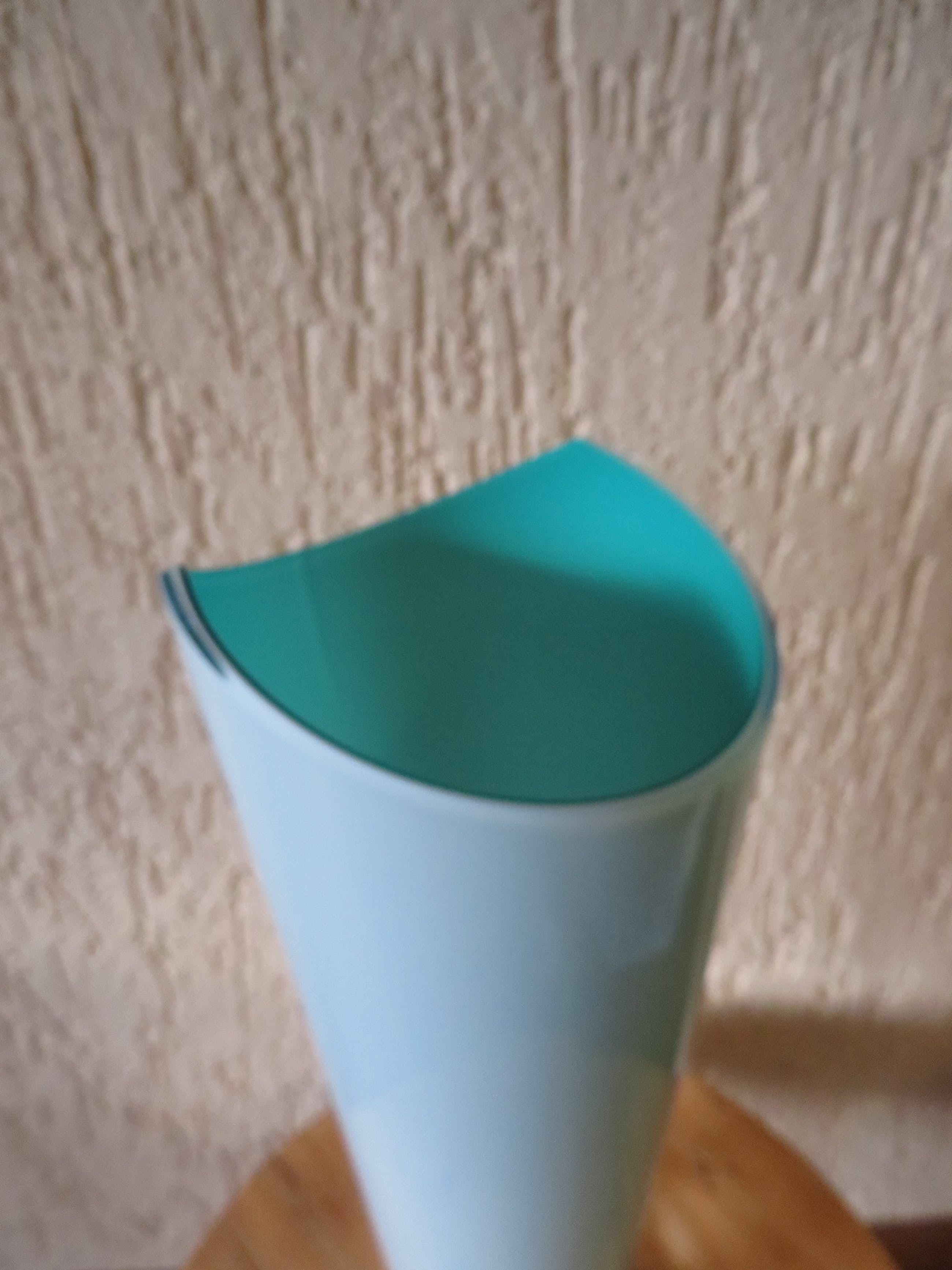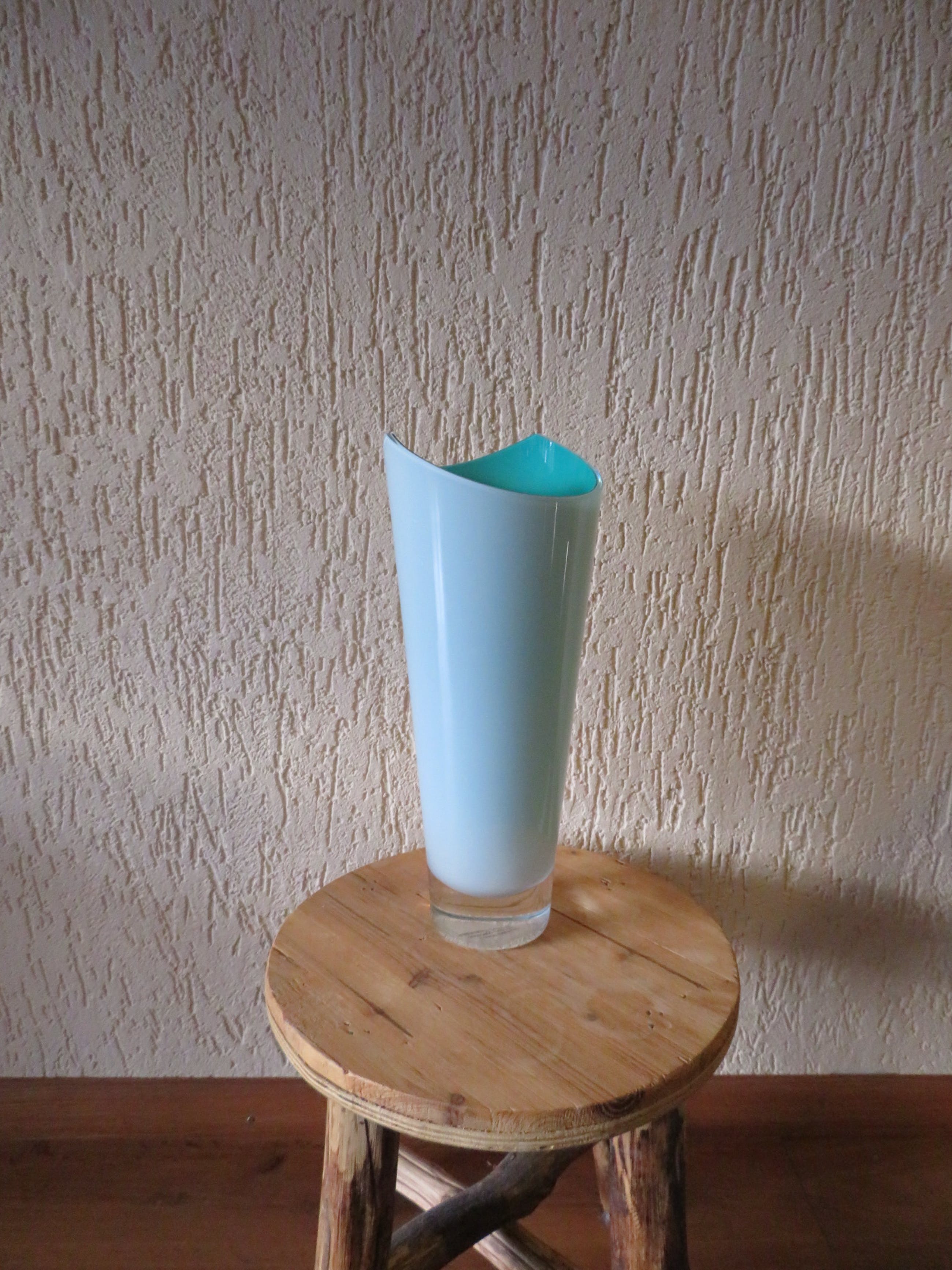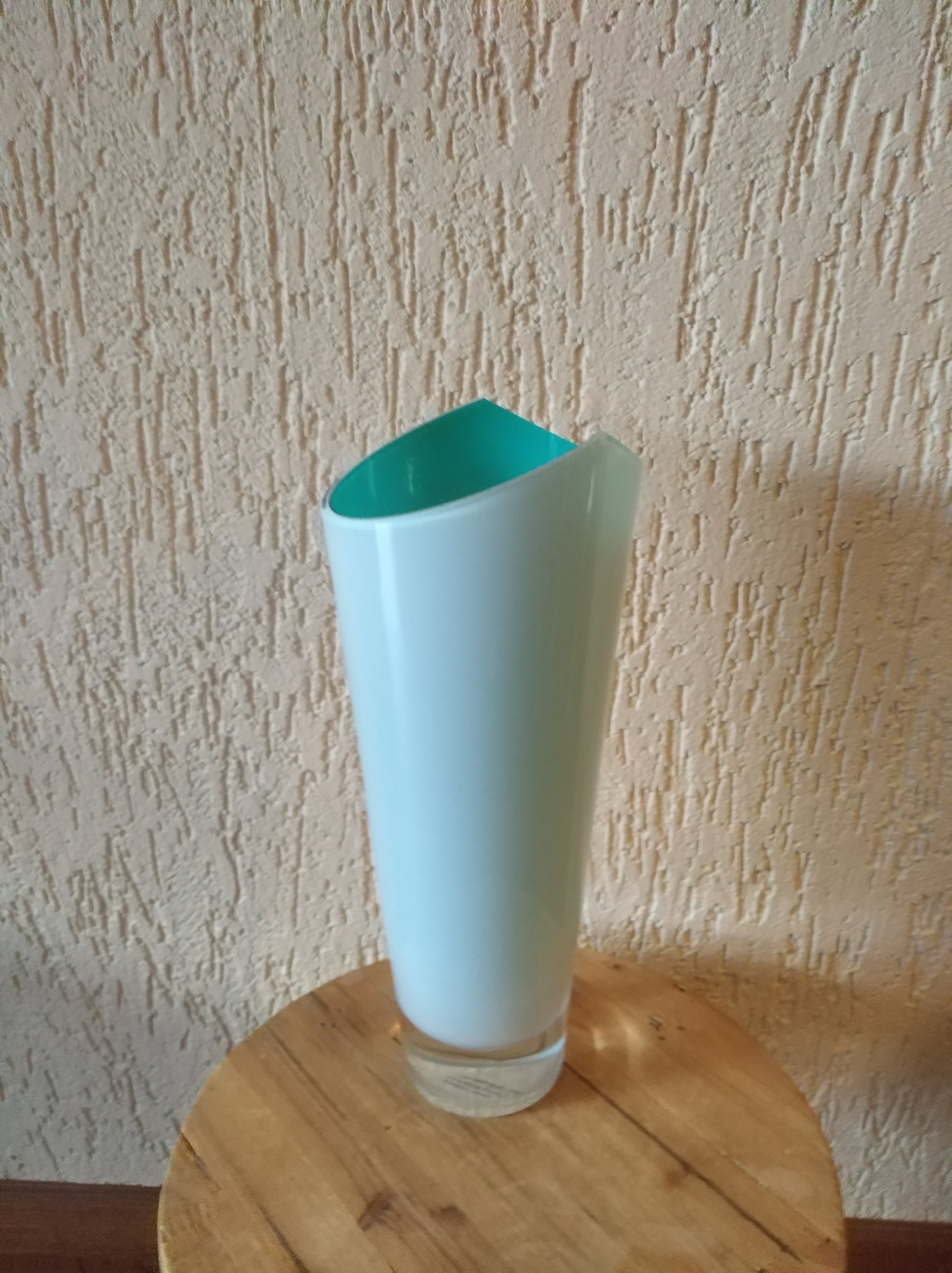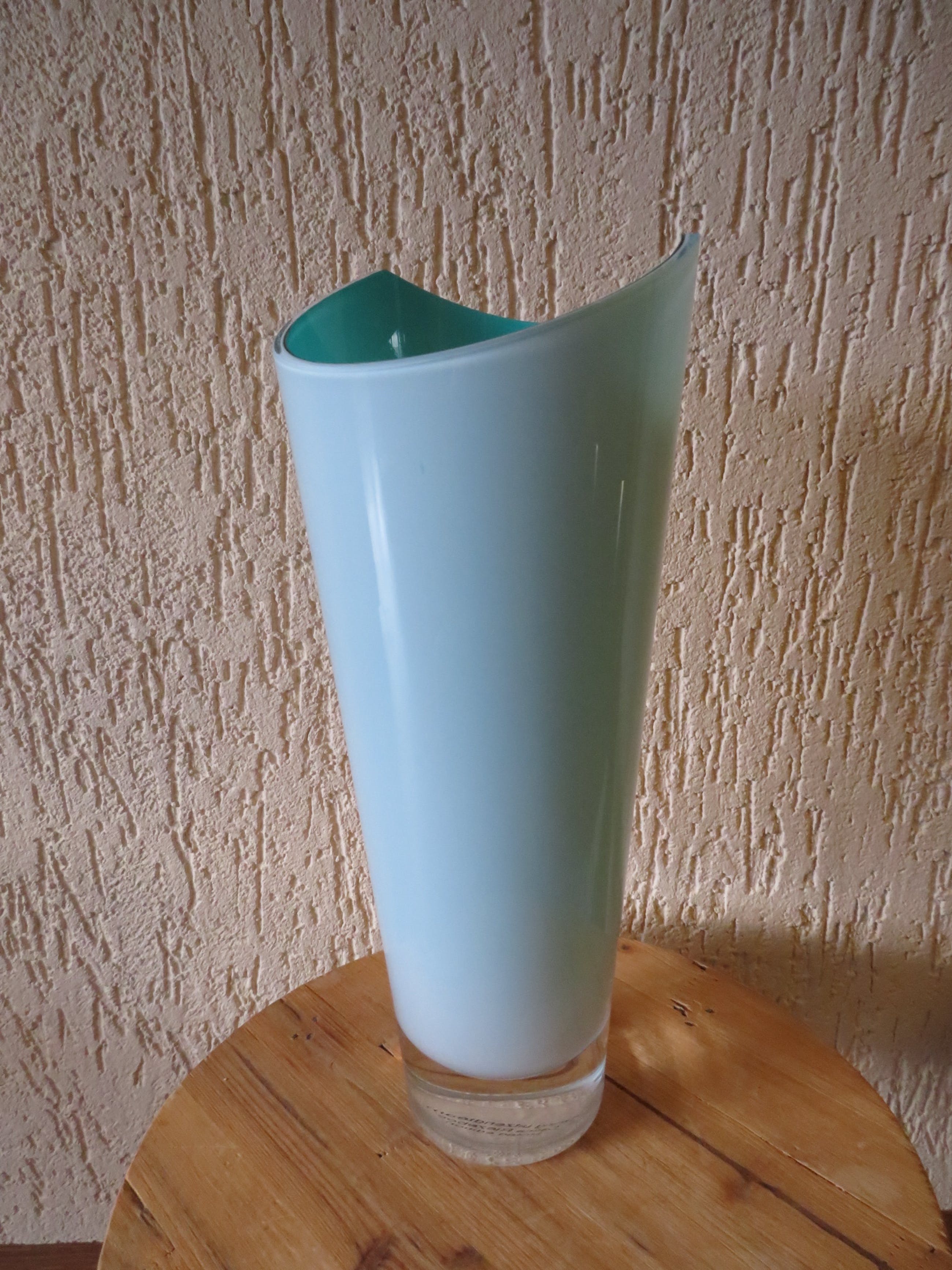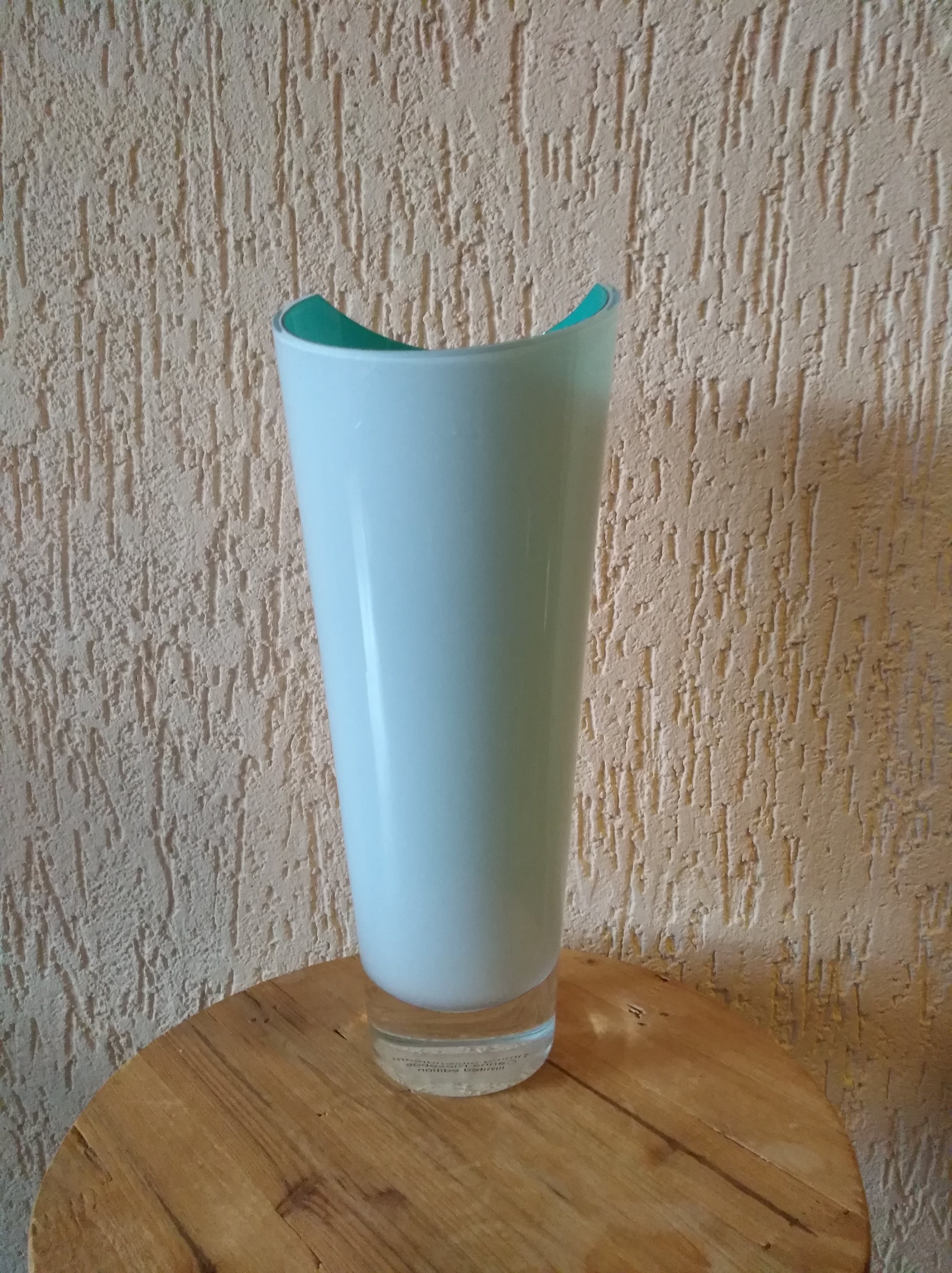 Beschrijving Mooie vaas van Carina Riezebos. Type Batman. Limited Edition. Kleur wit met groen/mint aan de binnenkant. - hoogte ongeveer 33 cm
