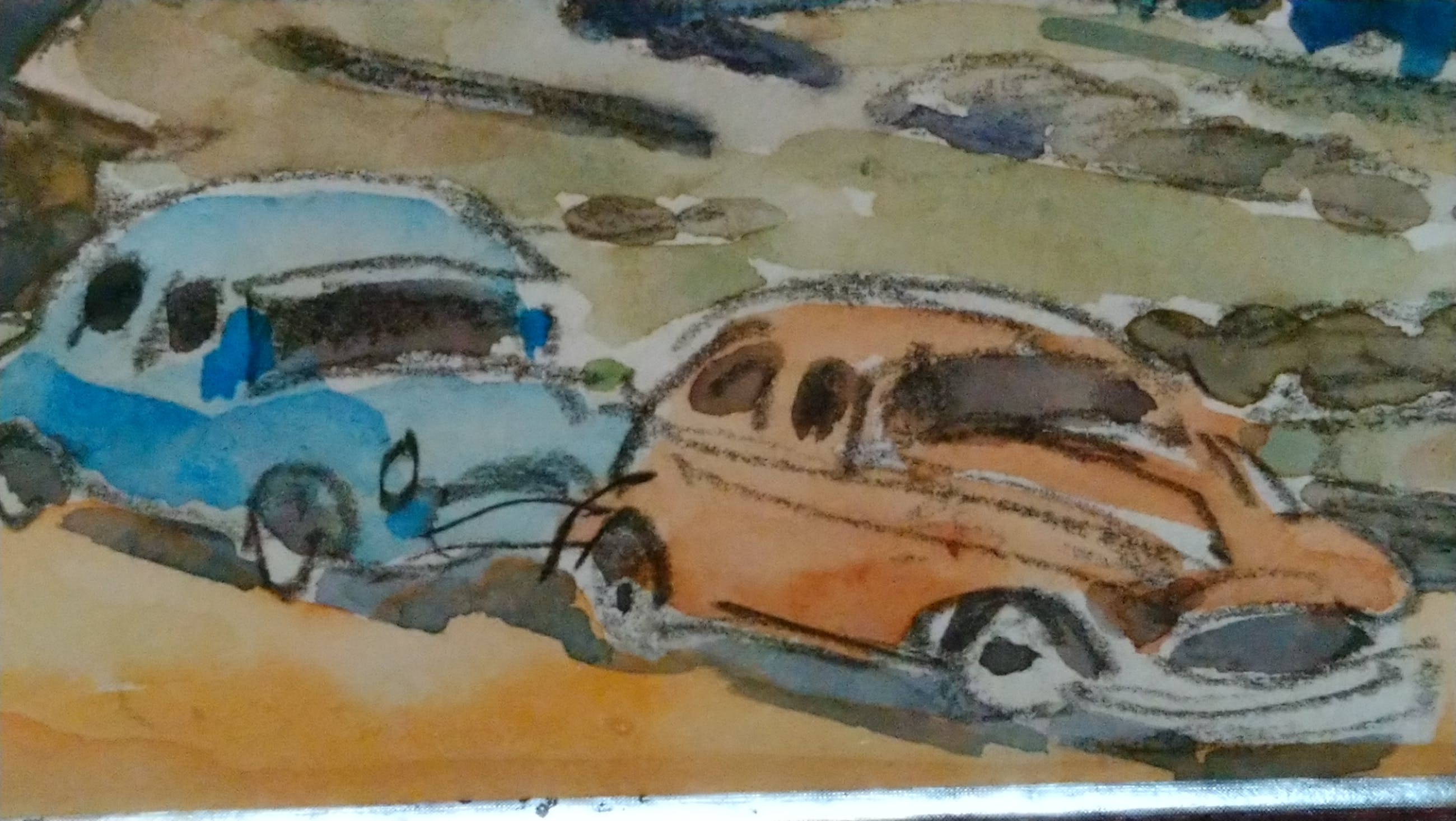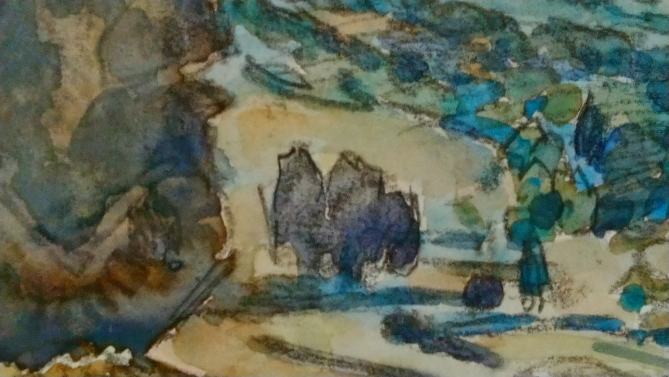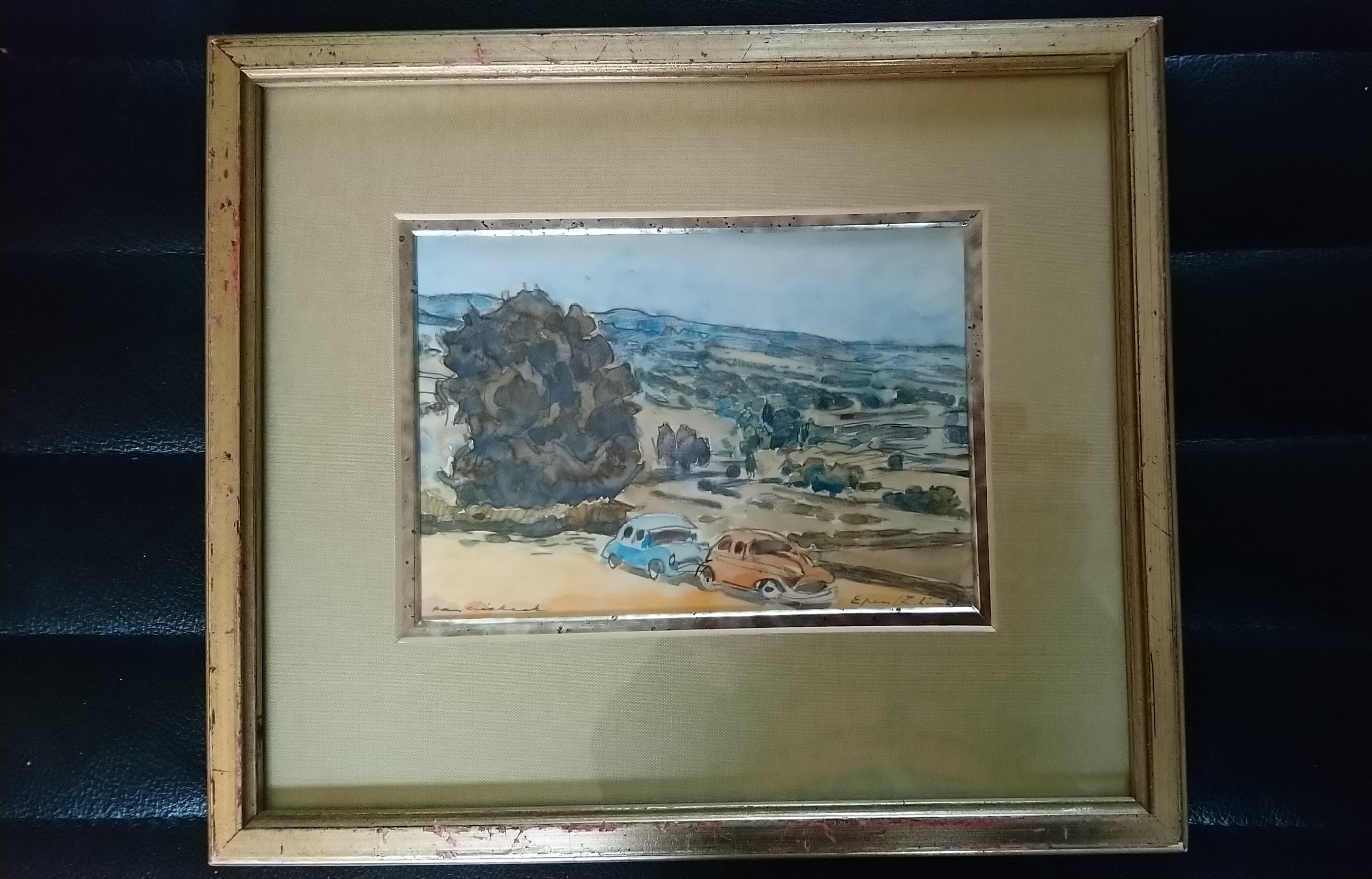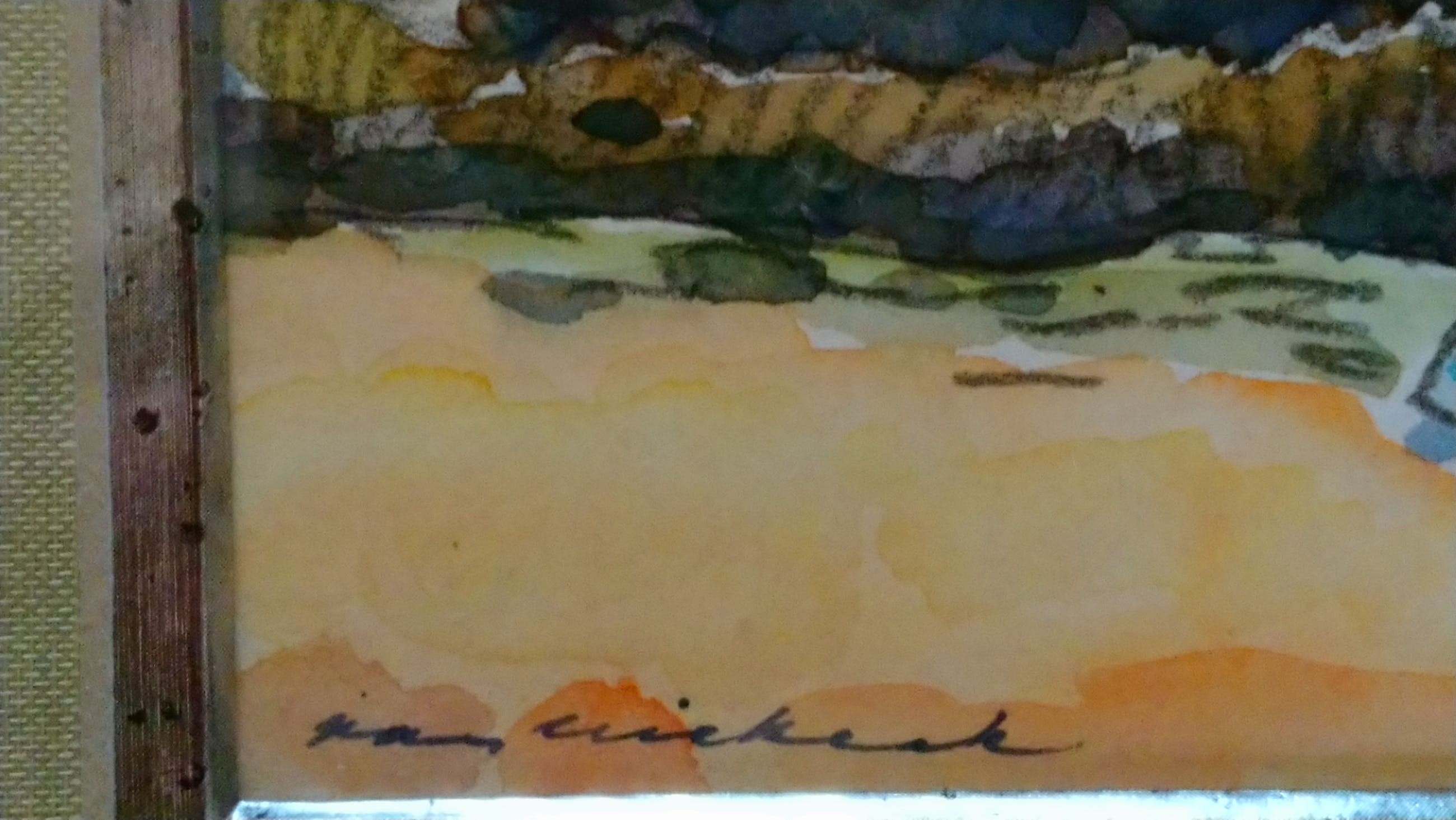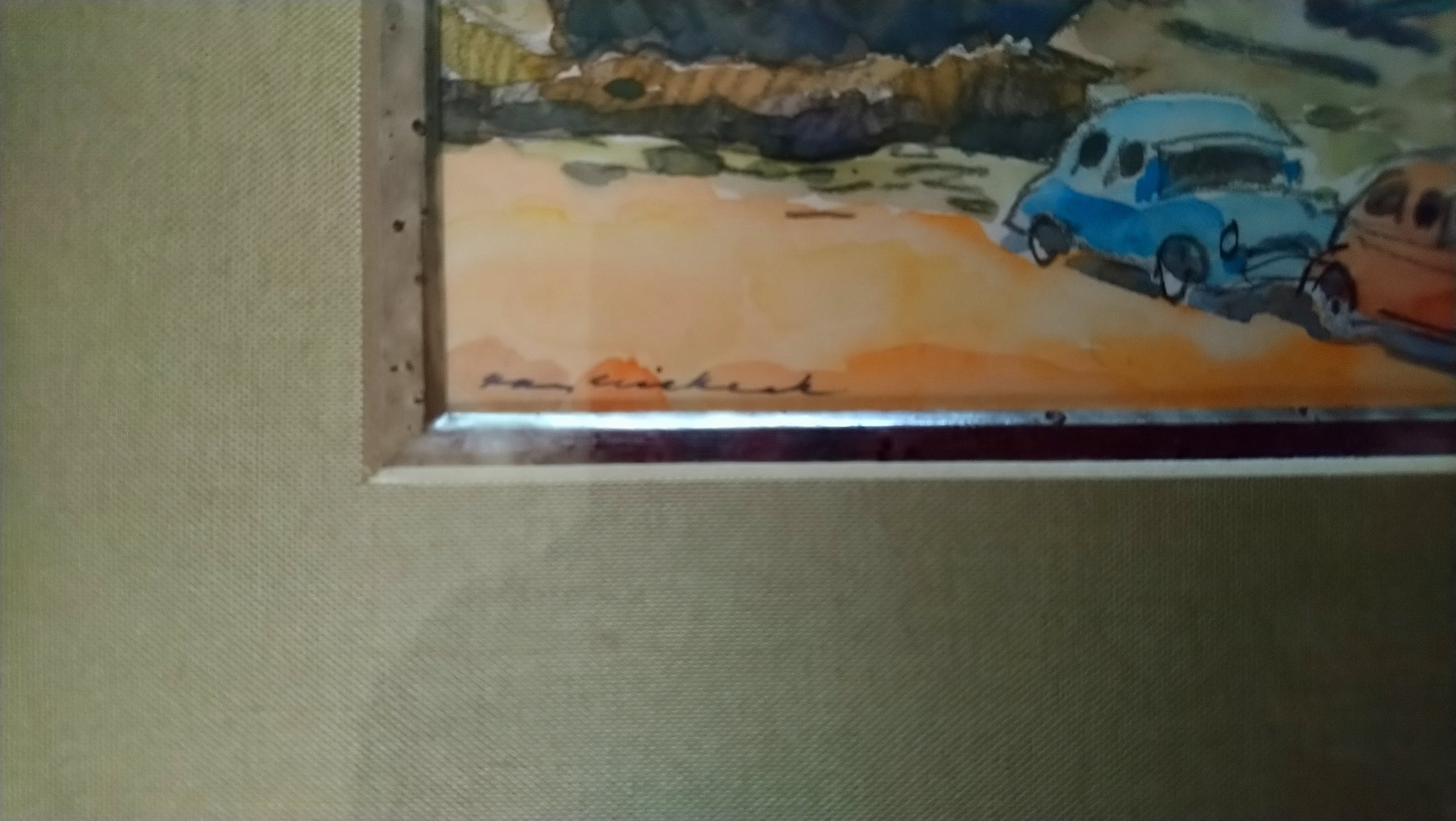 De conditie van het aquarel is zeer goed. De lijst er omheen heeft echter wel gebruikssporen.