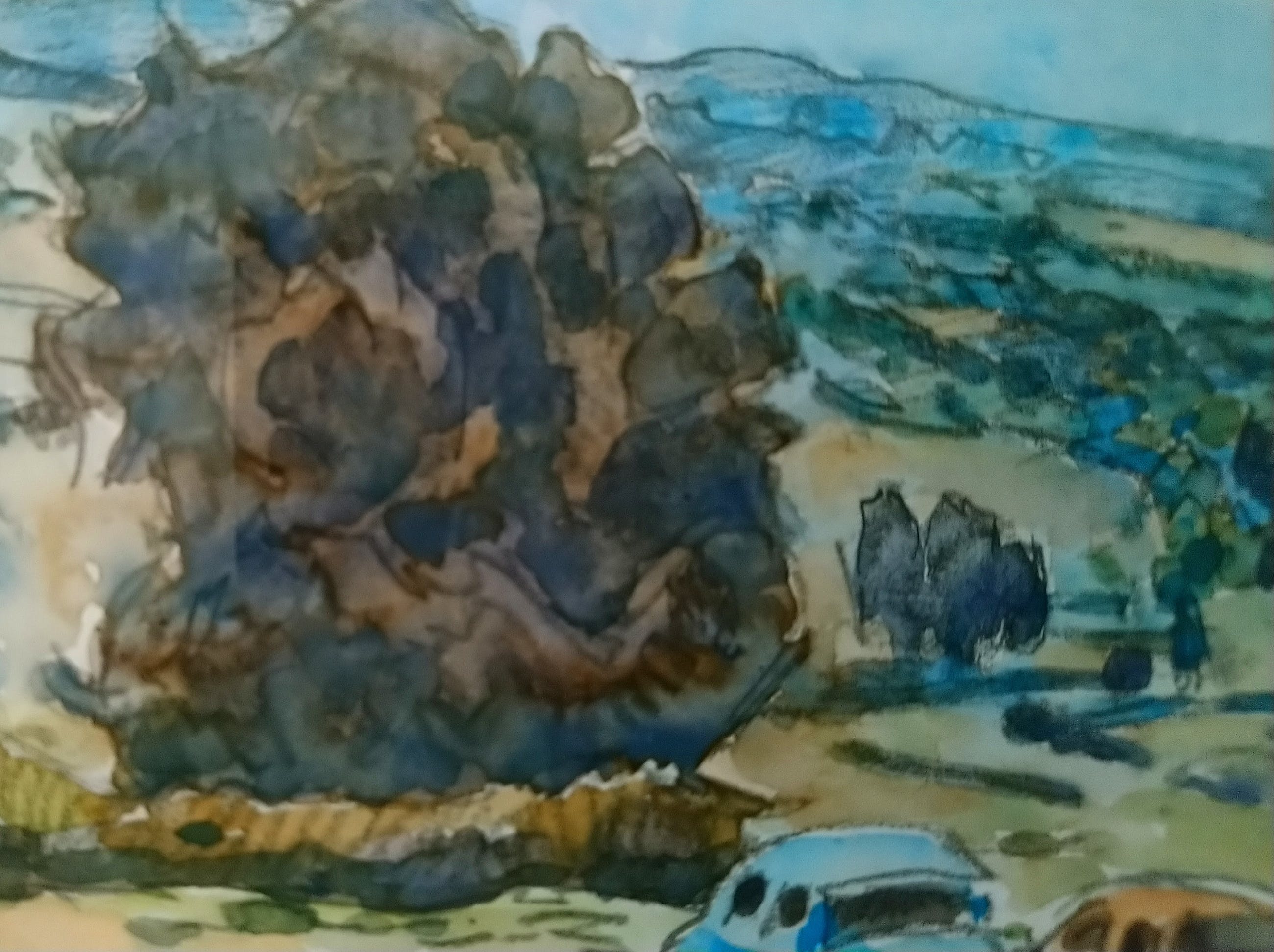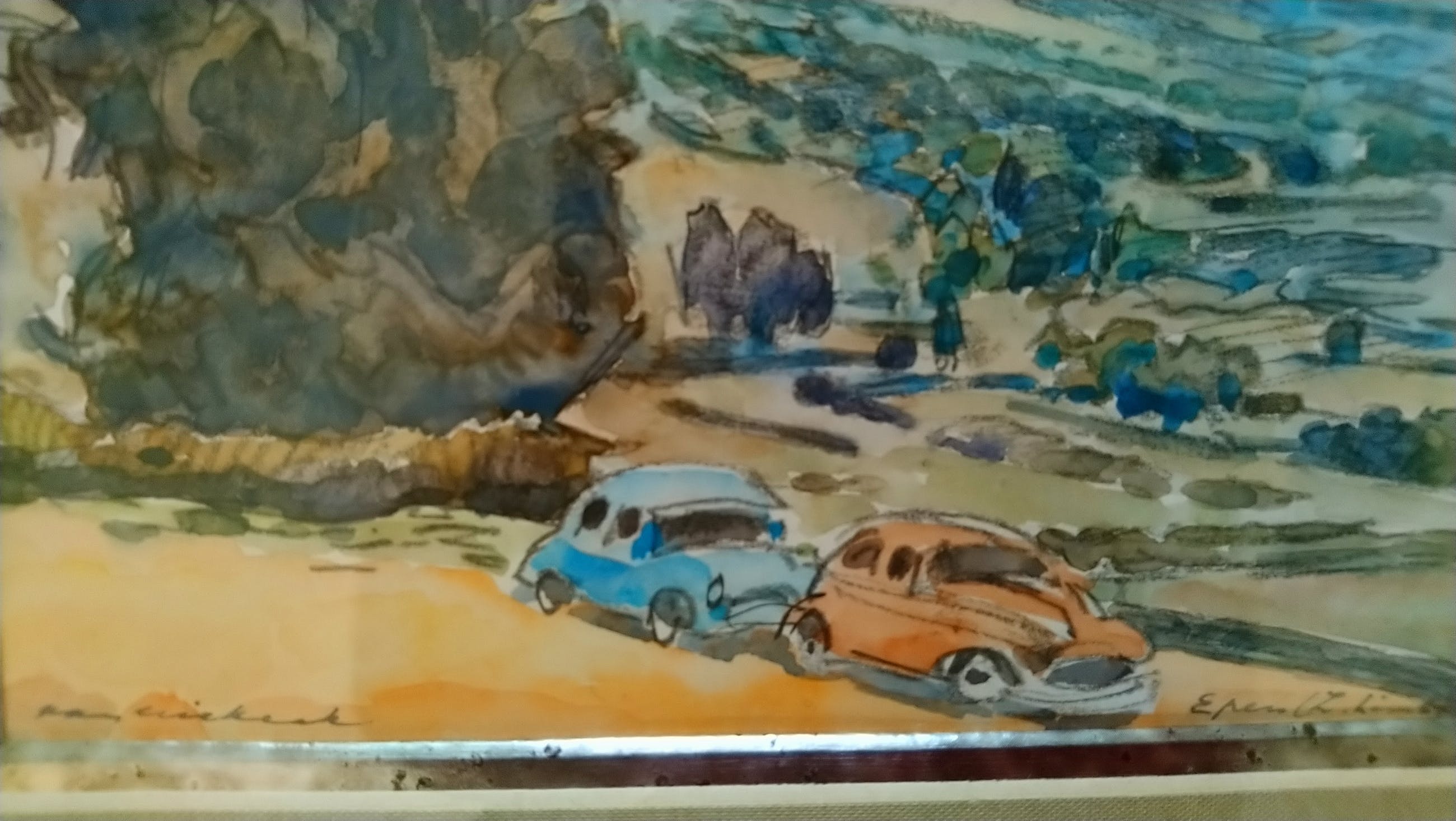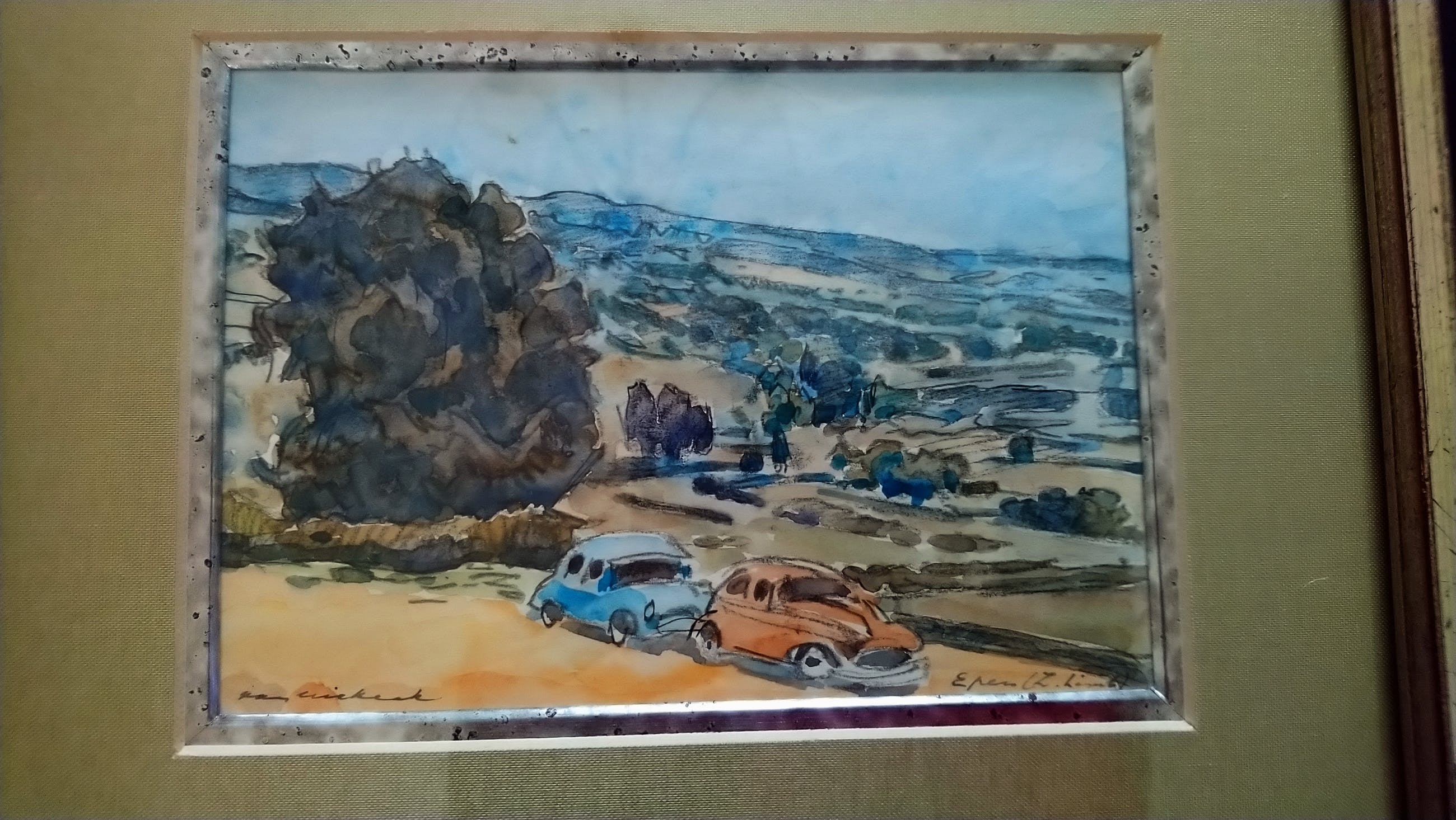 Aquarel van C.C. van Niekerk "Bij ons Krijtland" Zuid Limburg Epen 1962 Gesigneerd door C.C. van Niekerk