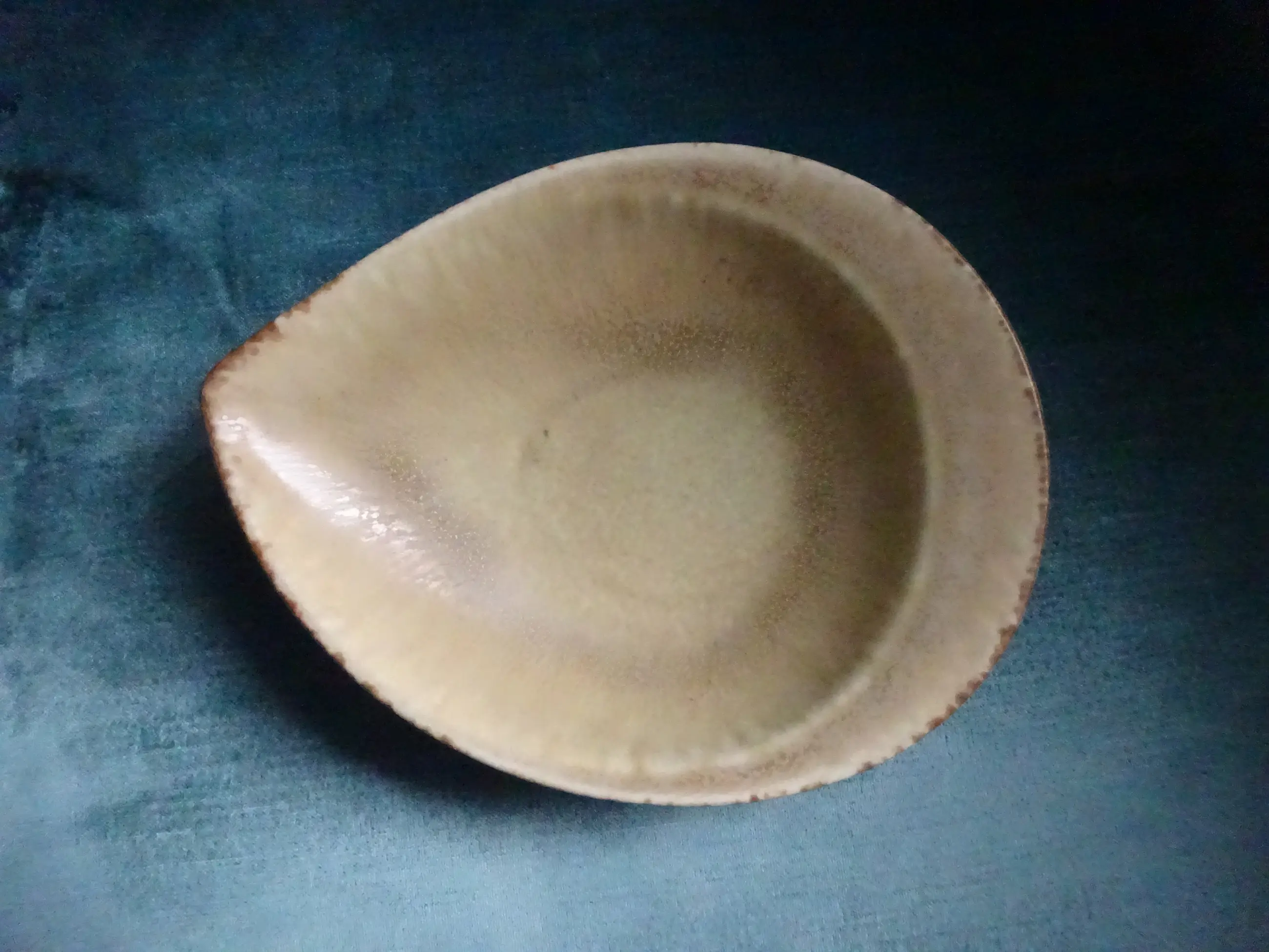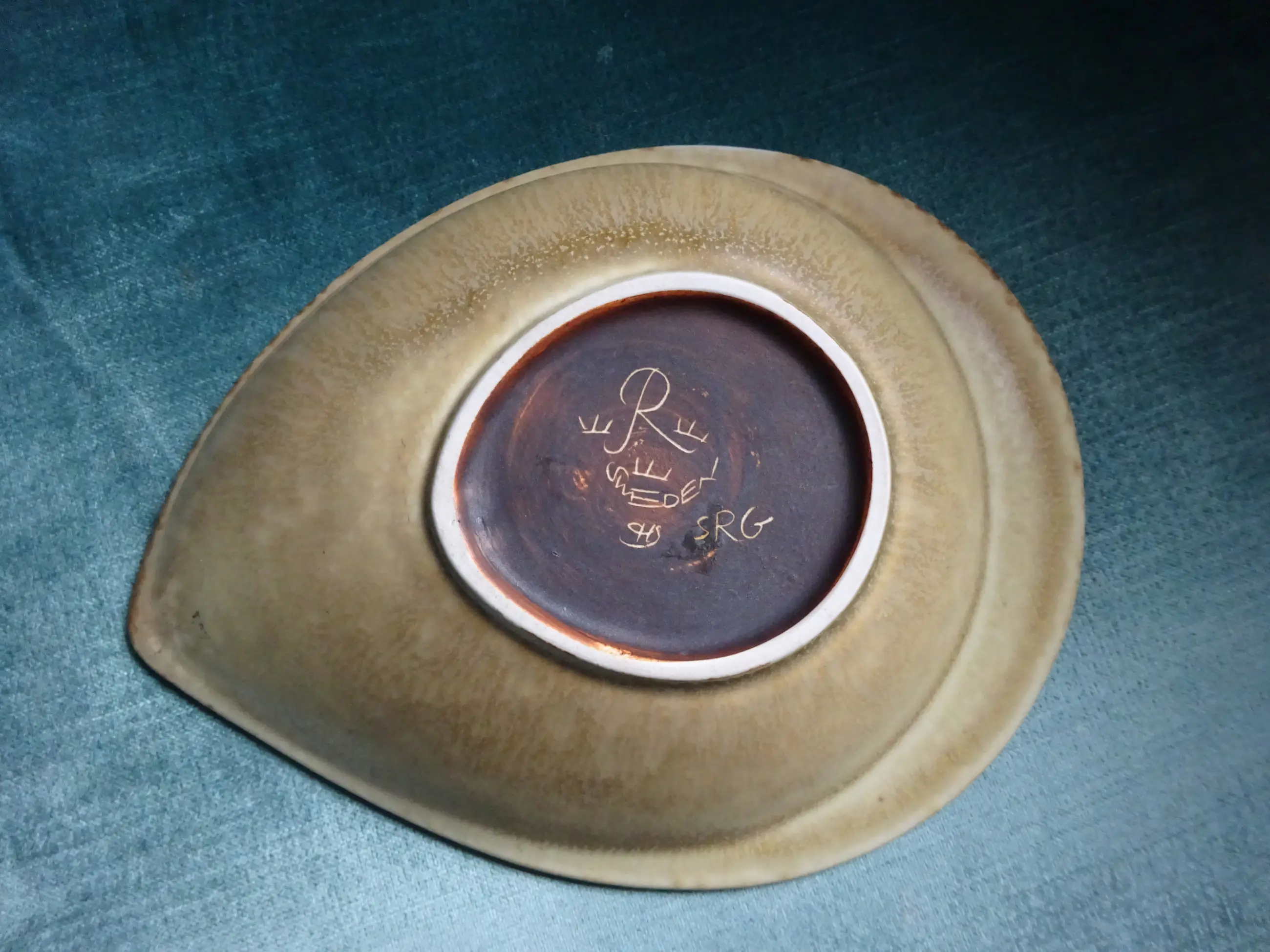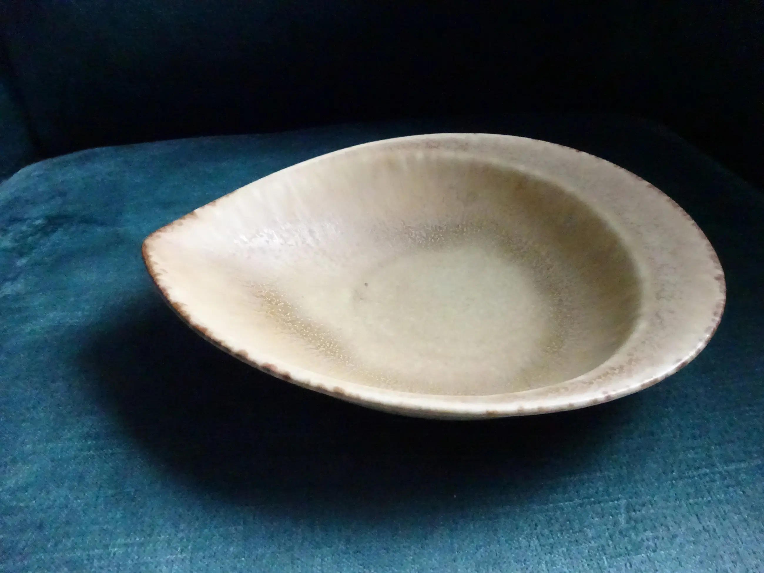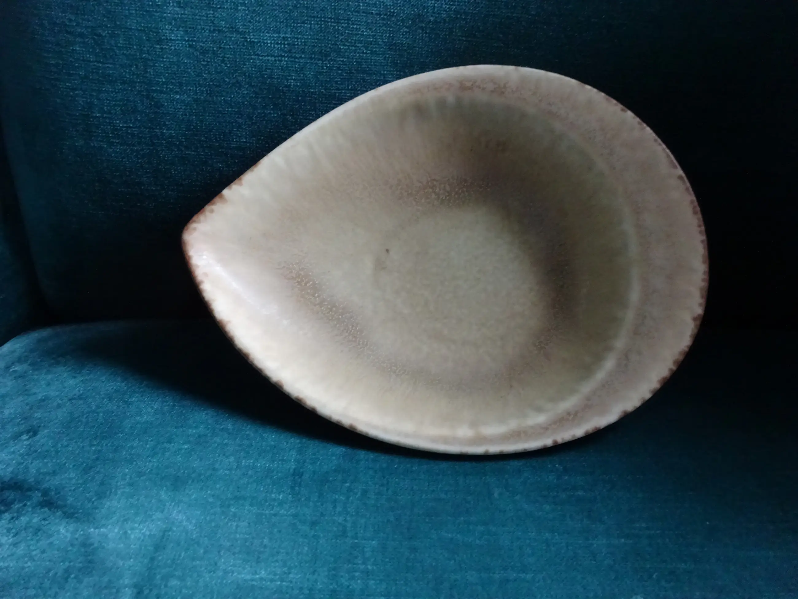Steengoed schaaltje in schelpvorm Ontwerp: Carl Harry Stalhane 1920-1990 Uitvoering: Rorstrand Sweden Jaar: 1954 (VK) Serie: SGR Kleur: beige/oker/grijs/lichtgeel Merk: achterzijde zie foto's Afmeting: ca lengte 20.5 cm, breed 16 cm, hoog 4 cm Conditie: prachtige staat en patine