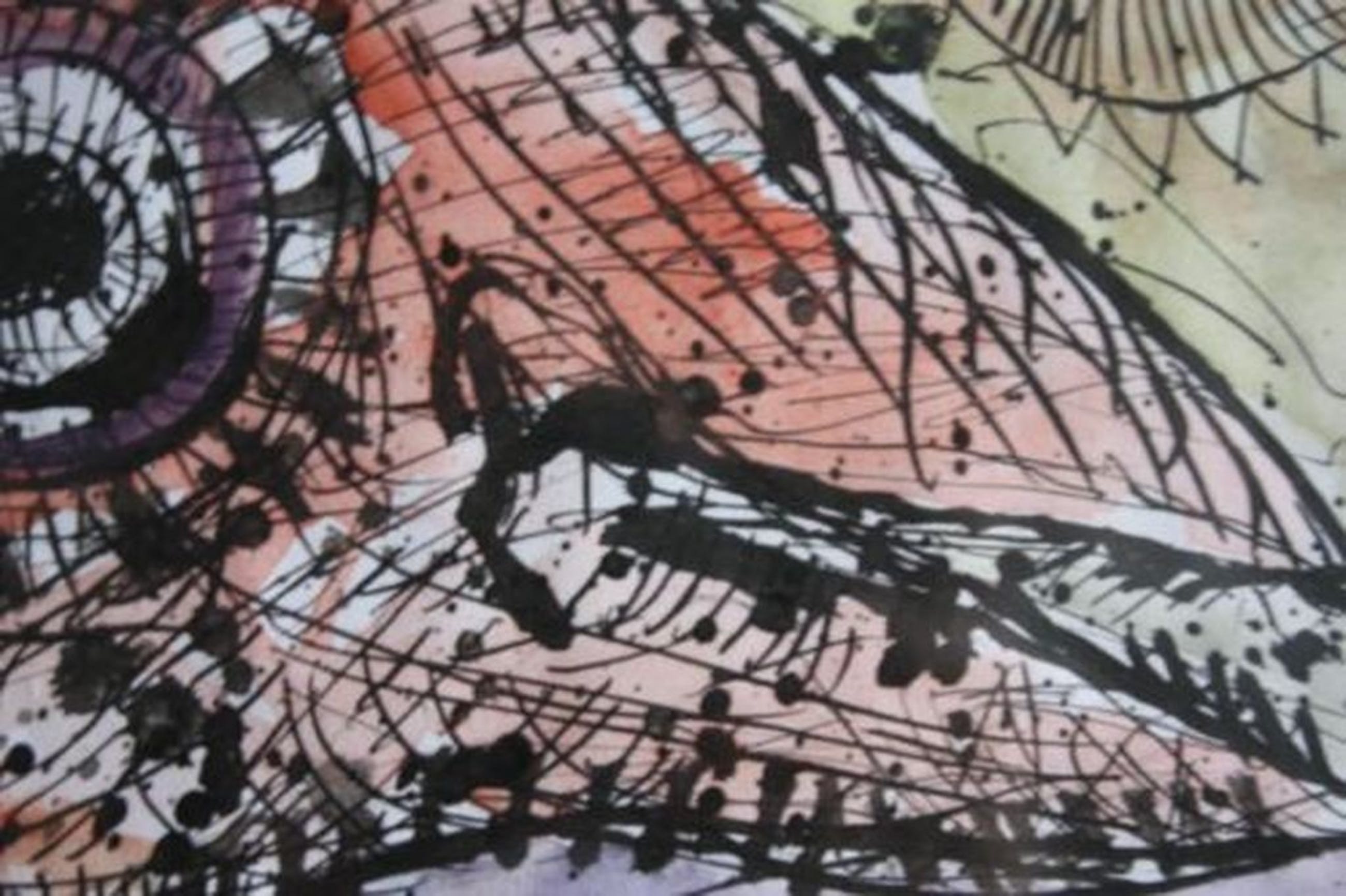 Origineel werk (waterverf en inkt) van de Deense Cobra artiest Carl-Henning Pedersen.