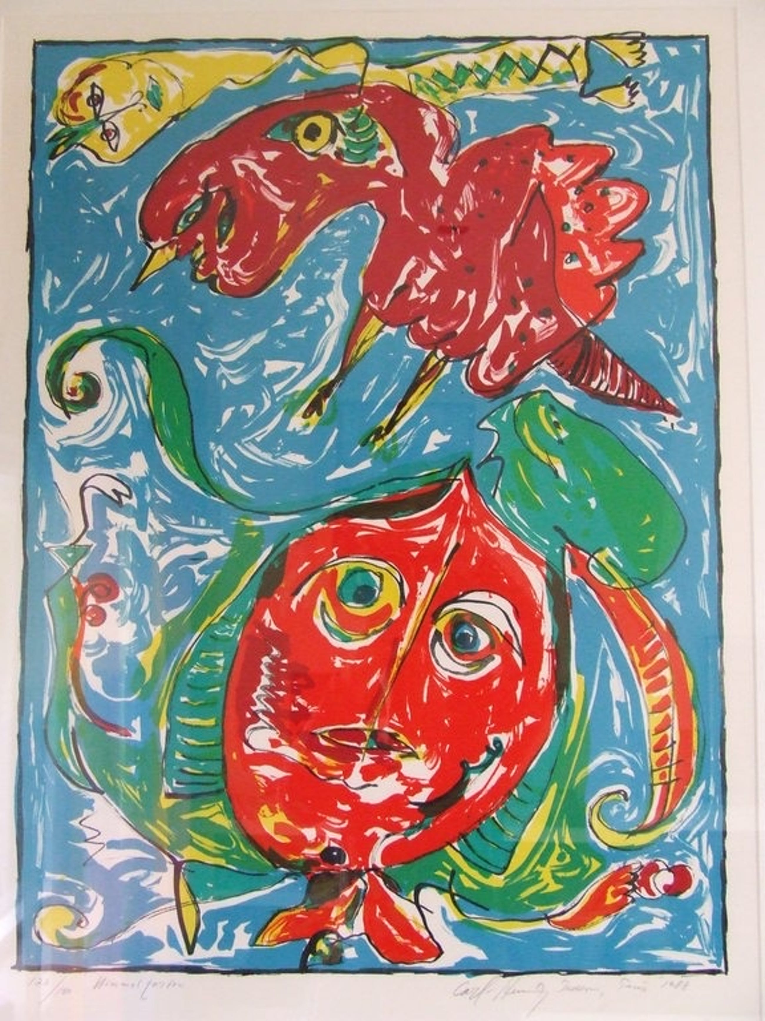 Groot en mooi ingelijst werk van Carl Henning Pedersen.