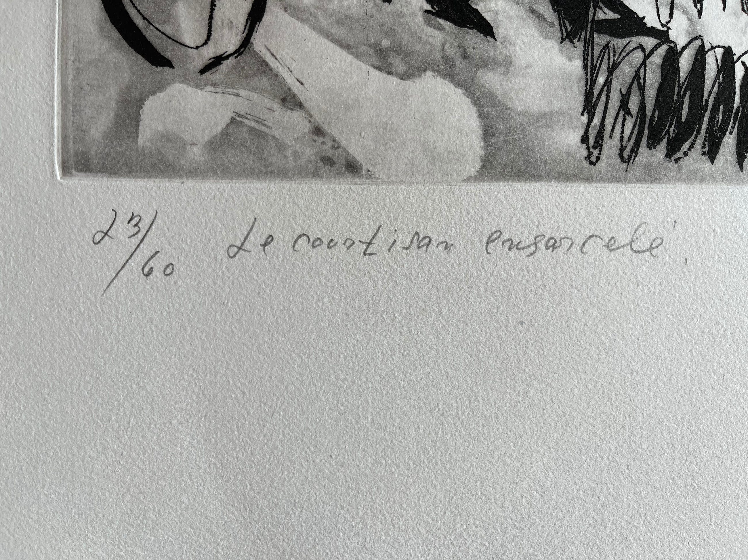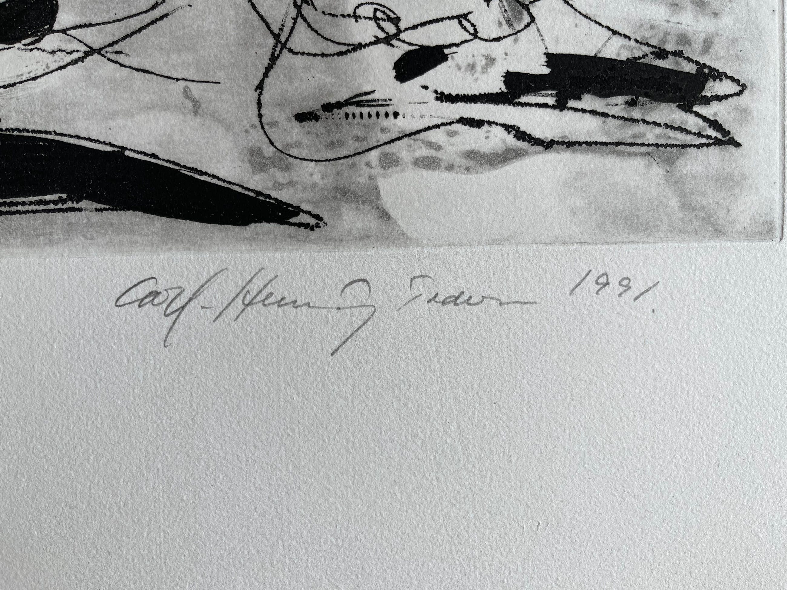 Hierbij verkoop ik deze Ets van Carl Henning Pedersen. De print is handgetekent door de kunstenaar Carl Henning Pedersen in potlood en genummerd 23/60 Titel: Le Courtisan ensorcelé Deze print is in goede staat en niet gekaderd. Afmetingen papier: 86 X 97 cm Afmetingen druk: 45,5 X 69,5 cm