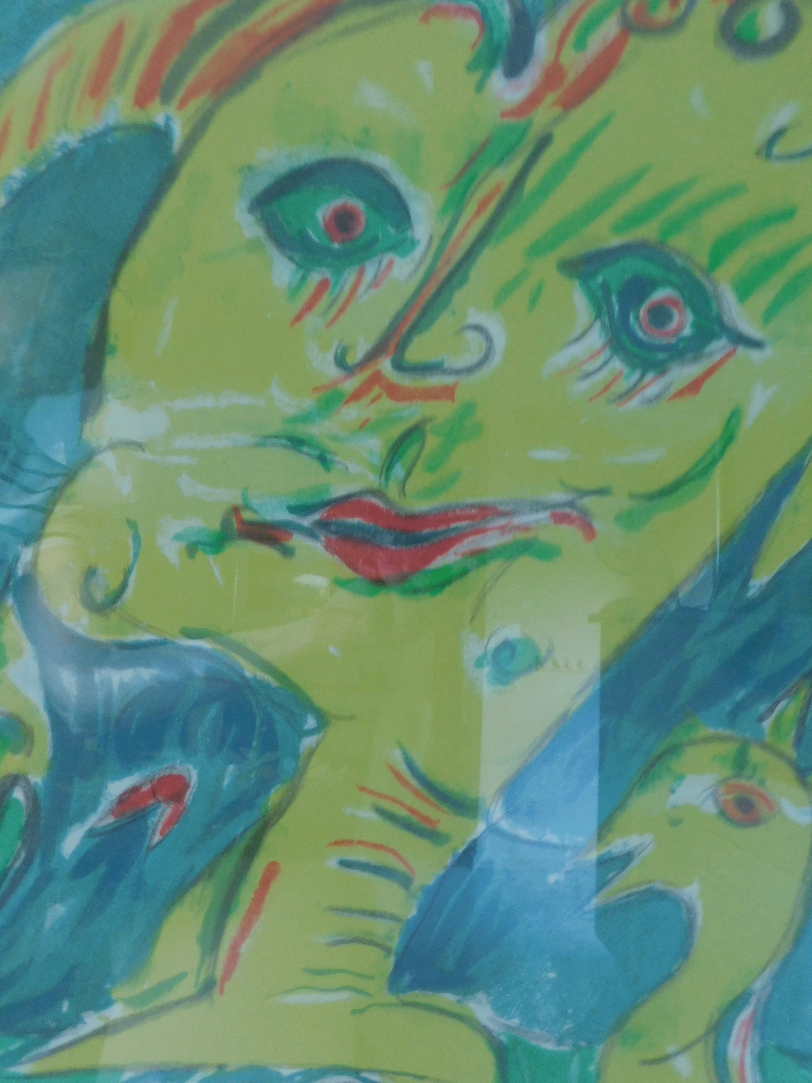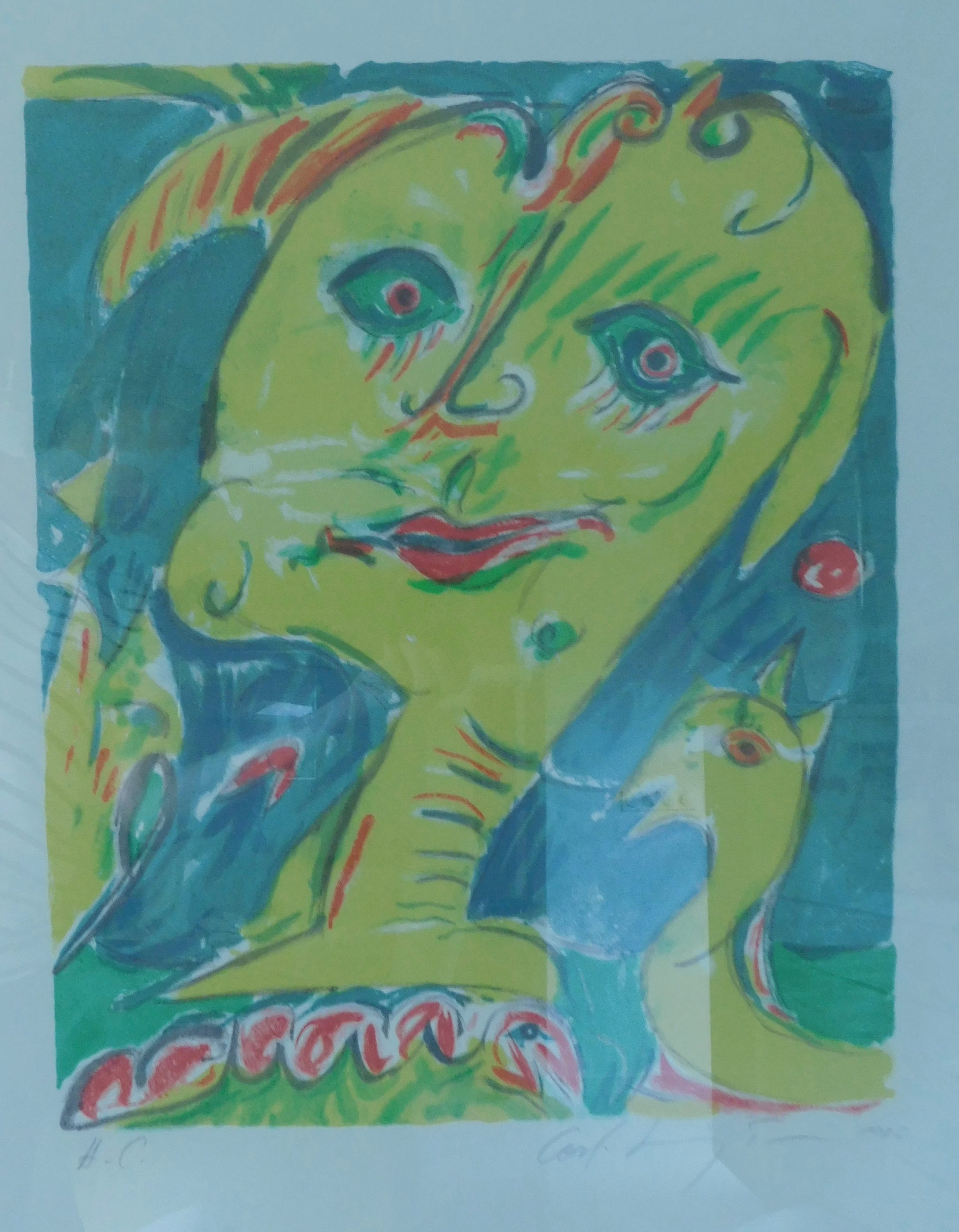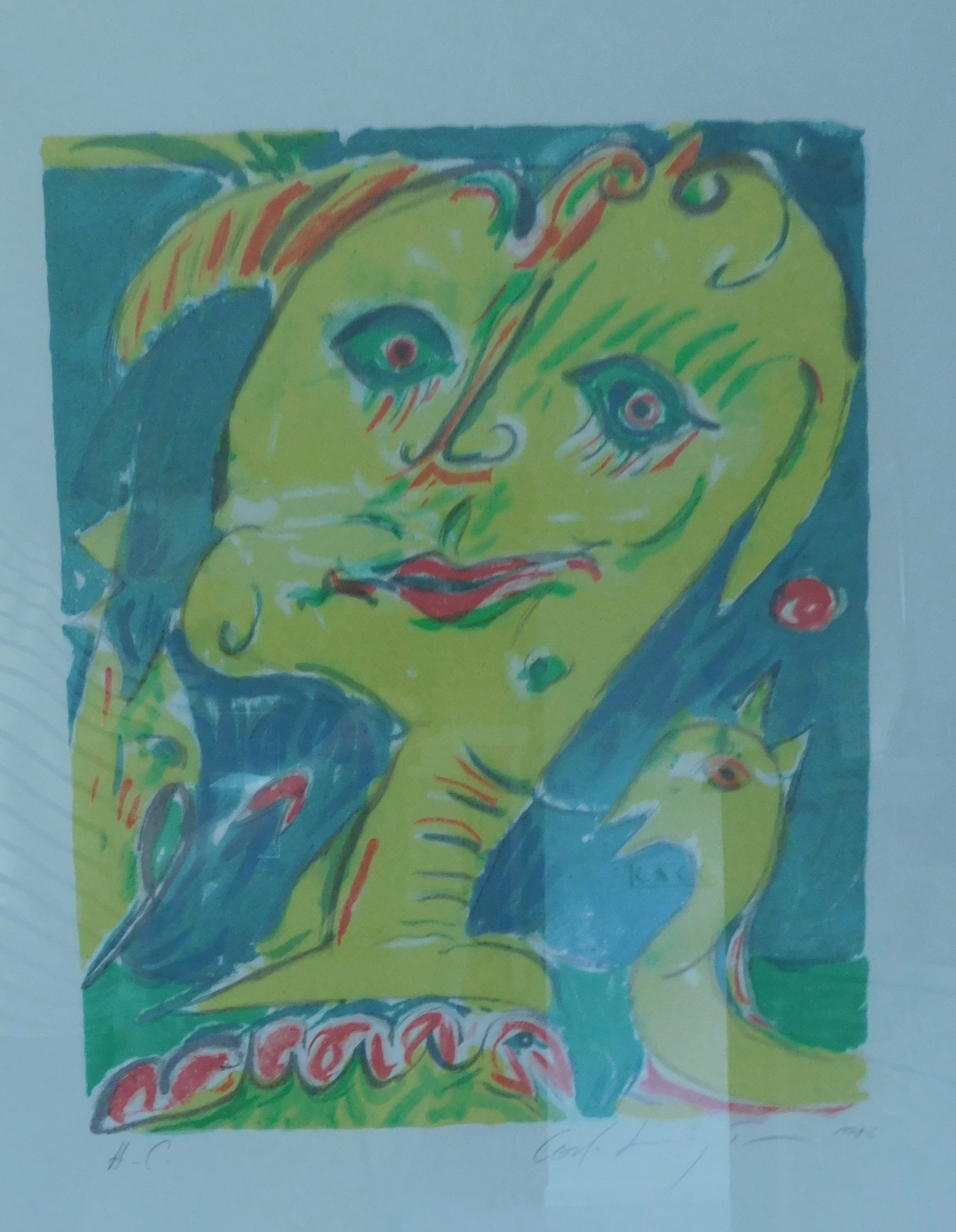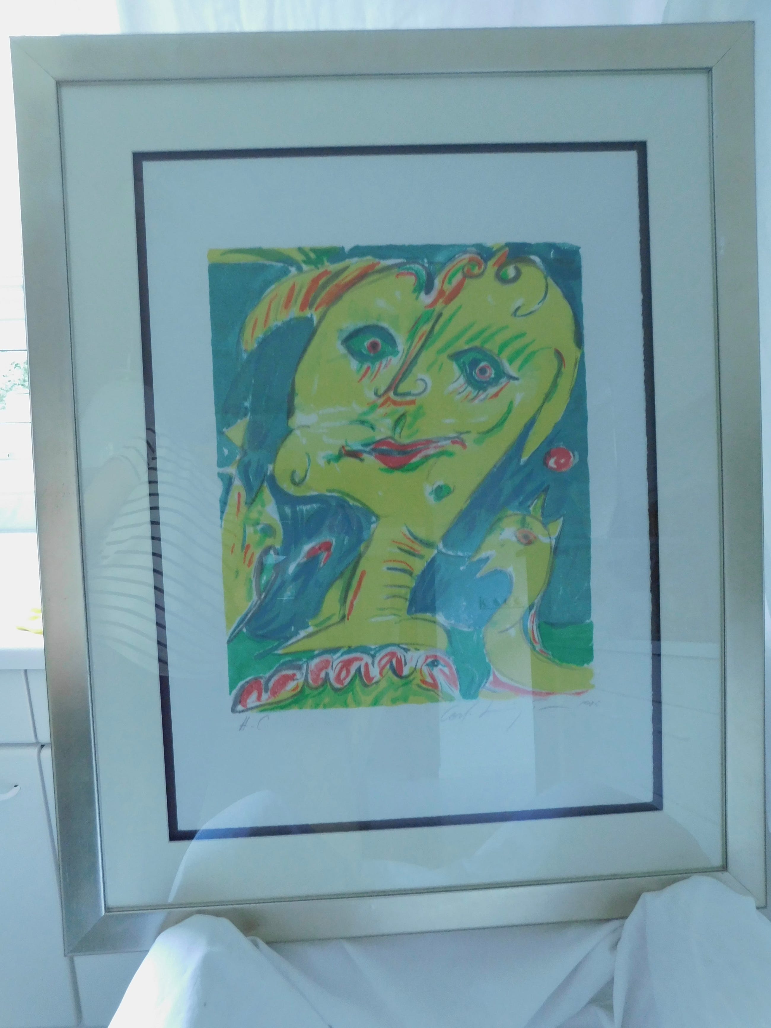 Conditie: zeer goed. Ingelijst in een zilverkleurige lijst. Gewicht: 8 Kg.