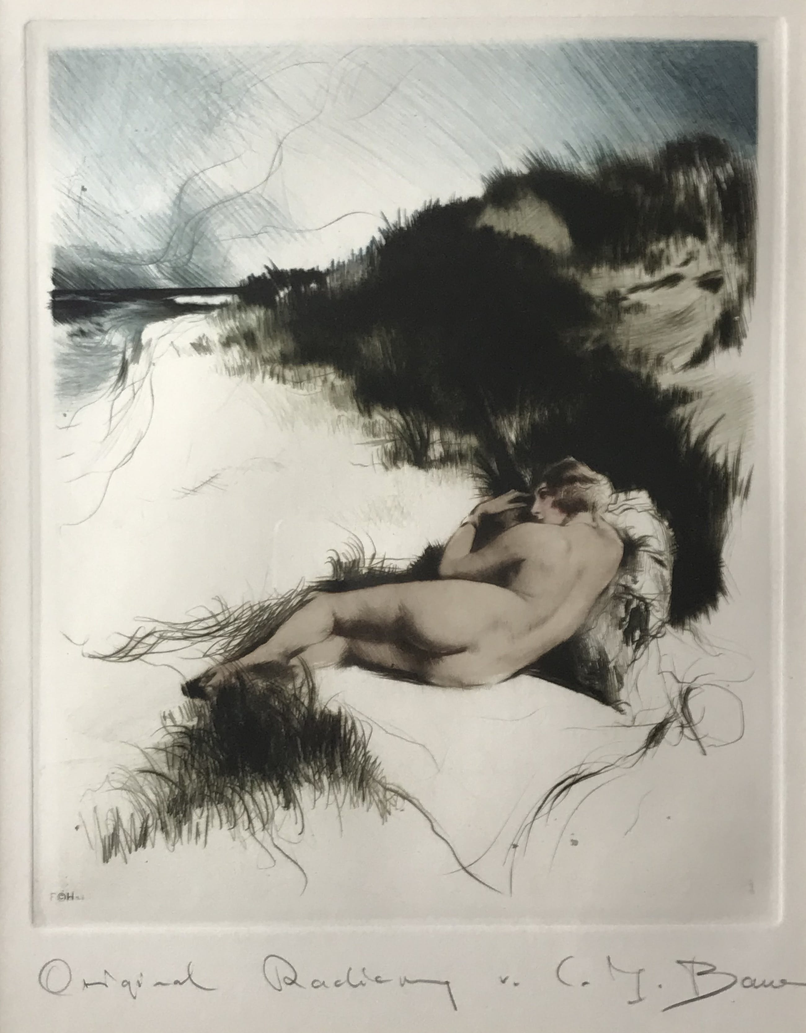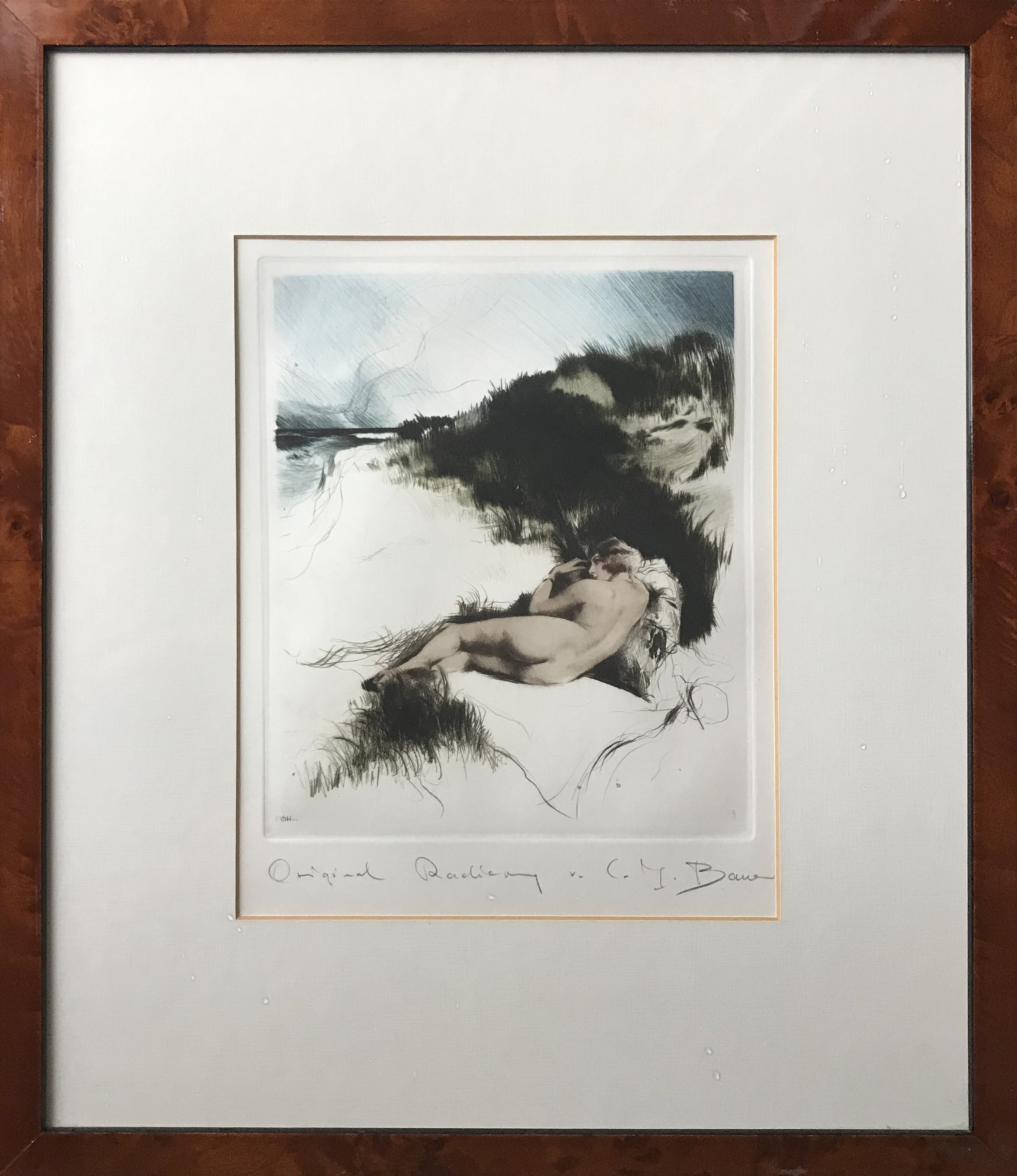 Ingelijste ets van de Duitse kunstenaar Carl Josef Bauer (1897–1989) die vooral bekend staat om zijn Art Deco etsen.