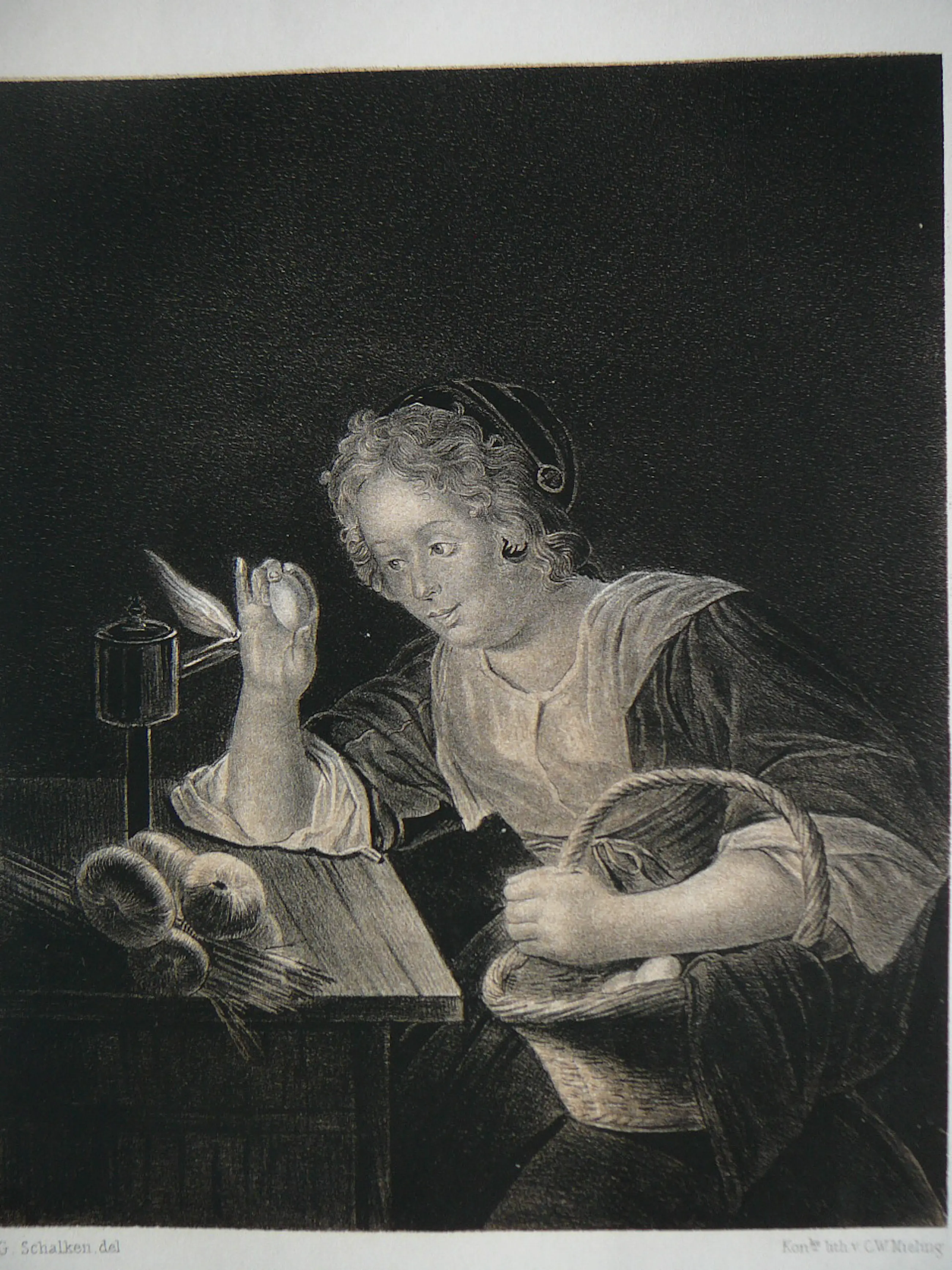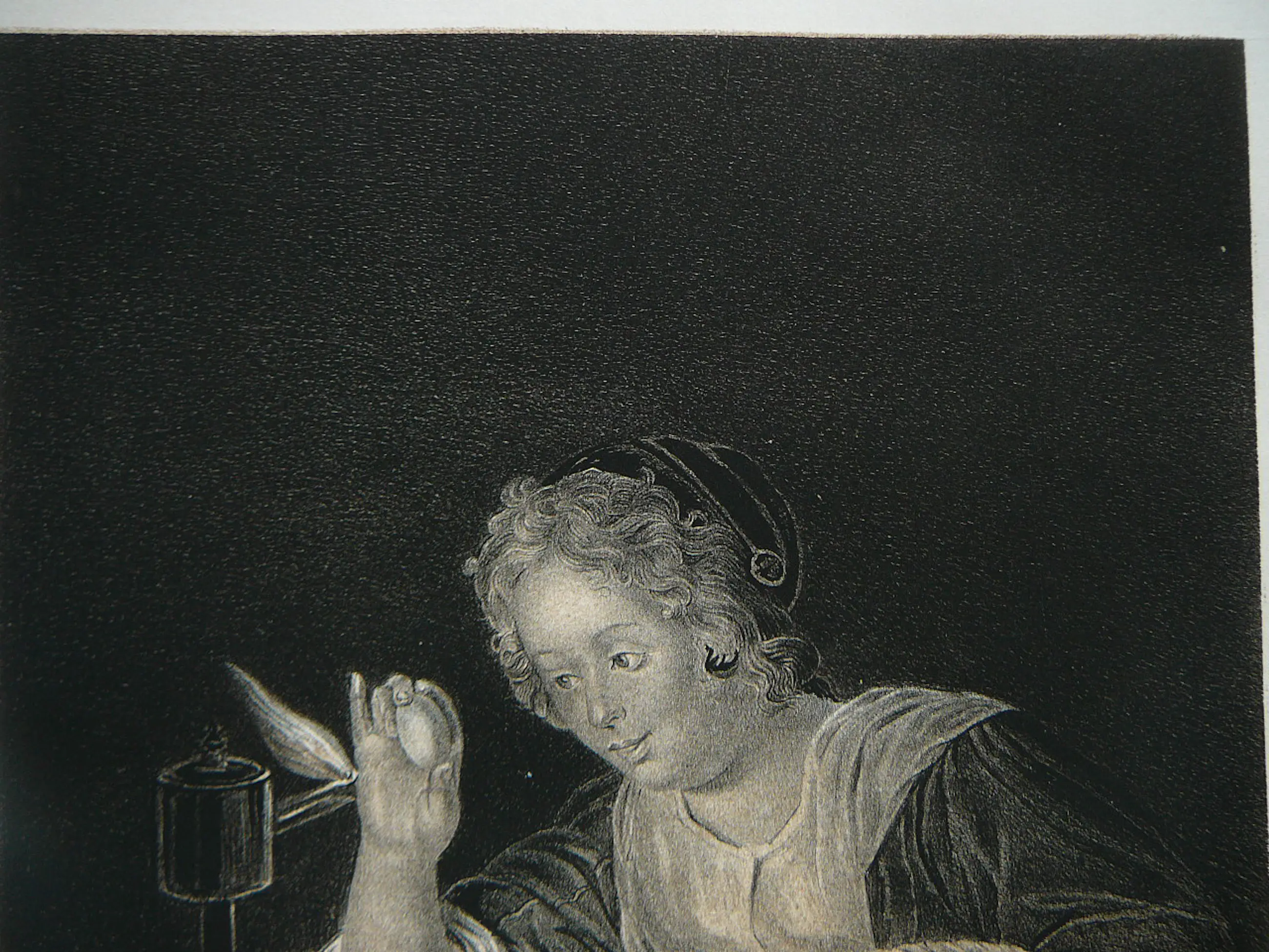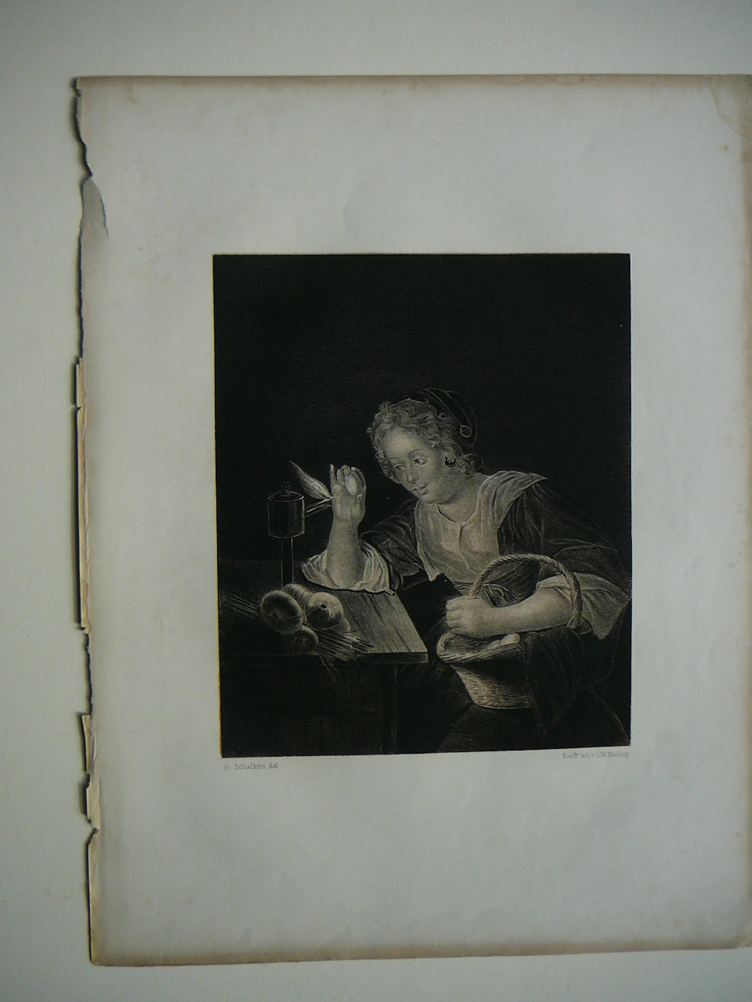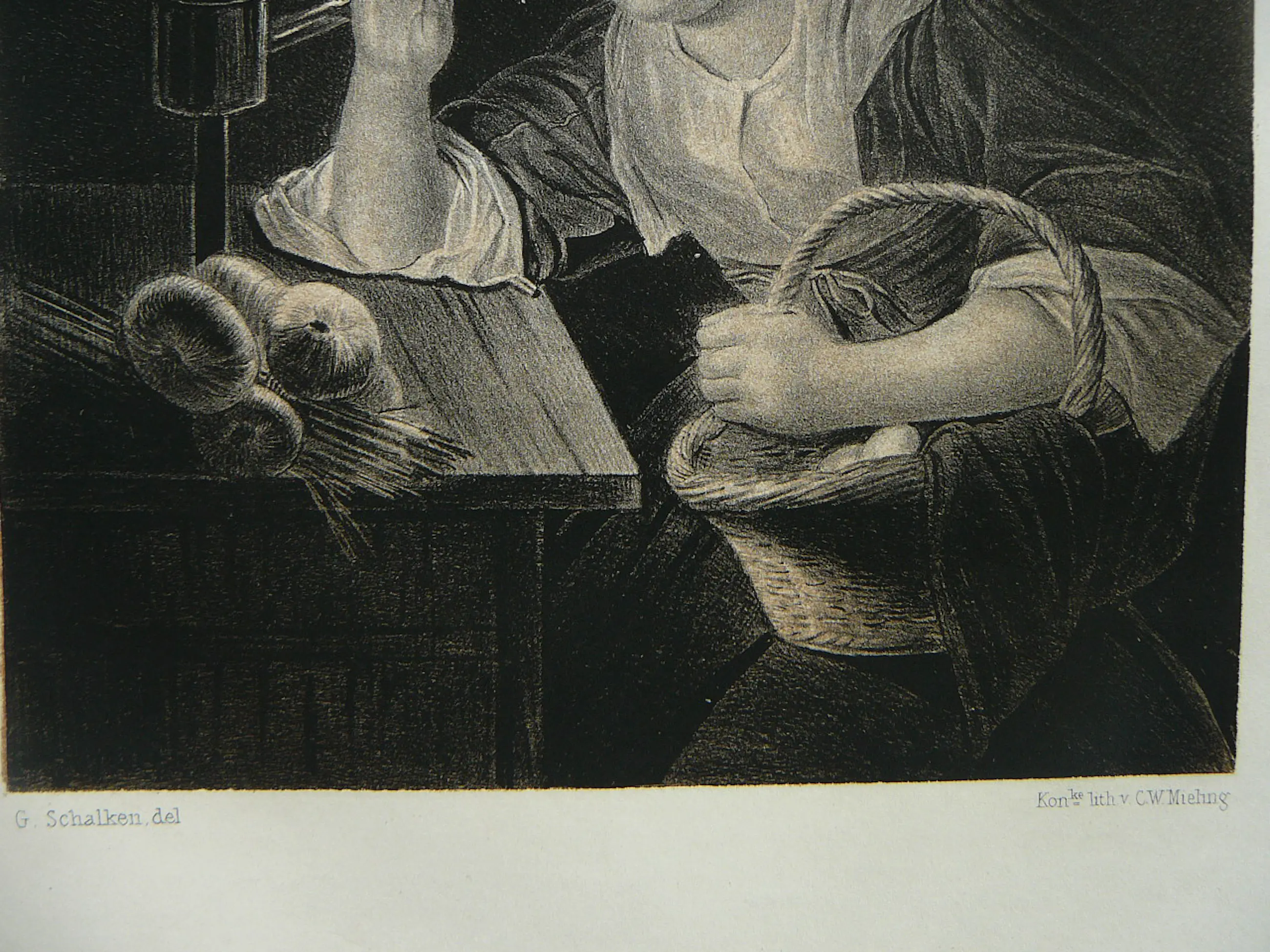Mooie Litho naar een schilderij van E Verveer door G Schalken en gedrukt door C.W.Mieling Afm Papier 26 x 34 cm