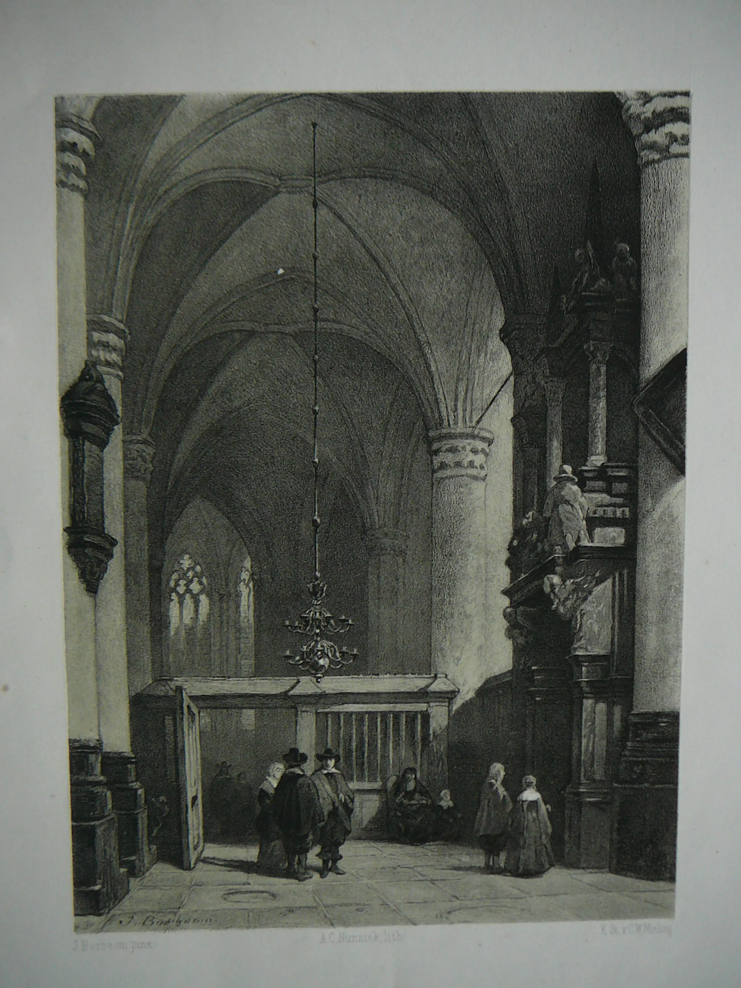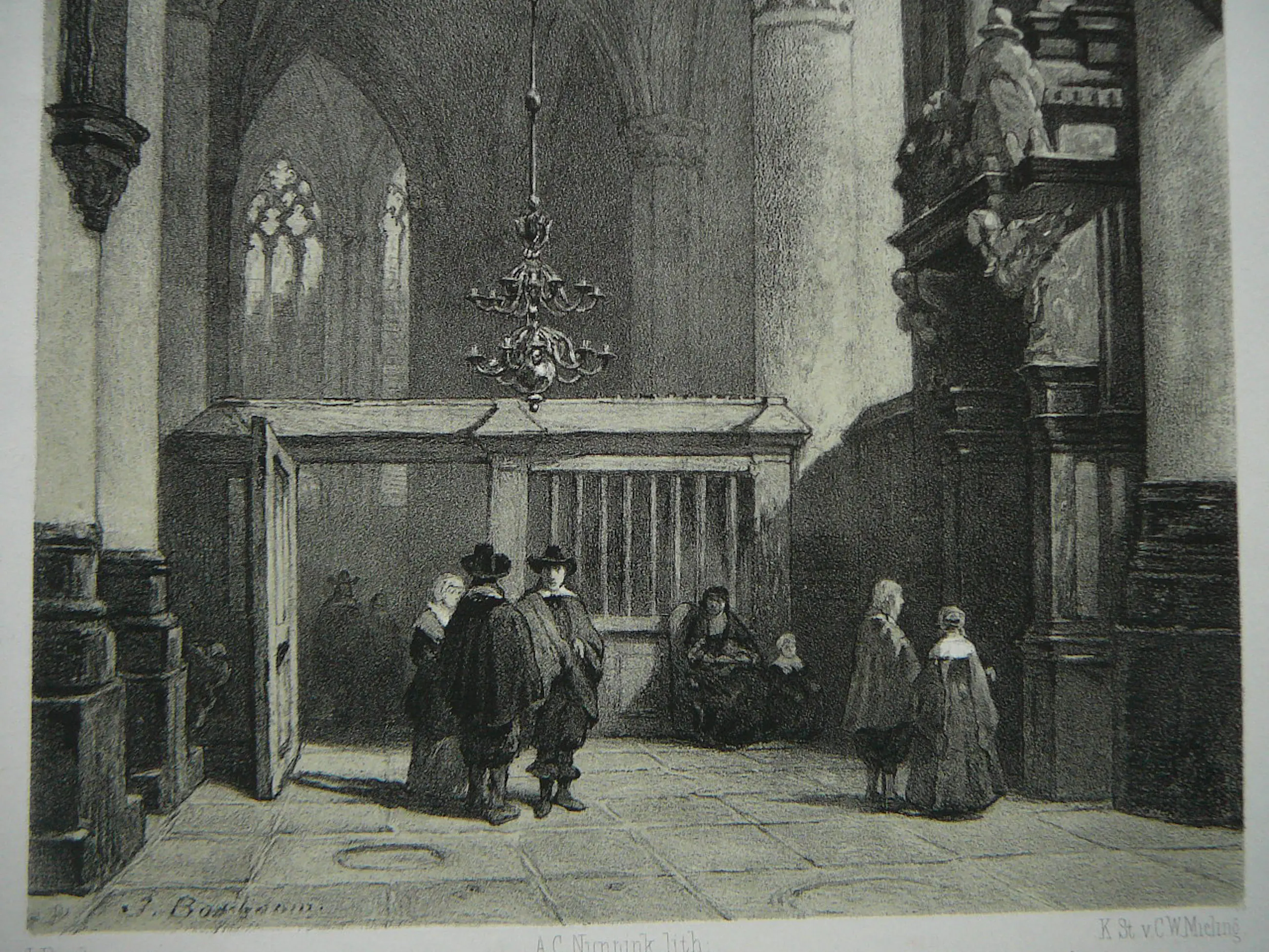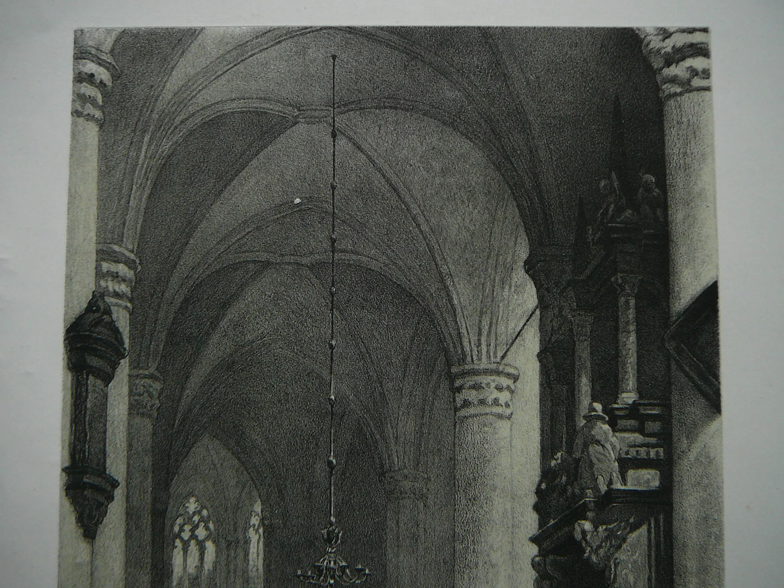 Mooie litho naar een schilderij van J Bosboom door Carl Wilhelm Mieling afm papier 26 x 34 cm