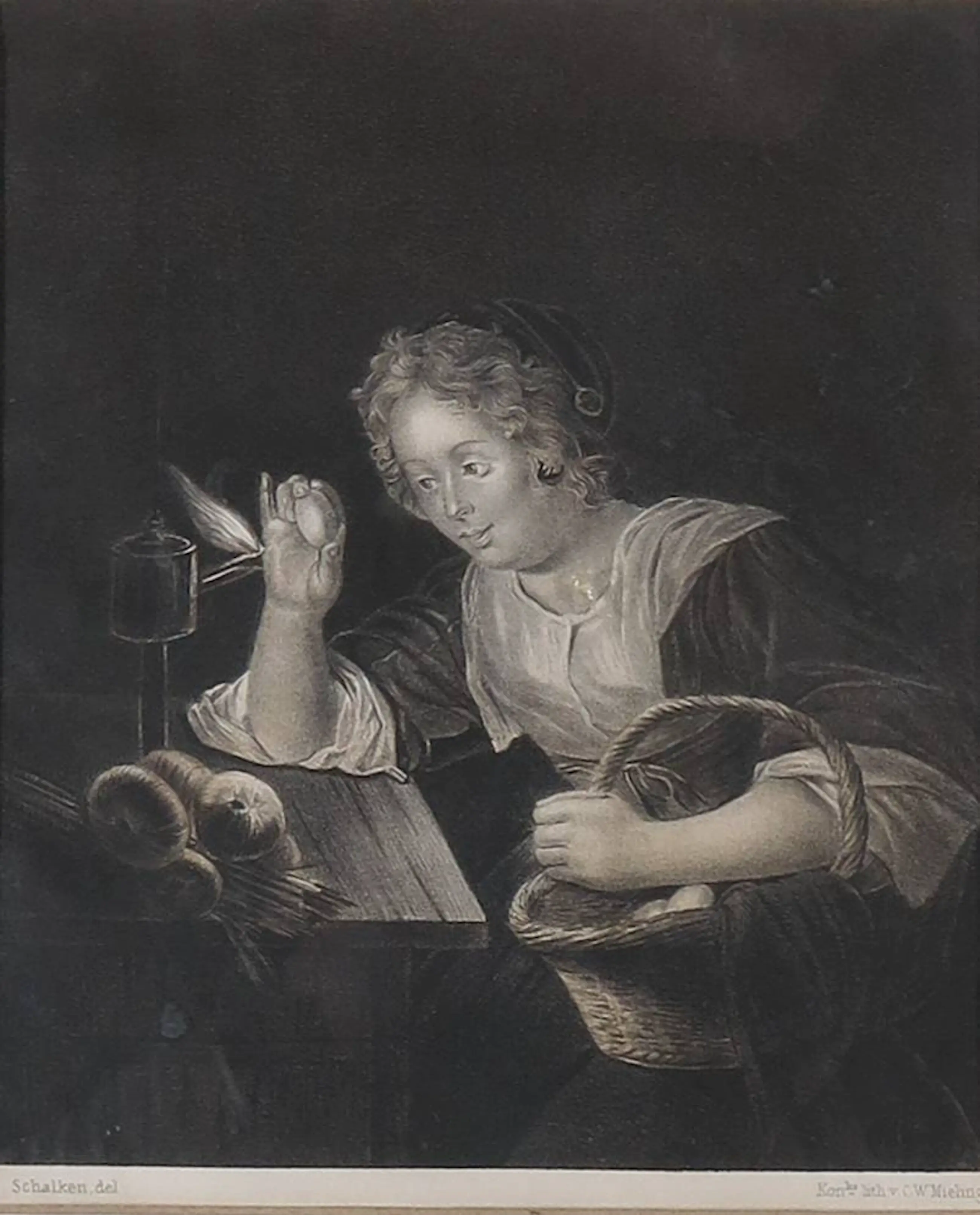 Litho naar een schilderij van E Verveer door G Schalken en gedrukt door C.W.Mieling