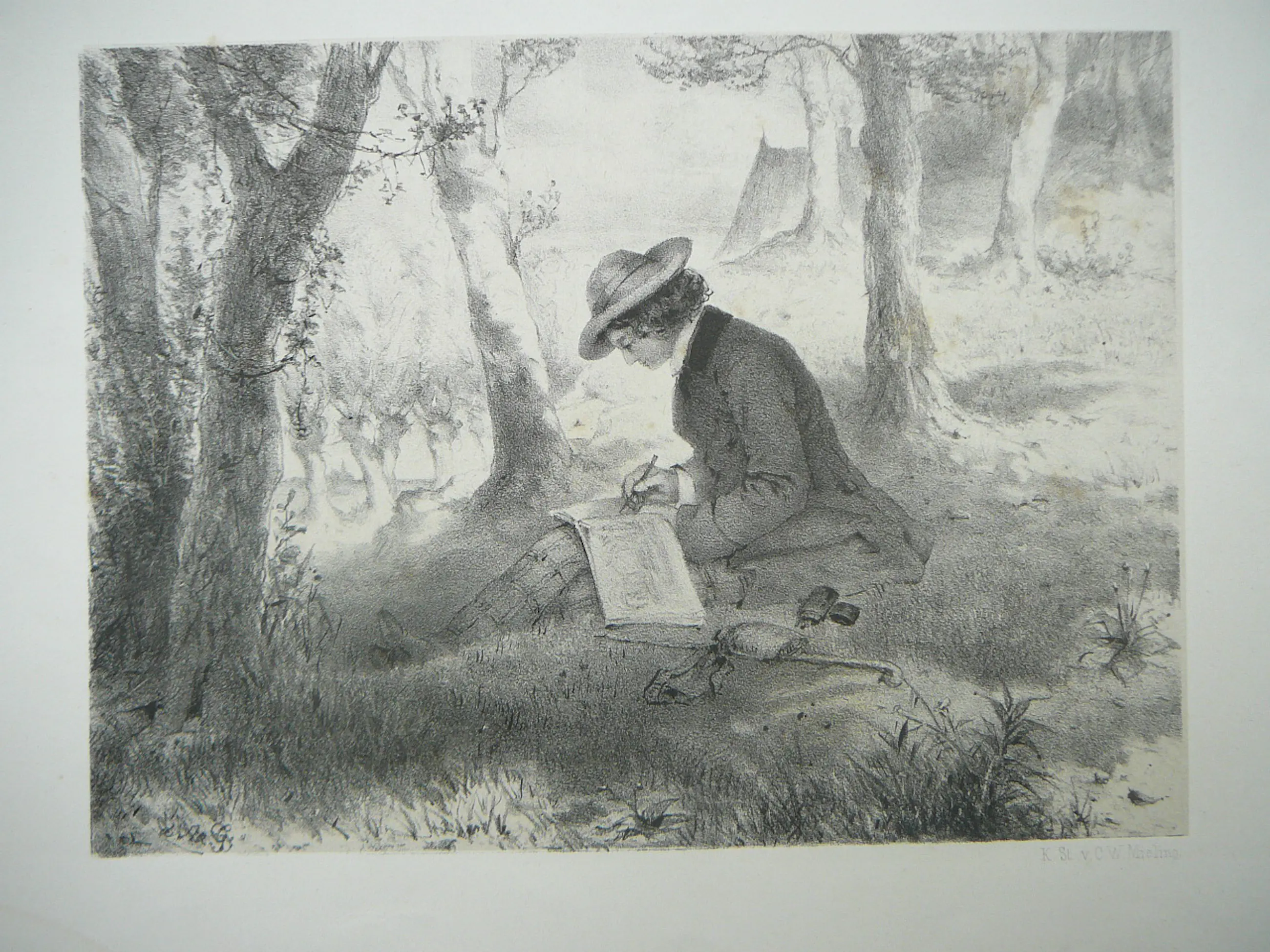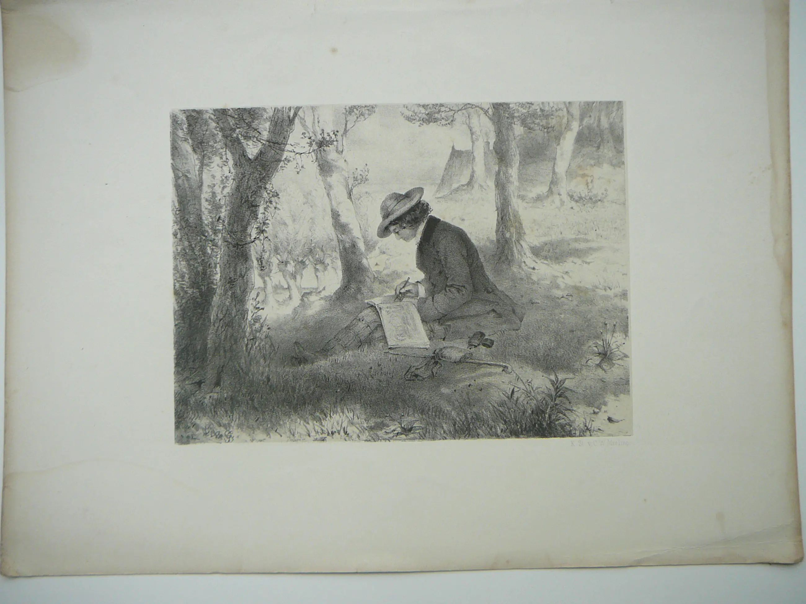 Mooie litho van J.C.d"Armand Gerkens en gedrukt door C.W.Mieling afm papier 26 x 35 cm J.C. d"Arnaud Gerkens 1823-1892