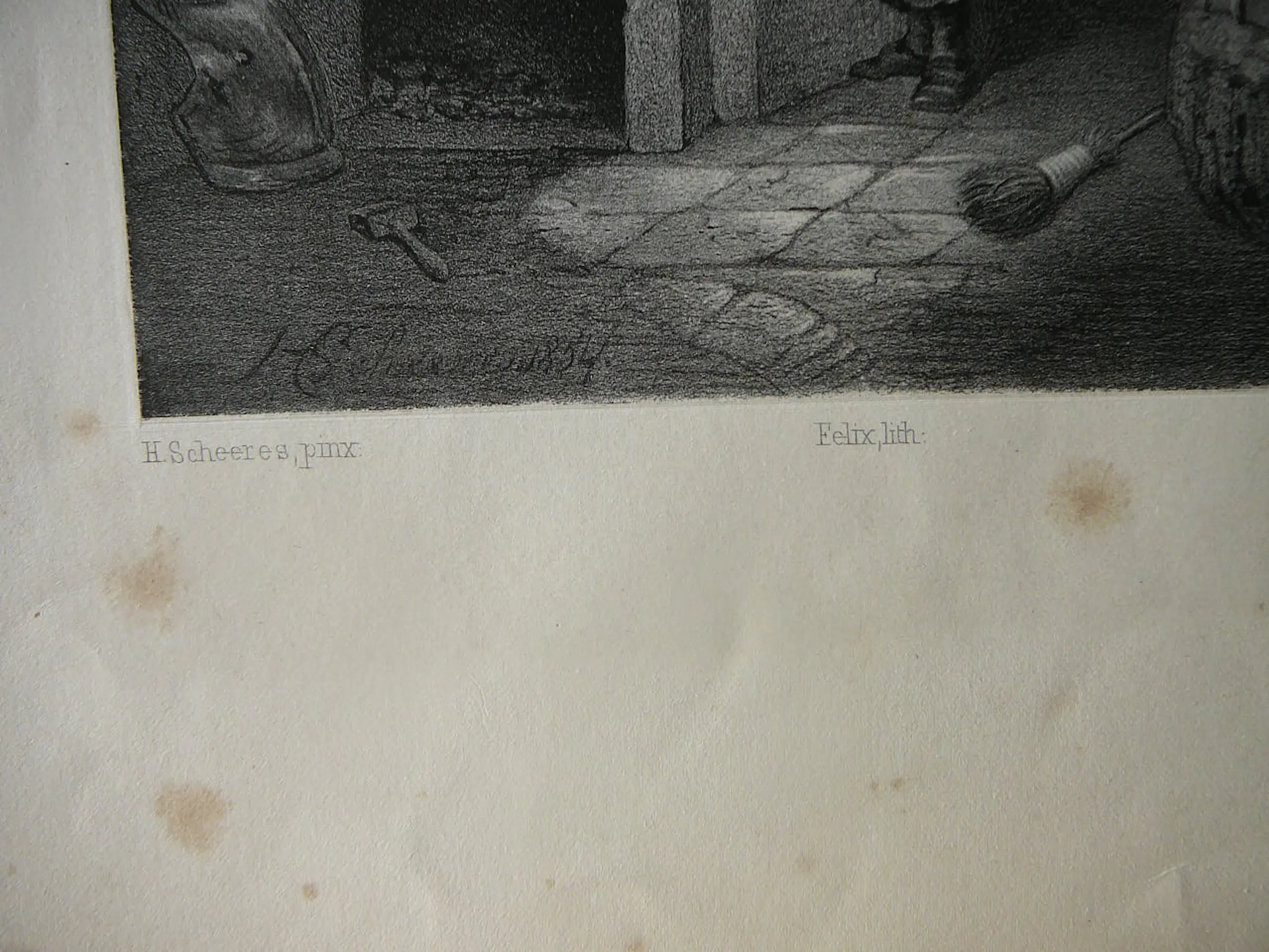 Mooie litho door Felix naar een schilderij van H Scheeres gedrukt door C.W.Mieling