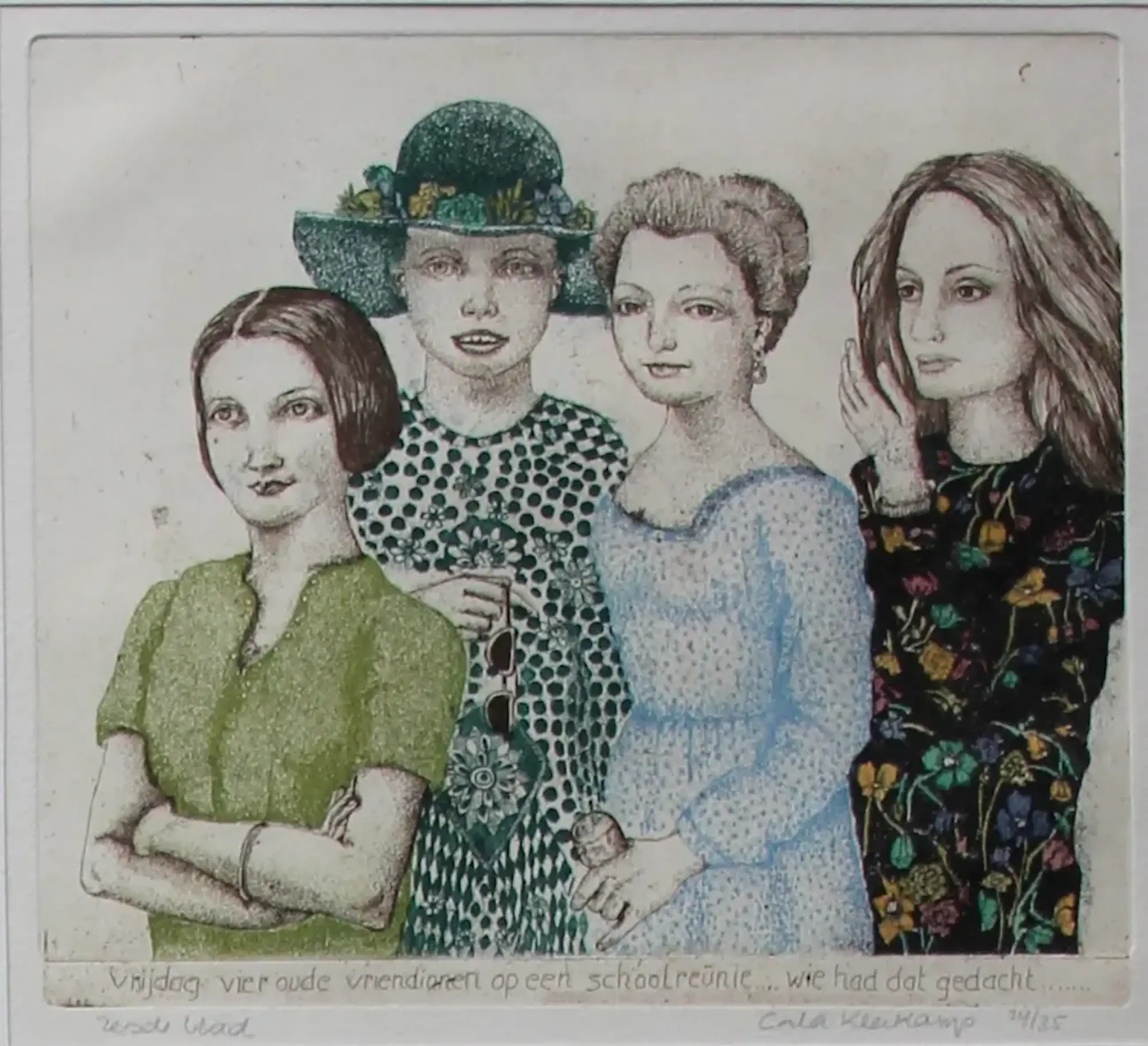8 ingelijste etsen van Carla Kleekamp. Titel: Een week in 8 etsen. Oplage: 24/35. Afmetingen incl. lijst: H37 x b30cm. Afmetingen per voorstelling: H18 x b14cm. De werken zijn, links onderaan, allemaal gesigneerd door de kunstenaar. De authenticiteit van de aangeboden werken, wordt volledig gegarandeerd. Een certificaat van echtheid kan, op aanvraag, worden gemaild.