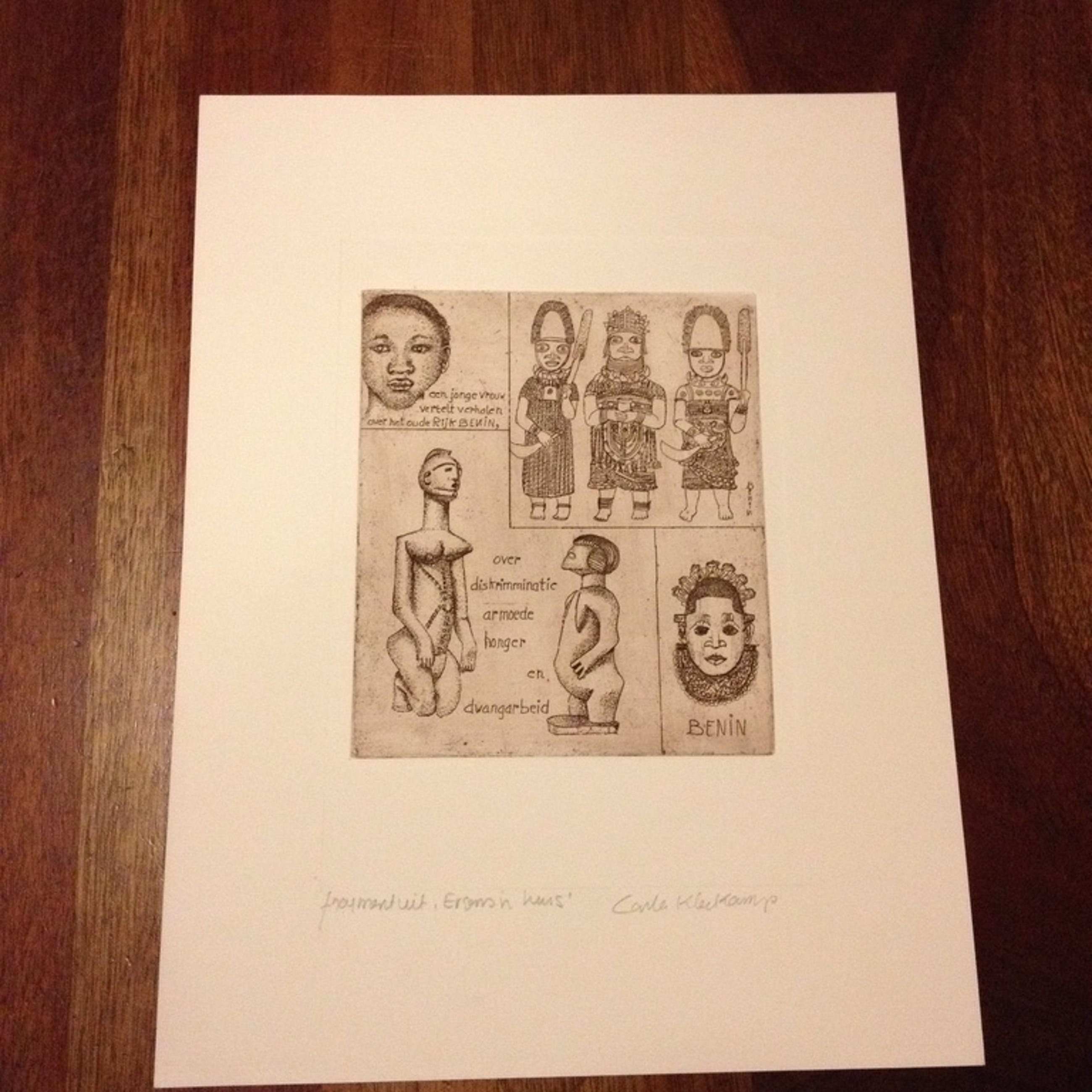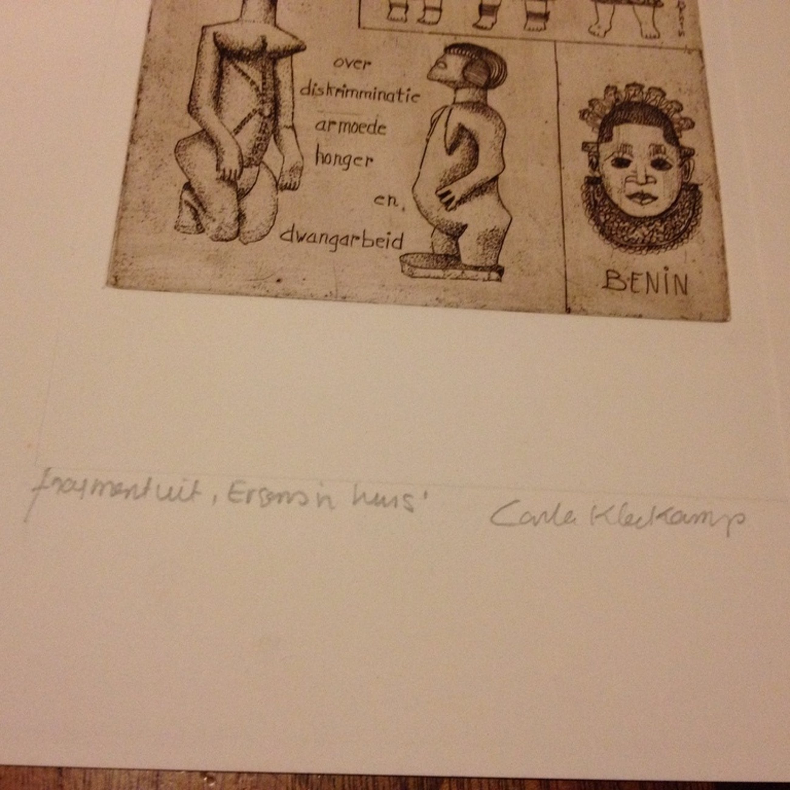 Gesigneerd in potlood, onder beeld: fragment uit “Ergens in huis” Carla Kleekamp