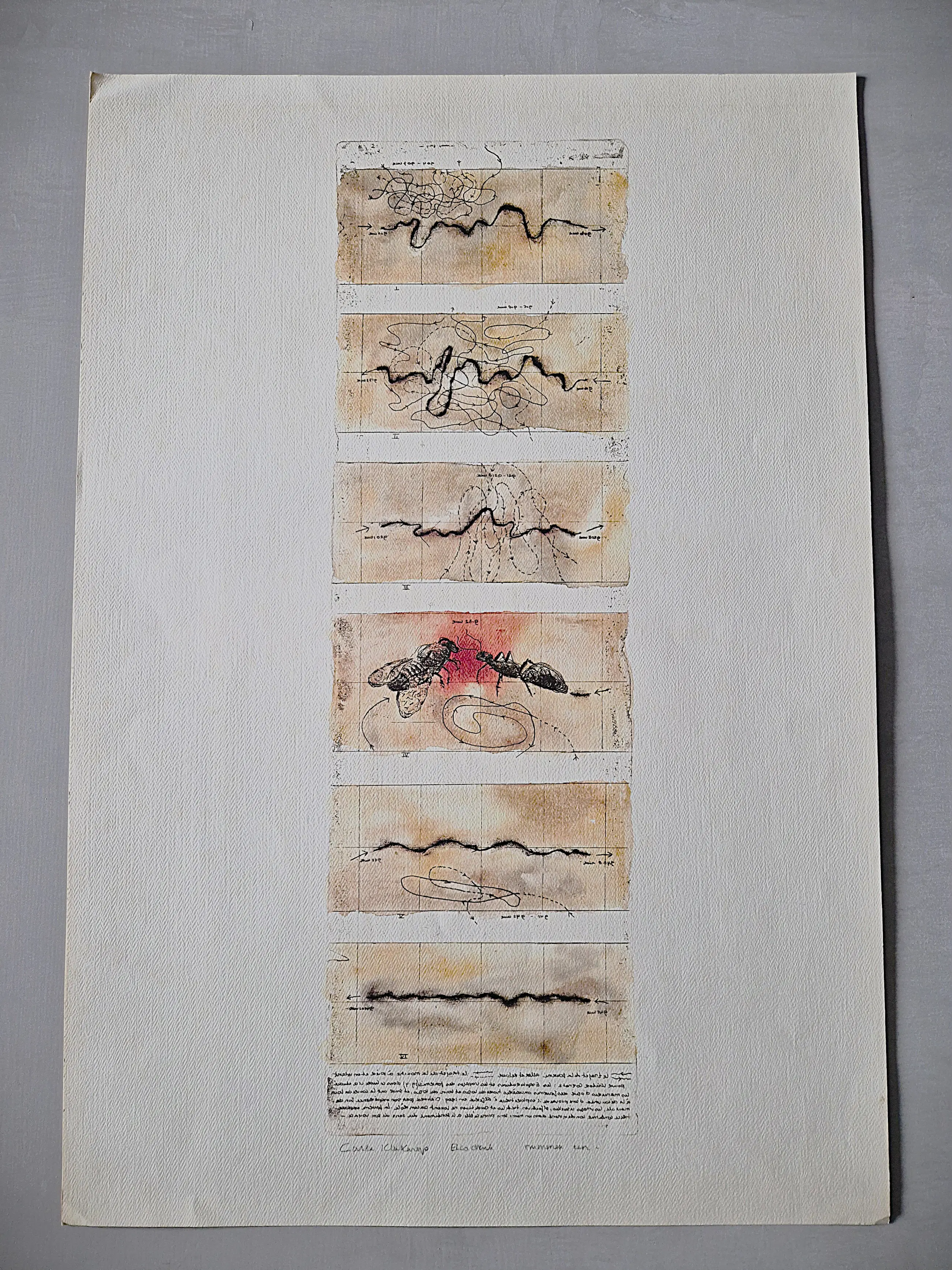 Zowel in grafiek als bij het tekenen blijft de lijn het belangrijkste middel. Ik werk met gemengde technieken: aquarel, Japanse penseel, collage, waarbij echter in de meeste gevallen de ets het fundament vormt. De lessen van een Chinese leermeester en een studiereis naar Japan zijn heel belangrijk geweest.