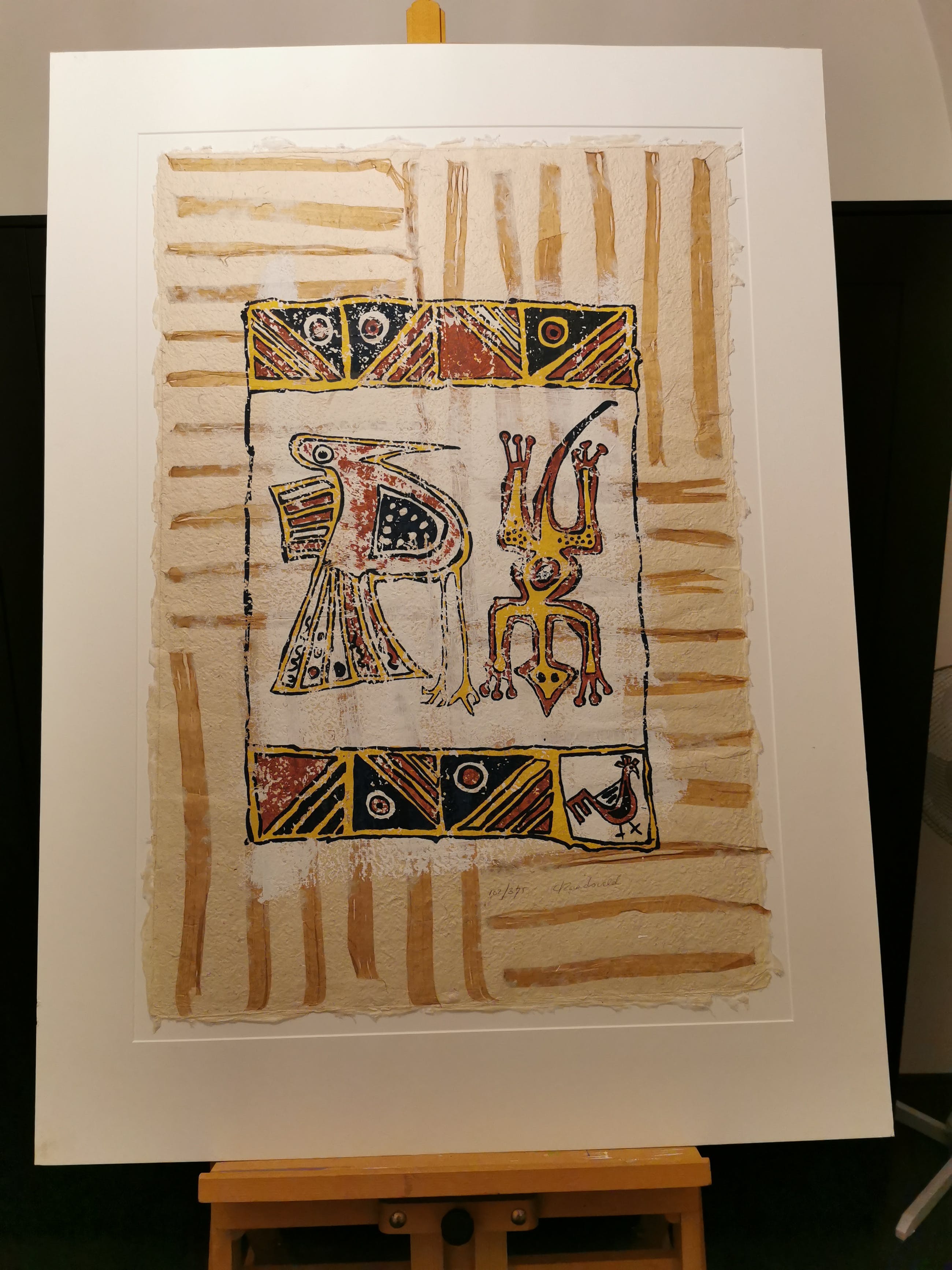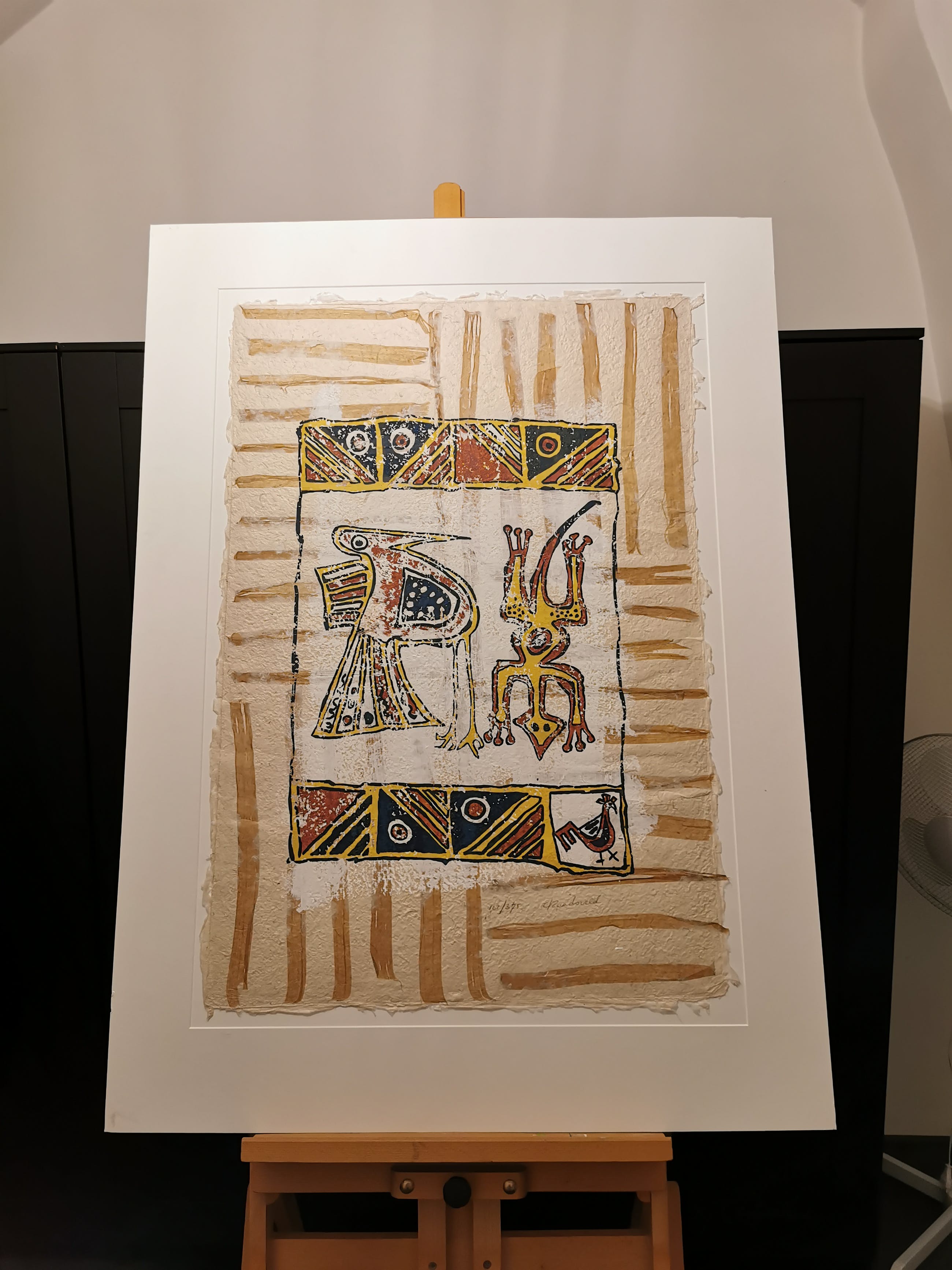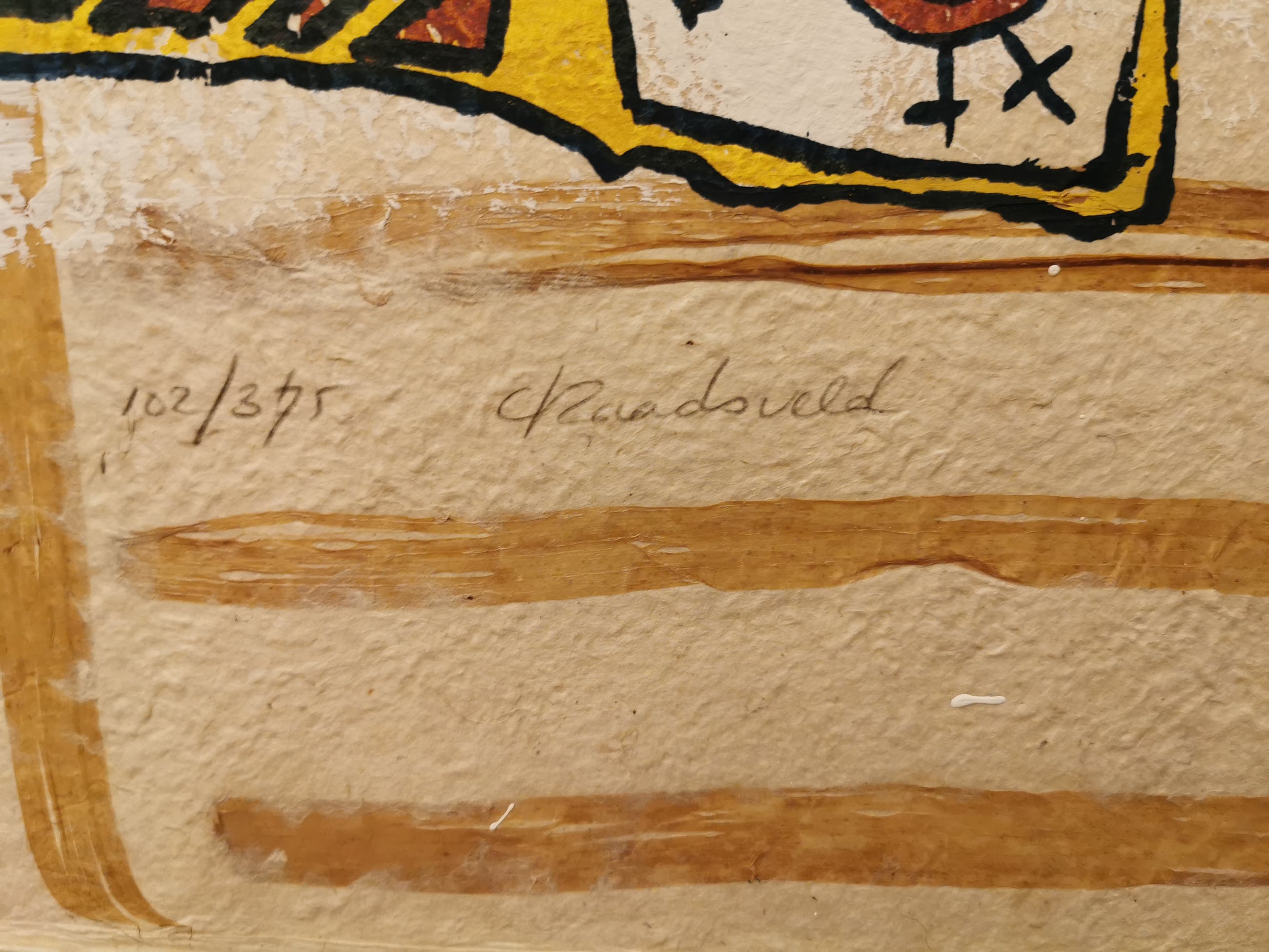 Mooie grote zeefdruk van Carla Raadsveld, afrikaanse stijl. Werk bevindt zich in zeer goede tot nieuwe staat met passe partout. Foto's spreken voor zich.