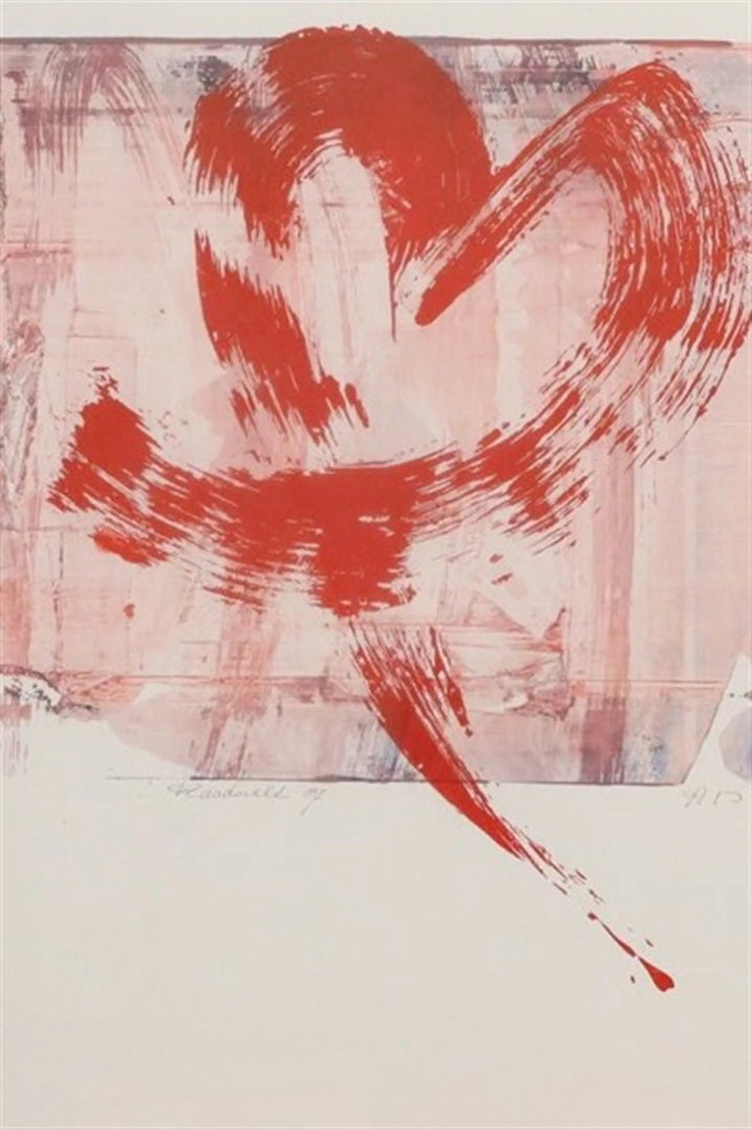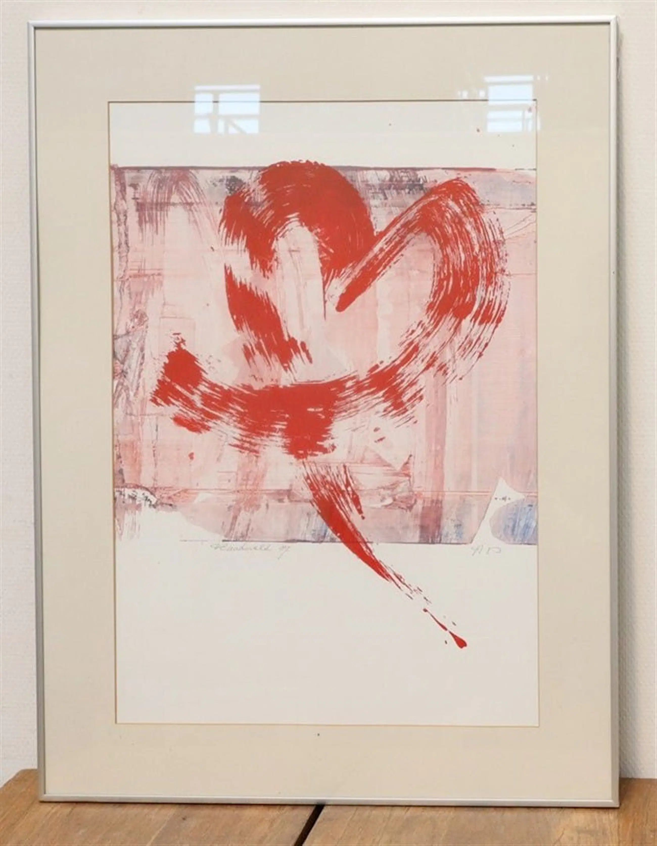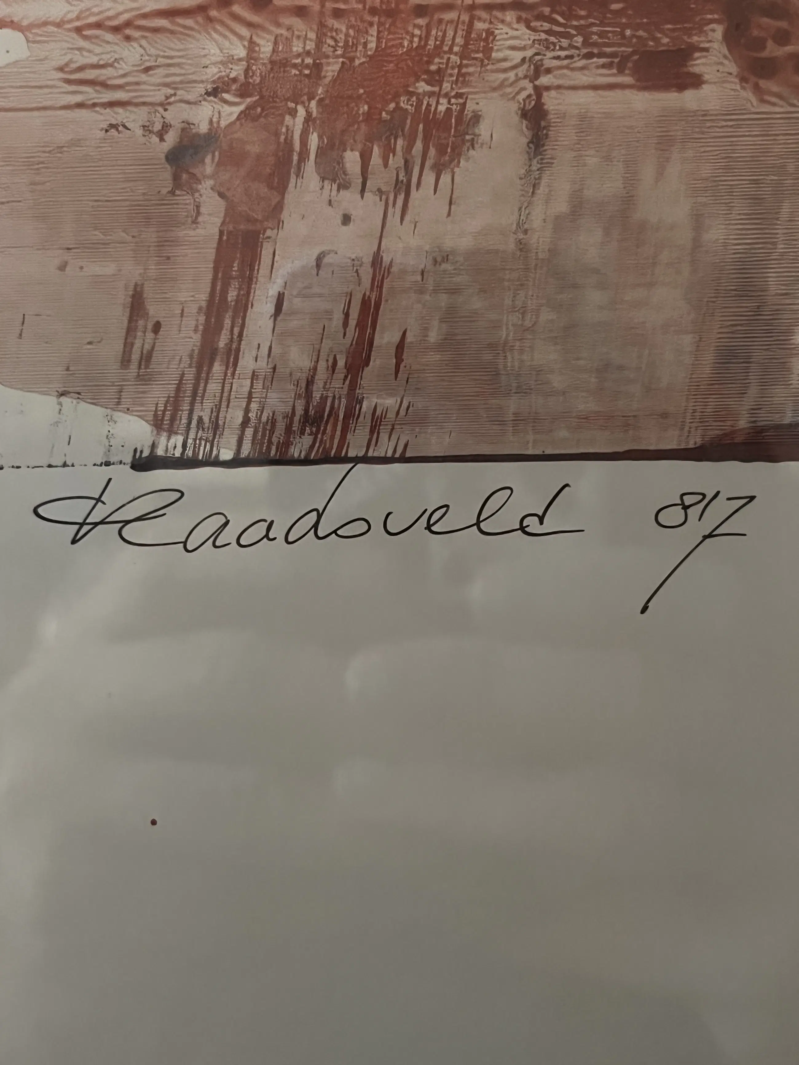 Een expressieve en kleurrijke zeefdruk van de Nederlandse kunstenares Carla Raadsveld, getiteld Happy. En dat in de uitzonderlijke Artist Proof editie. Het werk toont een krachtige compositie van dansende lijnen en vlakken in rood en roze tinten, waarin energie en levenslust centraal staan. Typisch voor Raadsveld: een spel van beweging en kleur dat direct de aandacht grijpt en positief stemt.