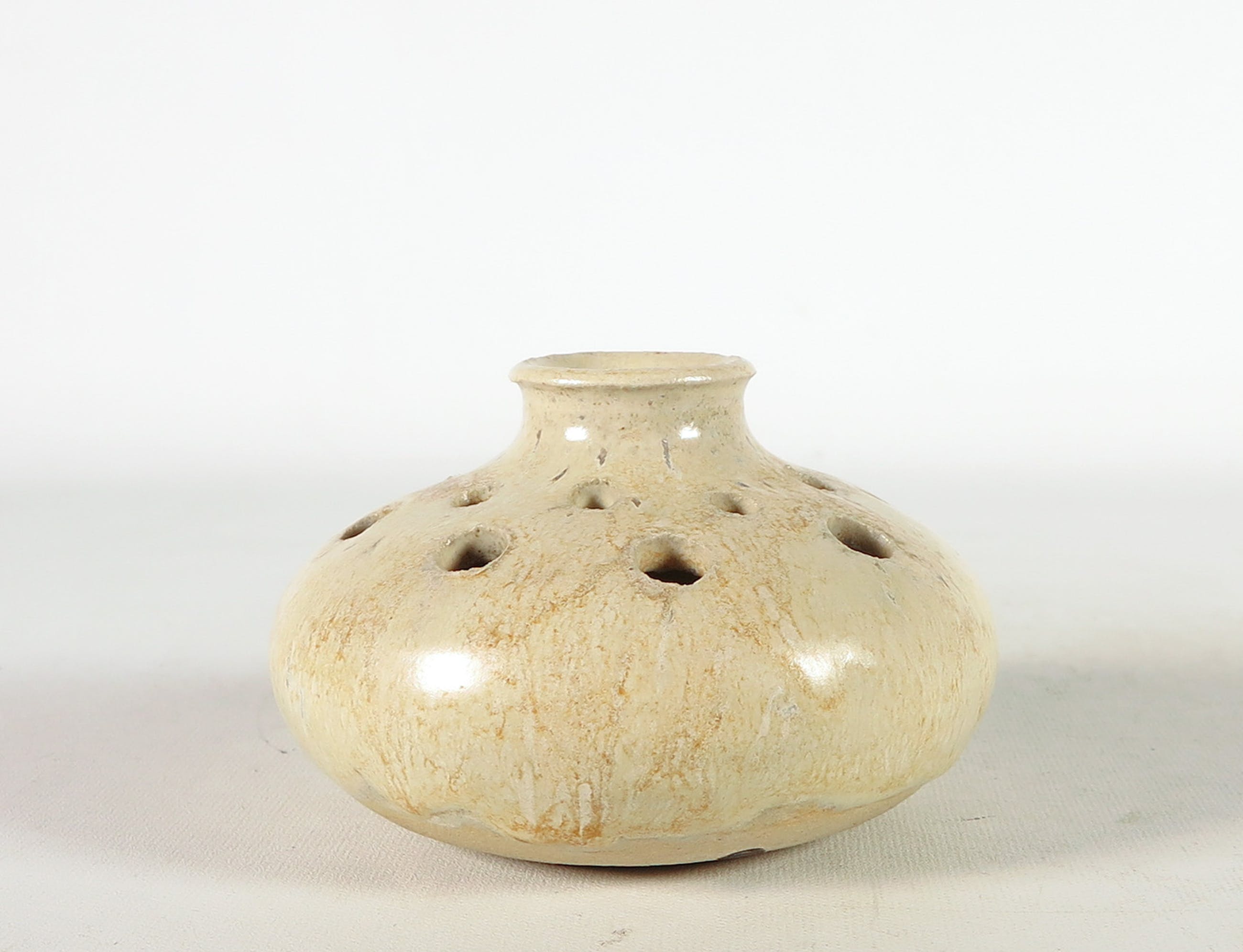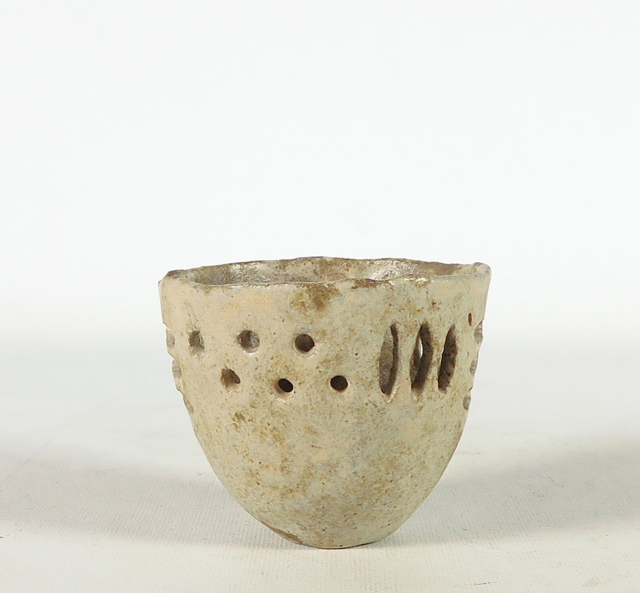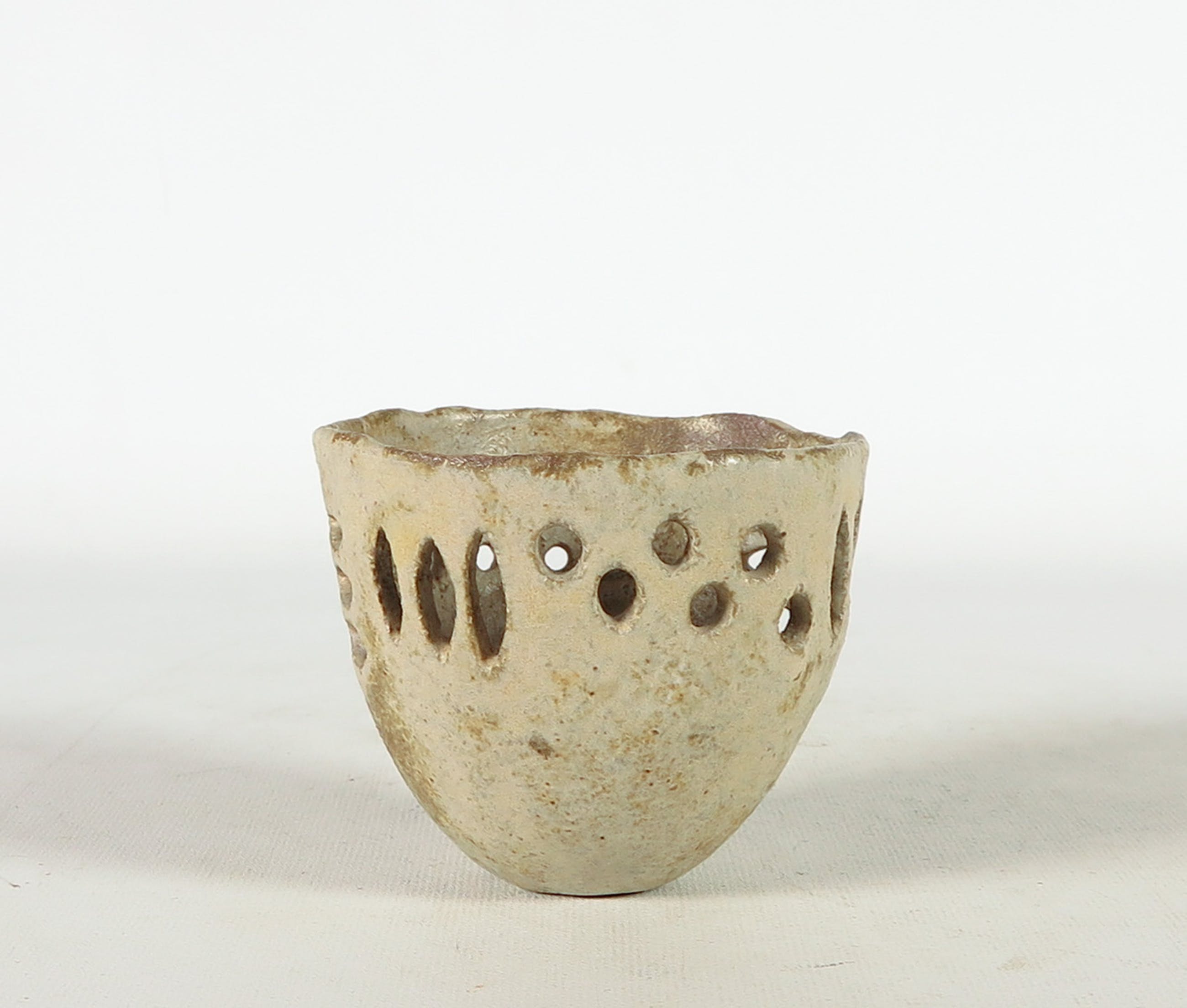 Lot bestaande uit vier opengewerkte objecten. De hierboven genoemde afmetingen geldt voor een van de opengewerkte vaasjes met smalle hals.