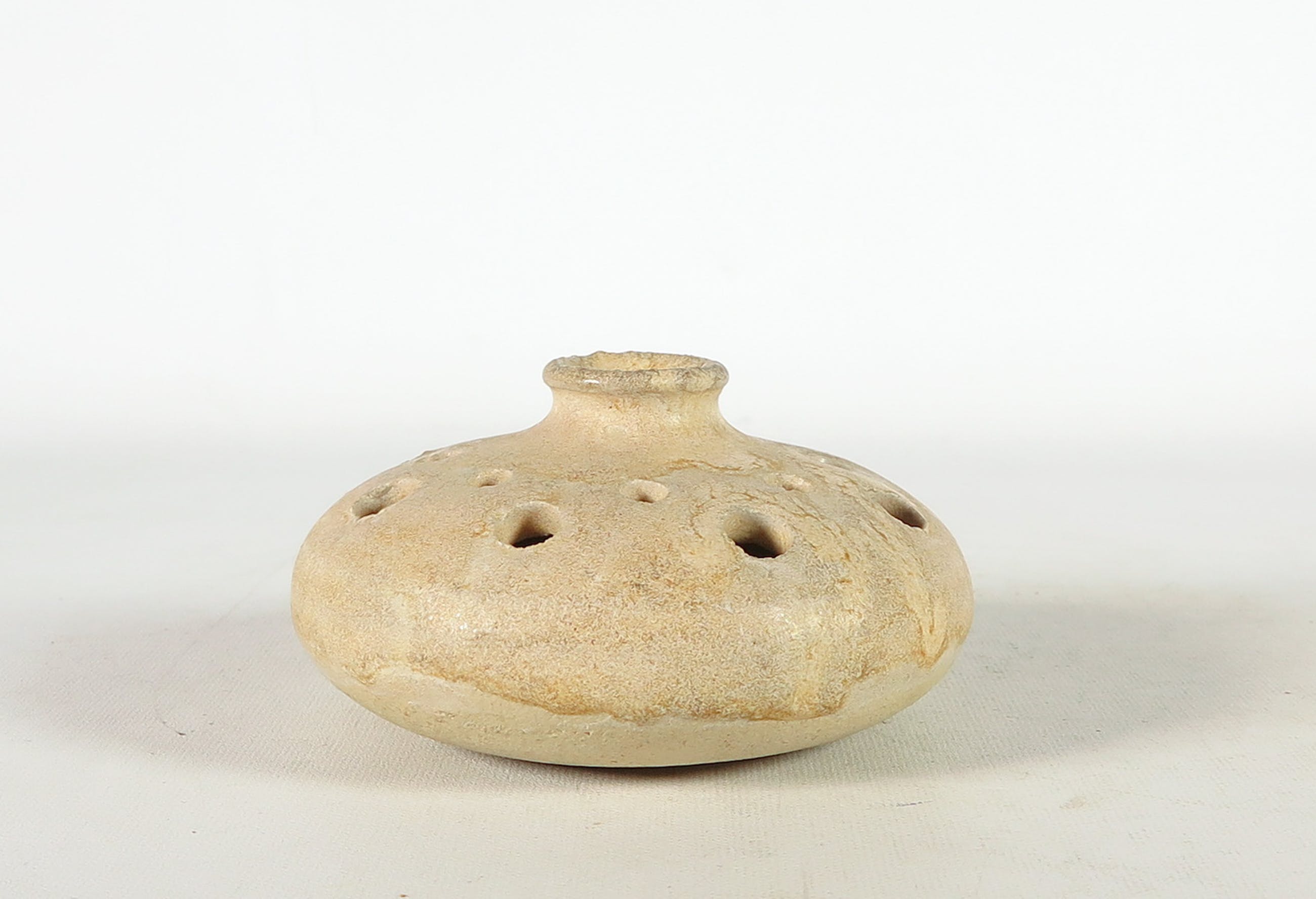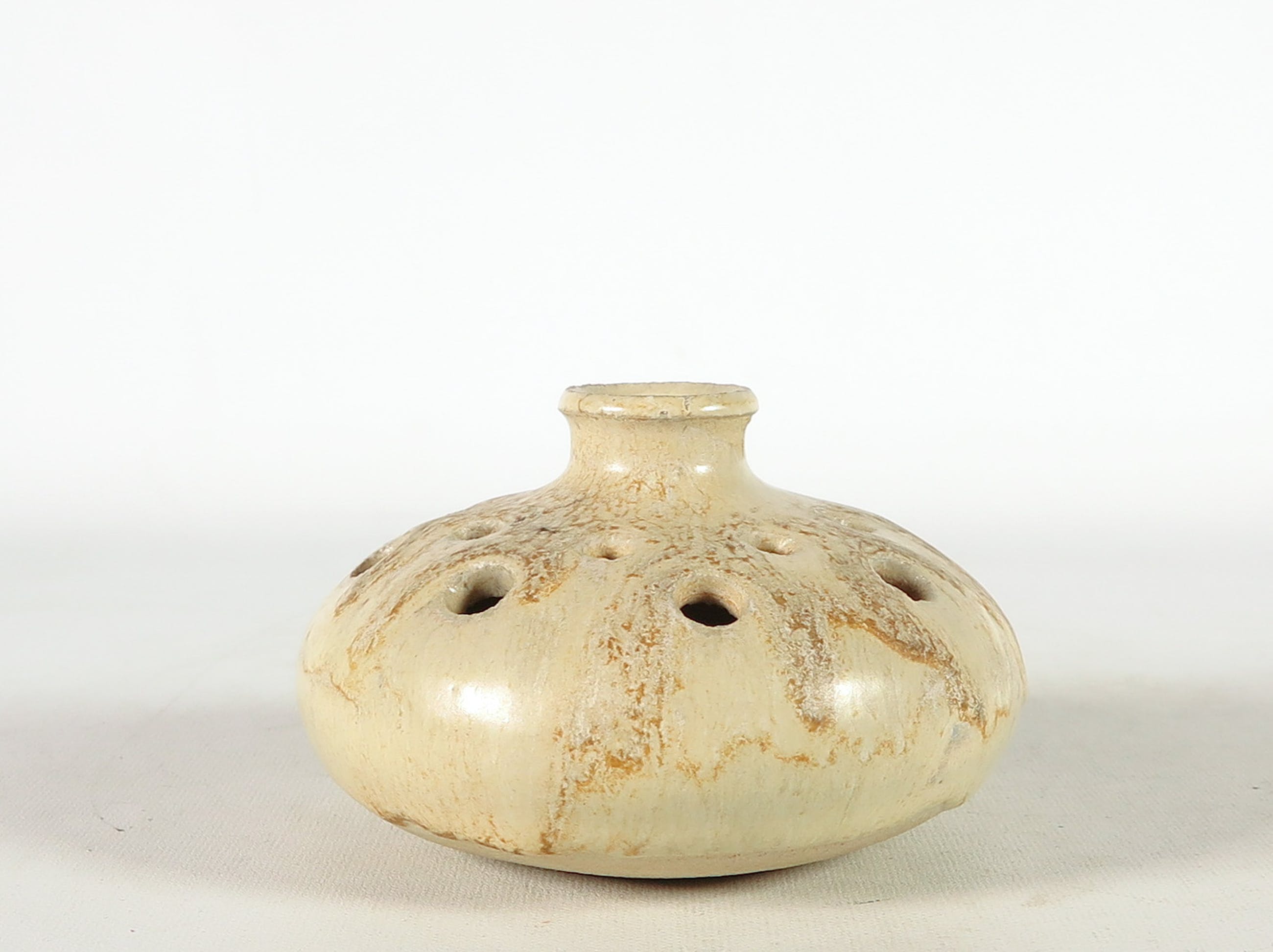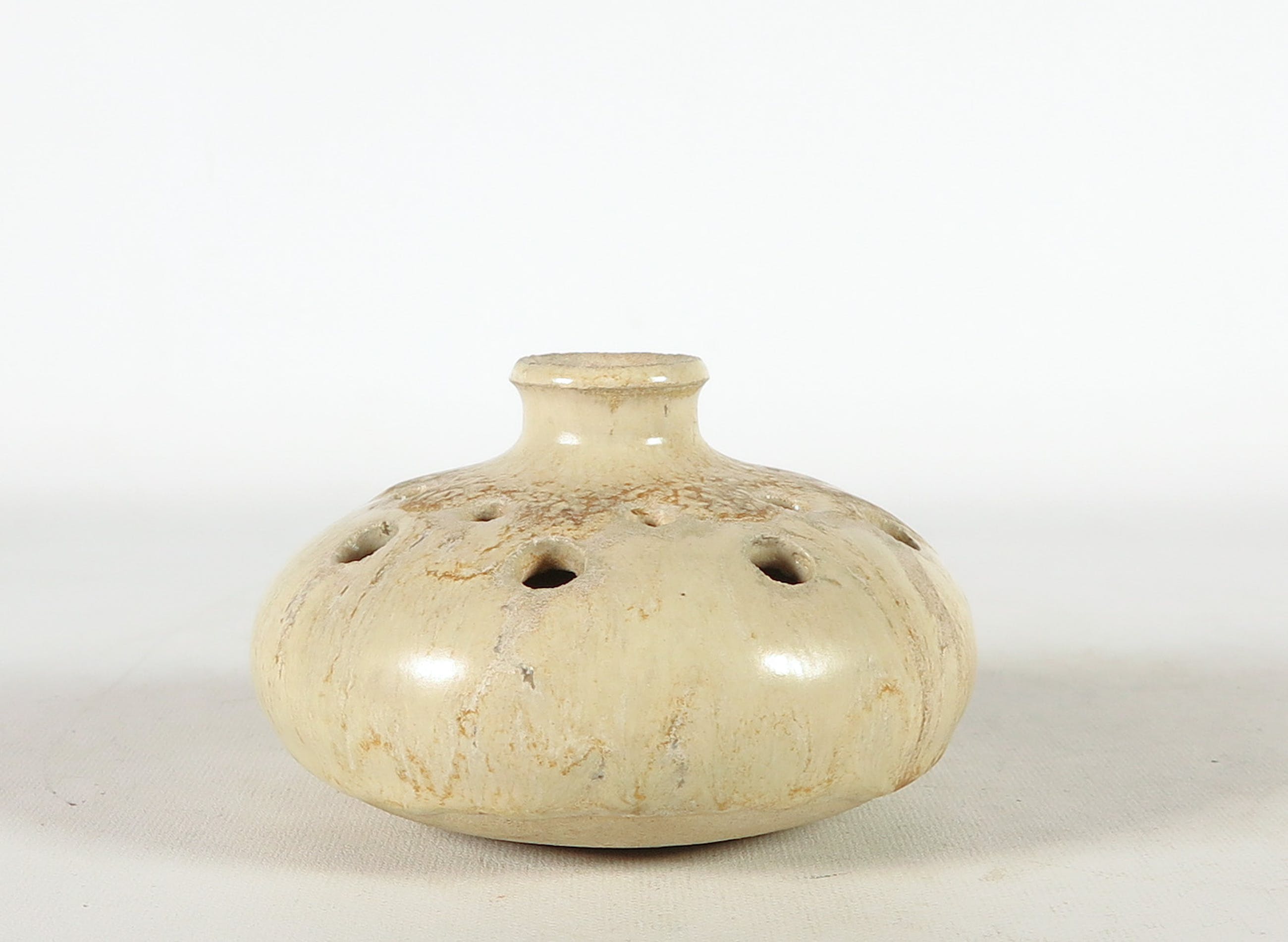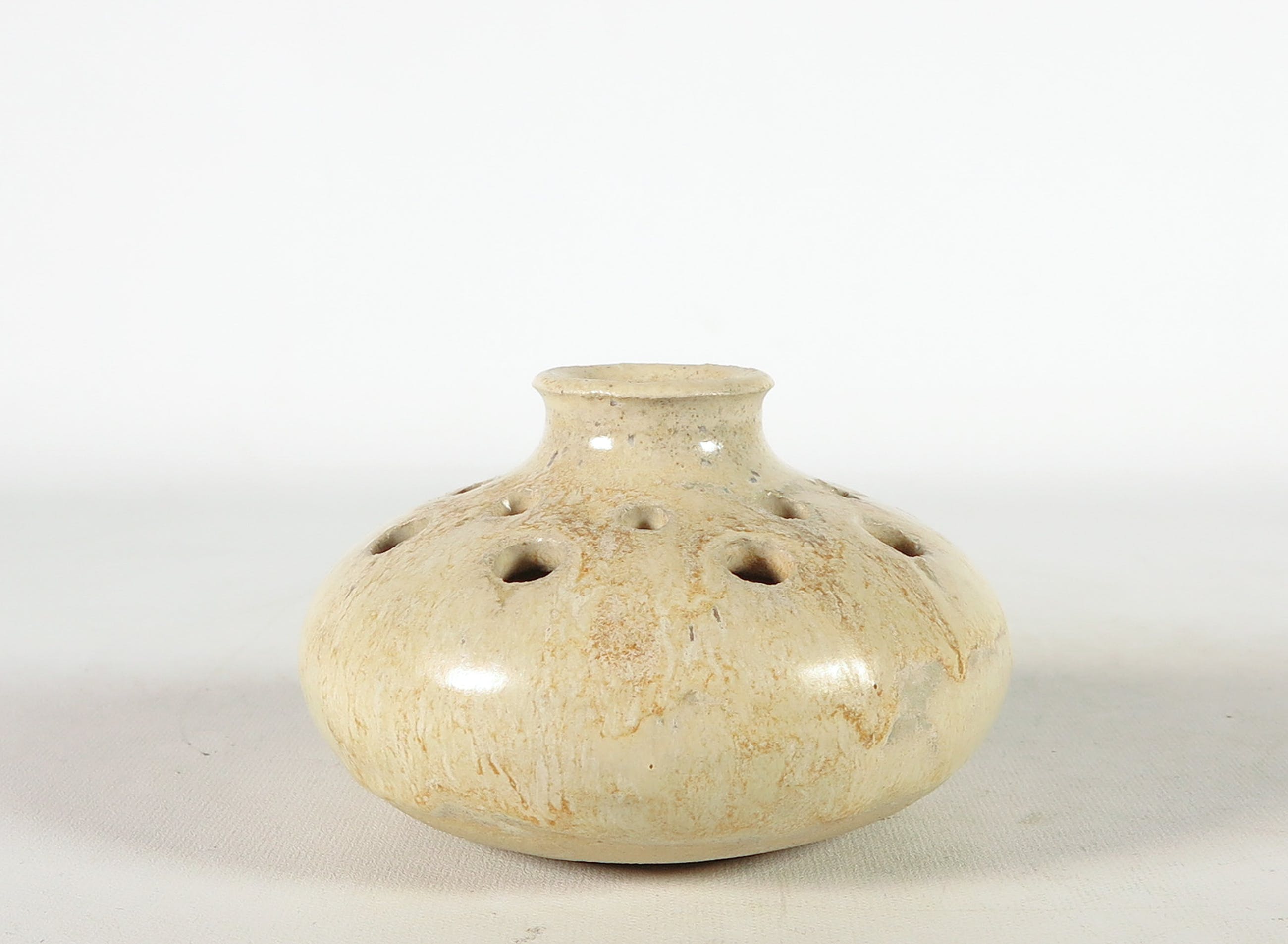 Lot bestaande uit vier opengewerkte objecten. De hierboven genoemde afmetingen geldt voor een van de opengewerkte vaasjes met smalle hals.