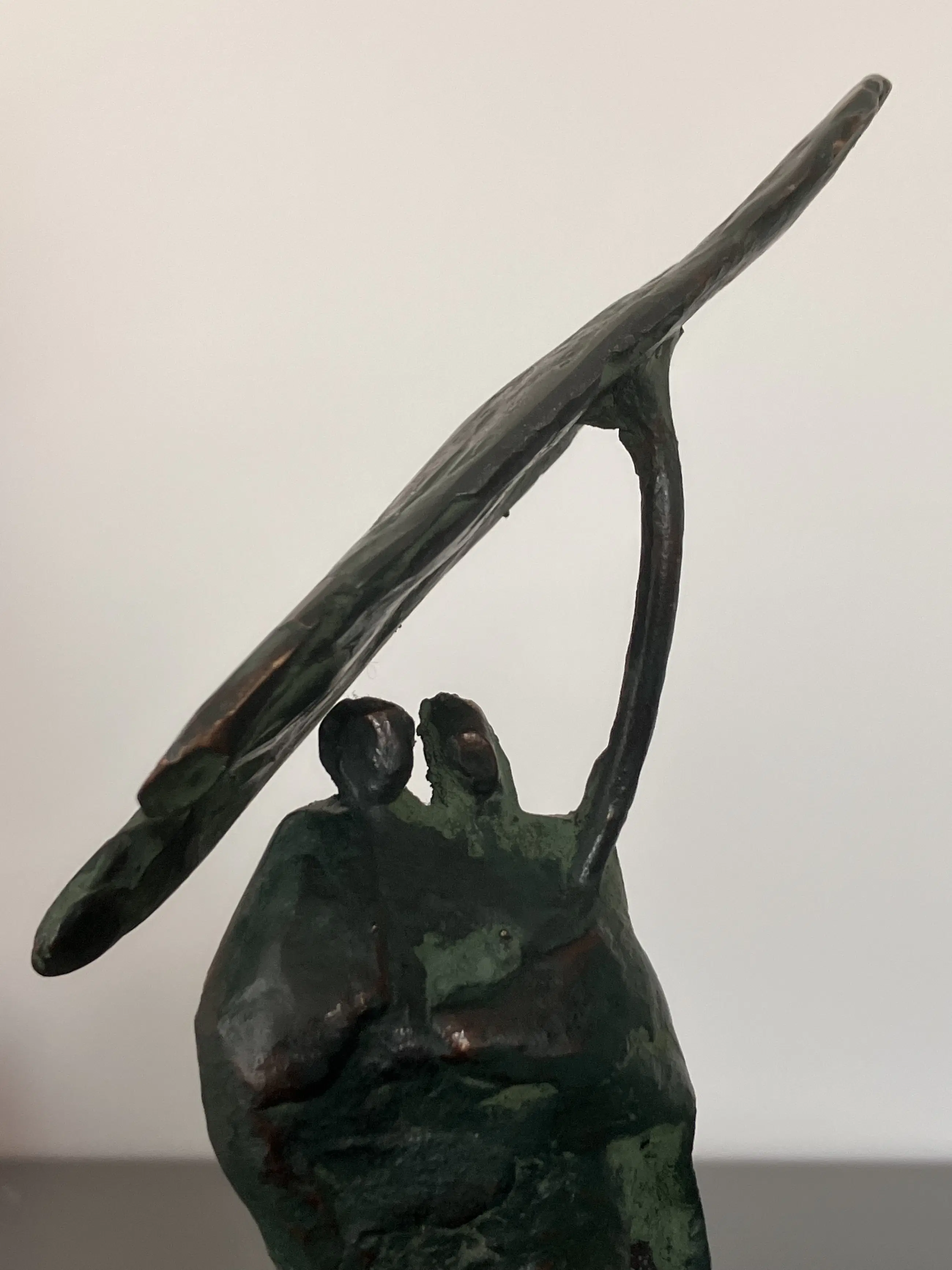 Onder een groot blad als soort paraplu: knus! Massief beeldje