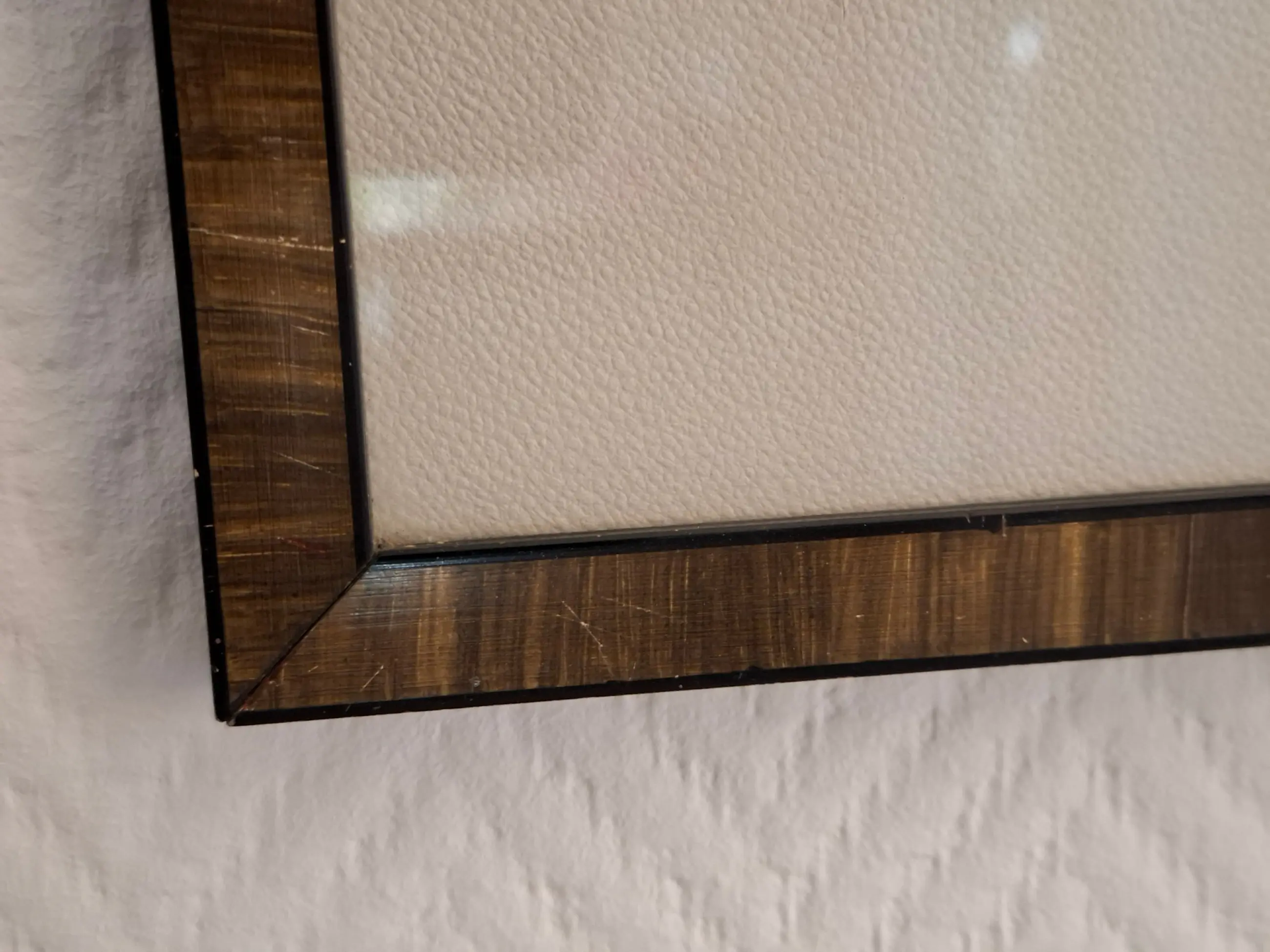 lichte verkleuring van het papier, voornamelijk langs de randen van het passe-partout.
