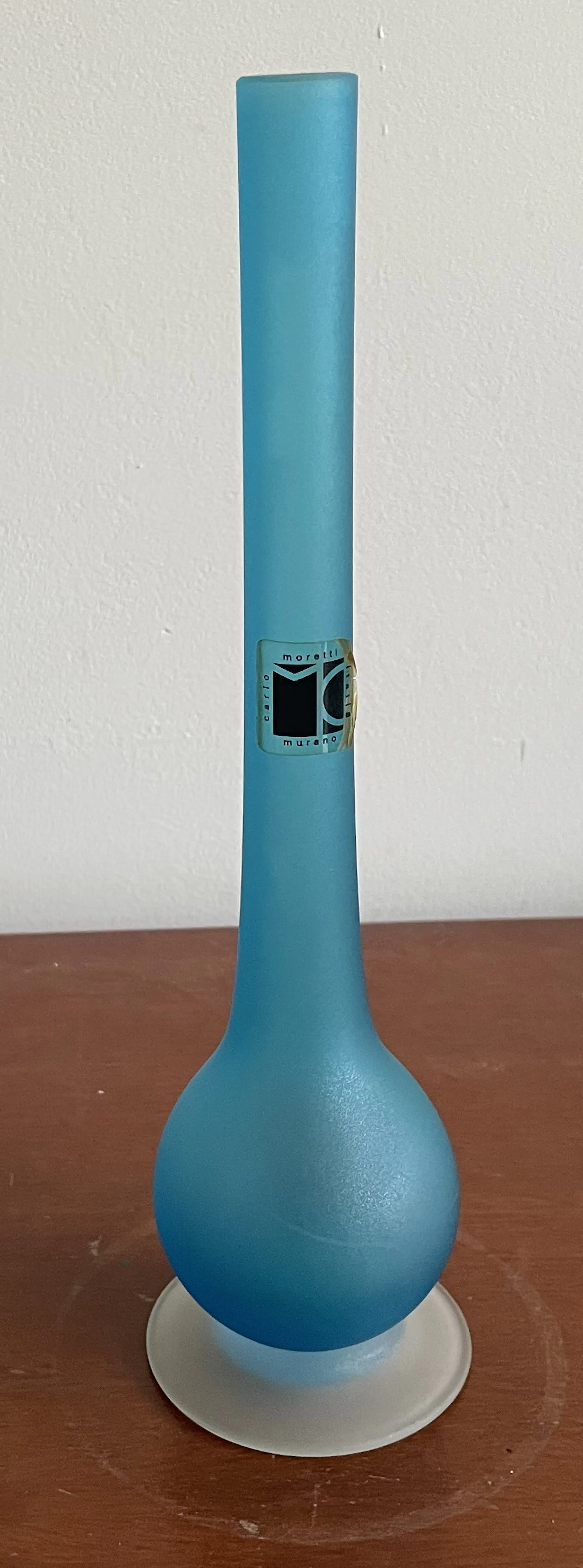 Vintage blauw satinato vaasje van Carlo Moretti uit de jaren’70. In perfecte conditie en voorzien van origineel label.
