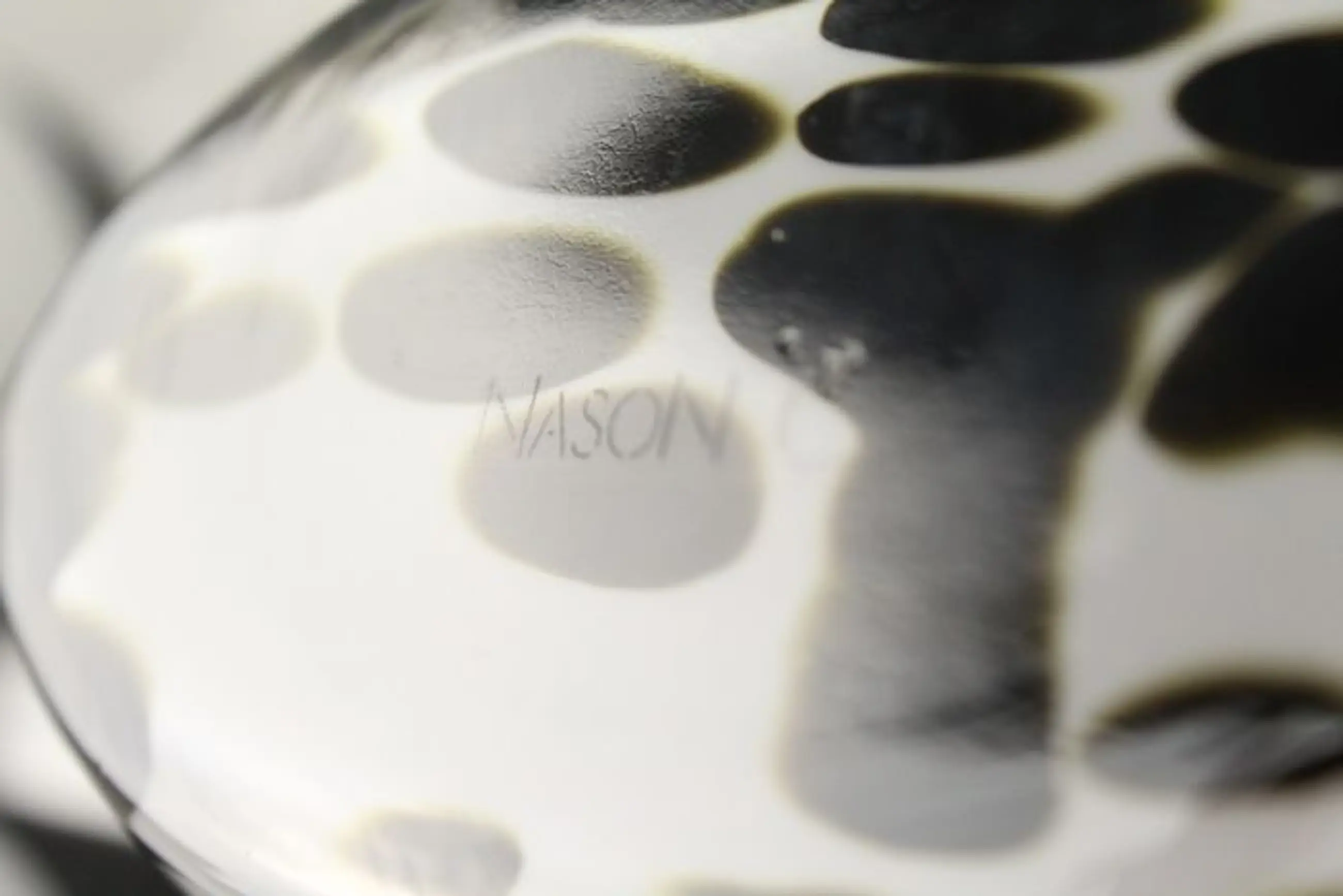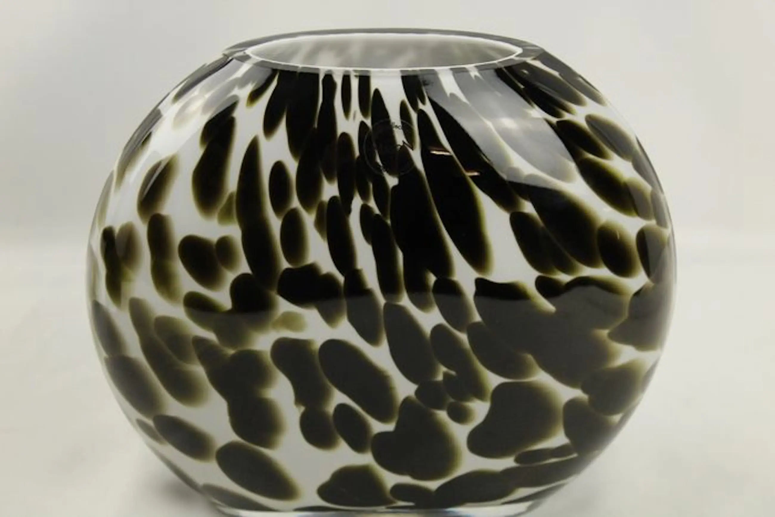 Zwart-witte Murano glazen vaas met transparant, lattimo en zwart glas.