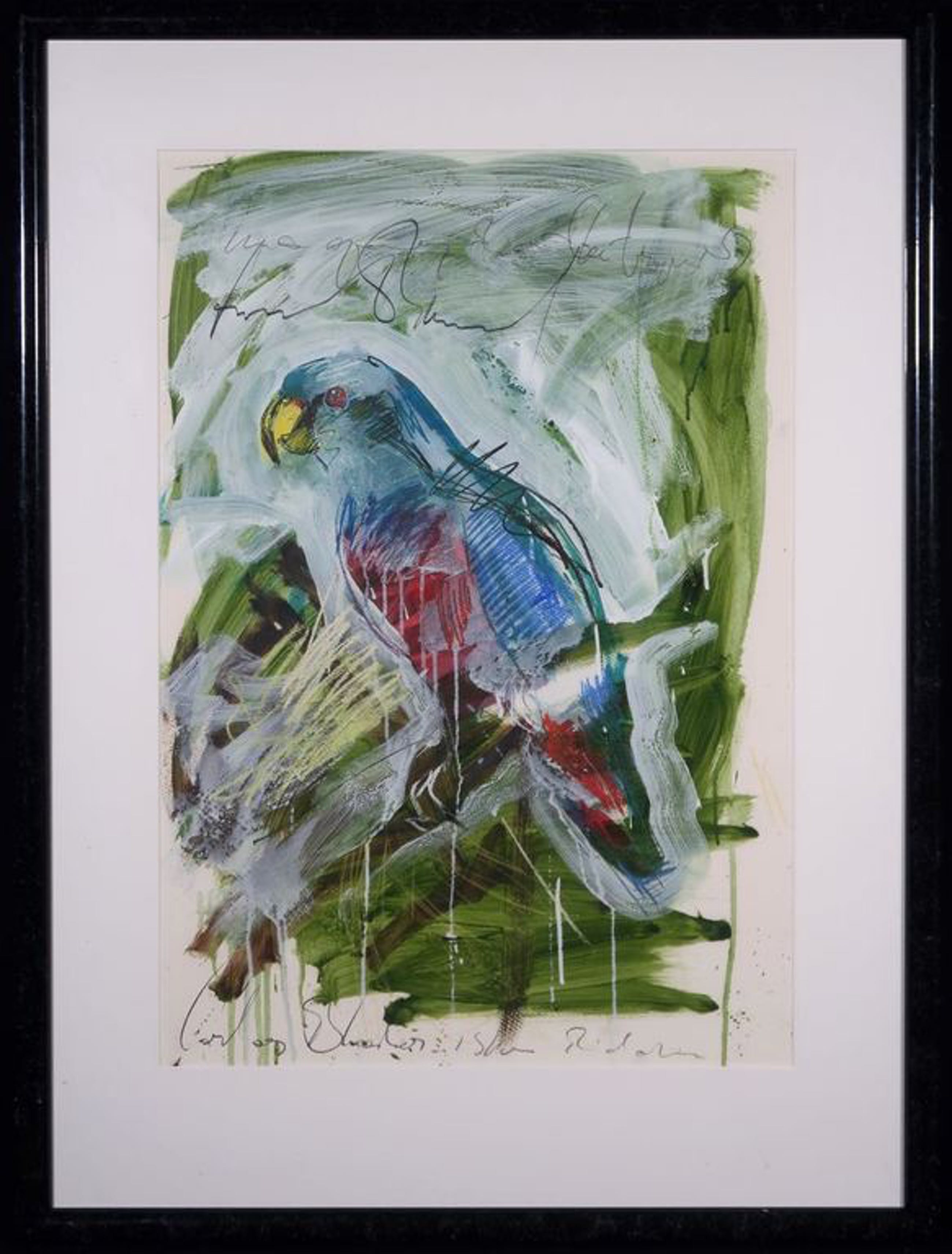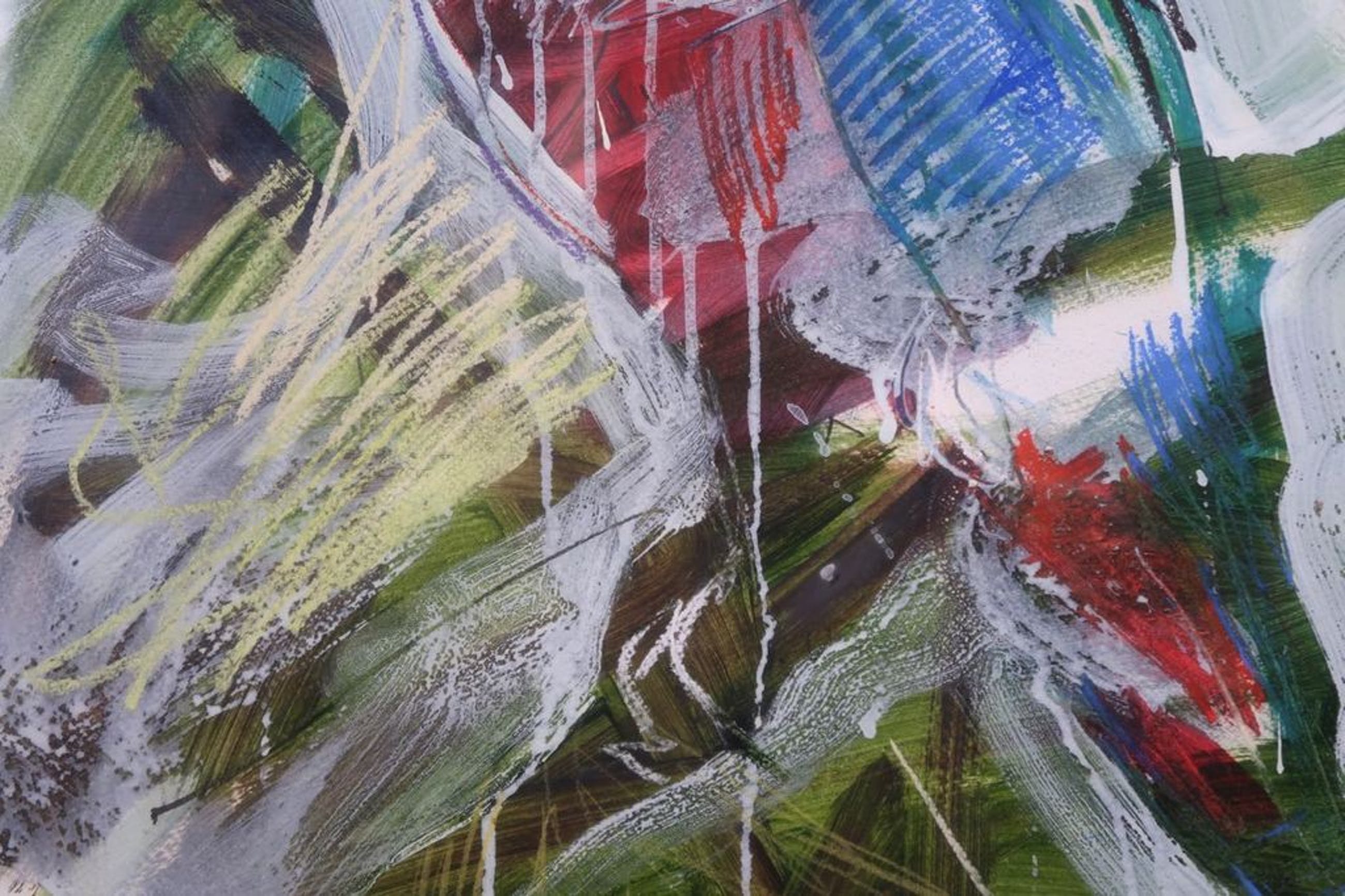 Materiaal: Gemengde techniek op papier, o.a. acrylverf en krijt