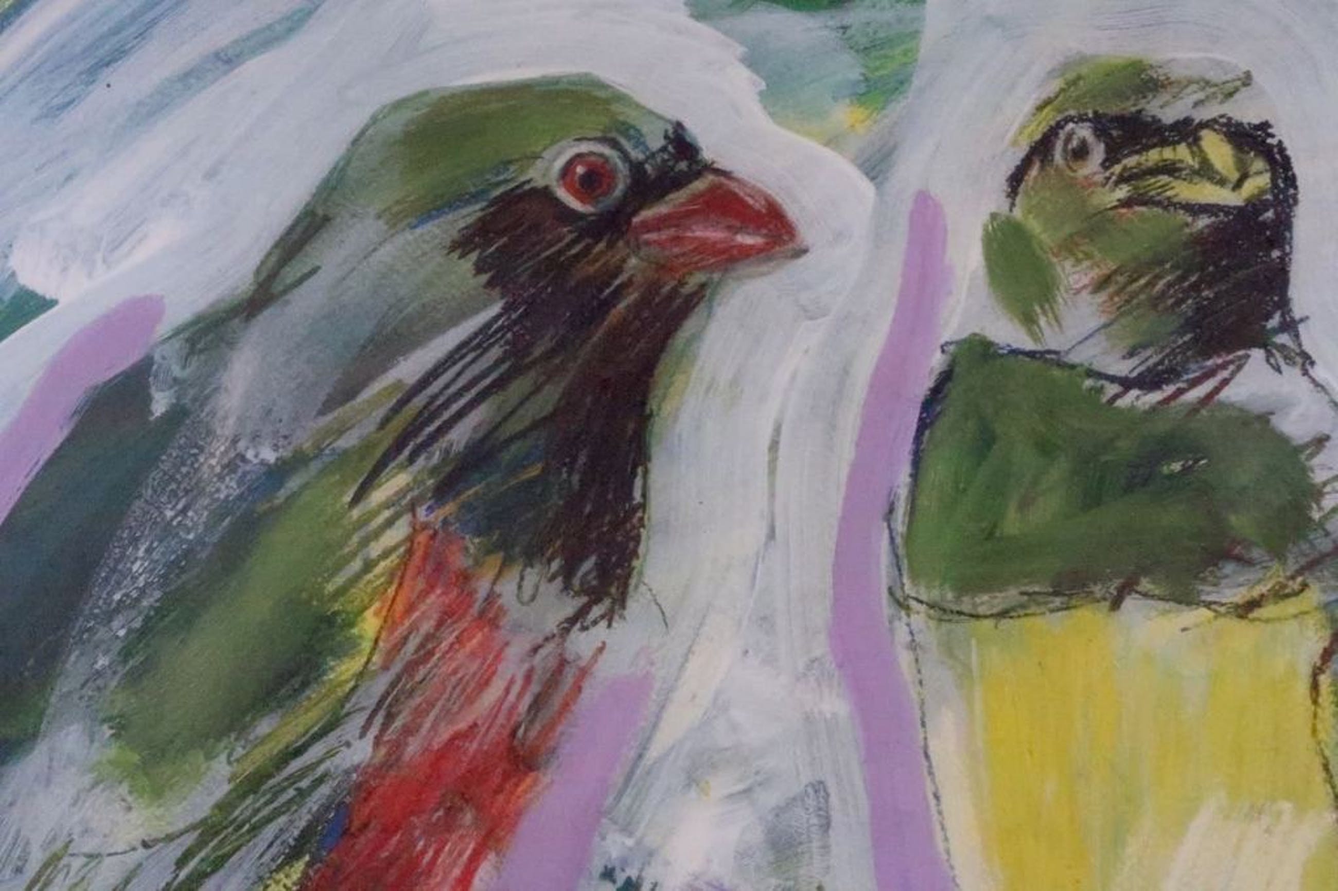 Materiaal: Gemengde techniek op papier, o.a. acrylverf en krijt