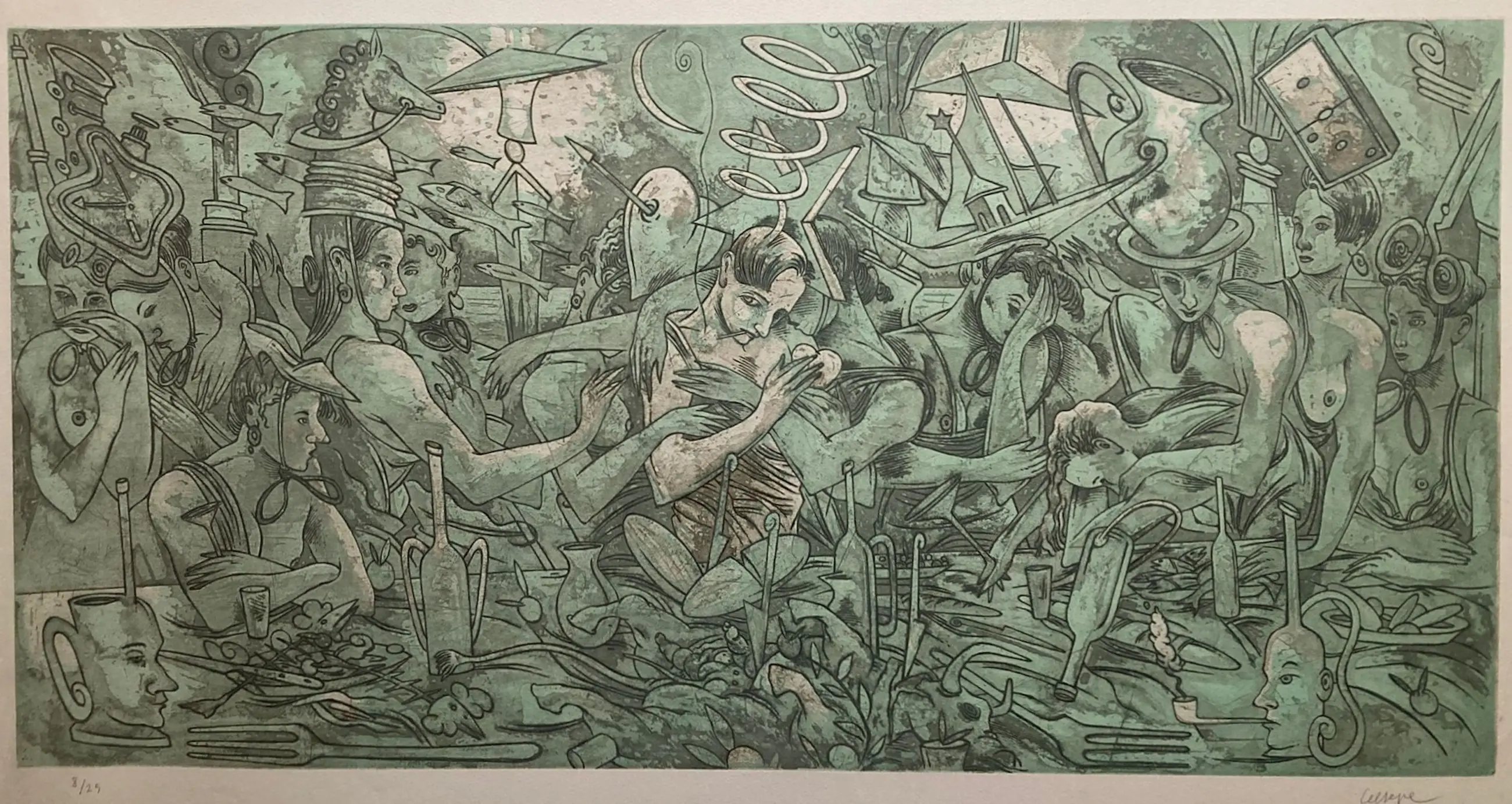 Carlos Ceesepe - Litho , Surrealistische voorstelling - 75½ x 112 cm