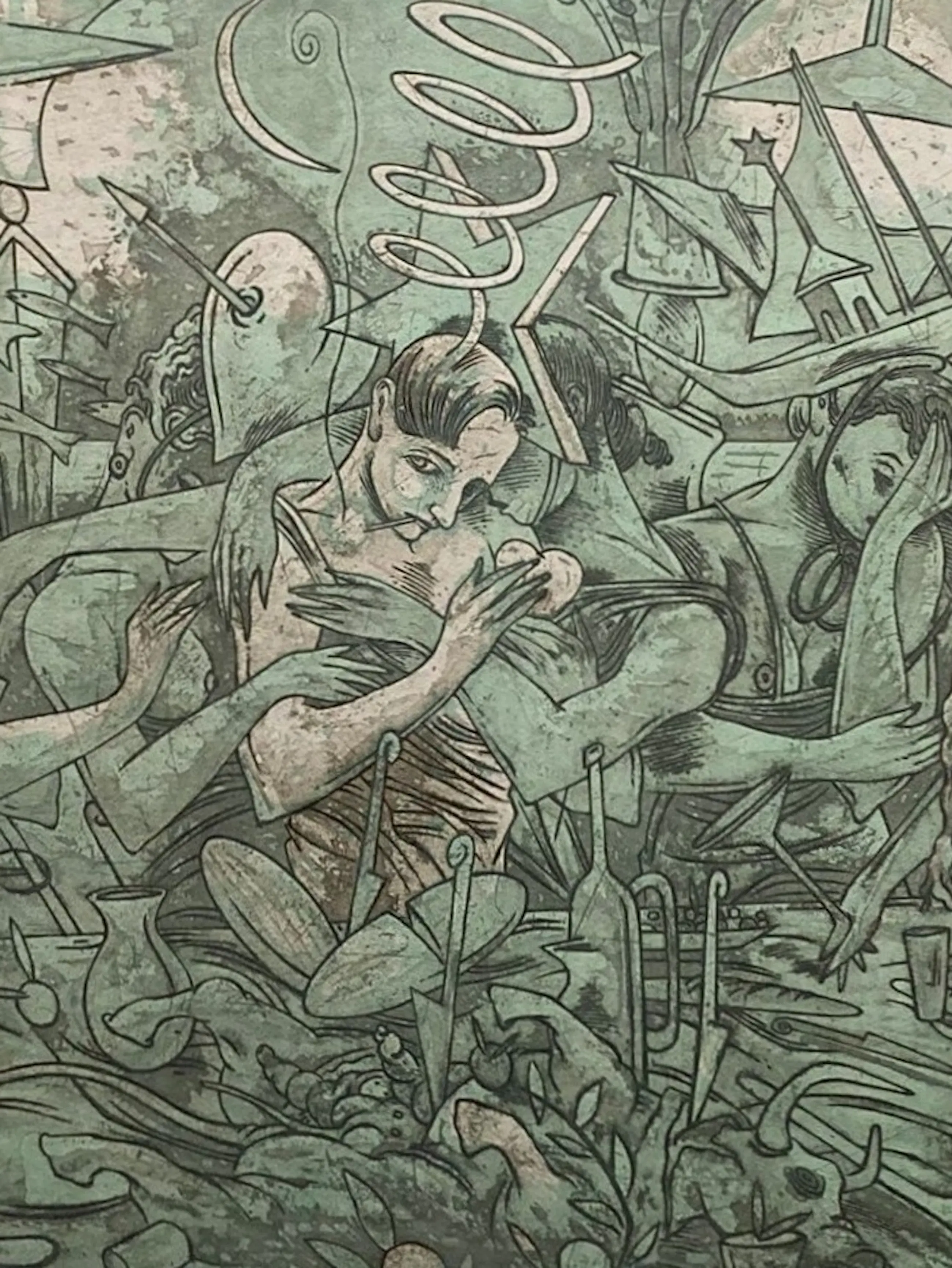 Informatie over de kunstenaar: Carlos Sanchez Perez (‘Ceesepe’) (Madrid, Spanje, 31 mei 1958 – Madrid, 7 september 2018), illustrator, cineast, striptekenaar en schilder. Zijn pseudoniem ‘Ceesepe’ is gebaseerd op de Spaanse uitspraak van zijn initialen (C.S.P.). Hij wordt beschouwd als een sleutelfiguur in 'La Movida Madrileña', een culturele tegenbeweging die opkwam na het einde van de Franco-dictatuur in Spanje. Zijn stijl wordt vaak geclassificeerd als pop-art. Ceesepe begon zijn carrière in de undergroundstripwereld en maakte in de jaren ‘80 de overstap naar de schilderkunst. Hij had exposities in o.a. Madrid, Amsterdam, Parijs en New York. In 2011 ontving hij de Gouden Medaille van Verdienste in de Schone Kunsten van Spanje. Carlos Sanchez Perez (‘Ceesepe’) overleed op 7 september 2018 in Madrid op zestigjarige leeftijd. Bron: Wikipedia en https://www.lambiek.net/artists/c/ceesepe1.htm