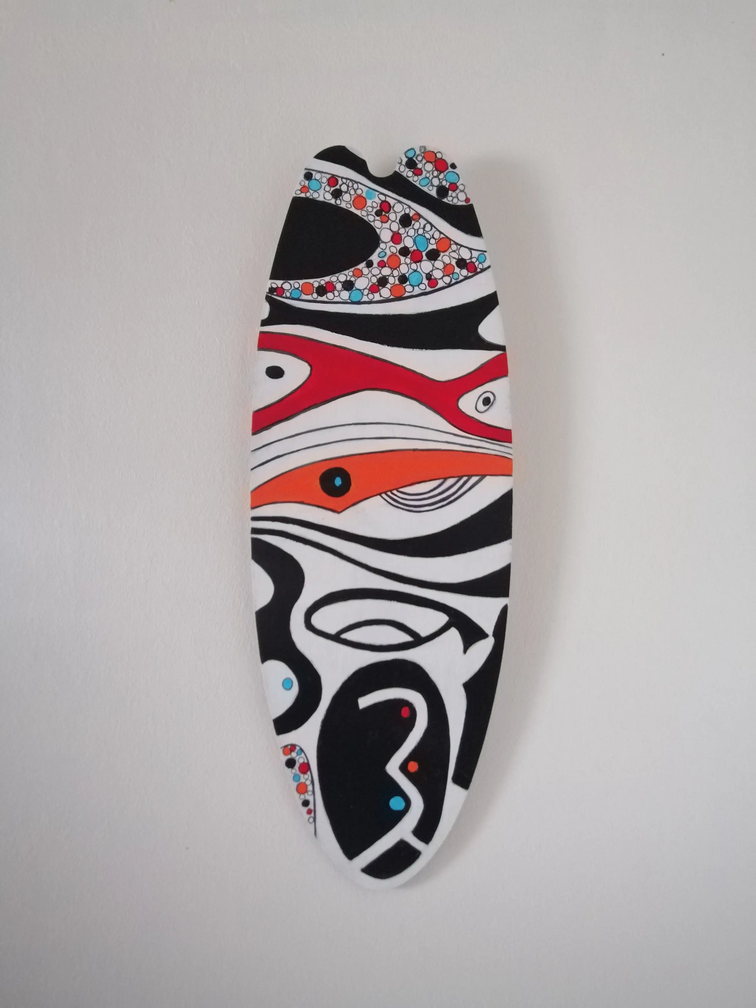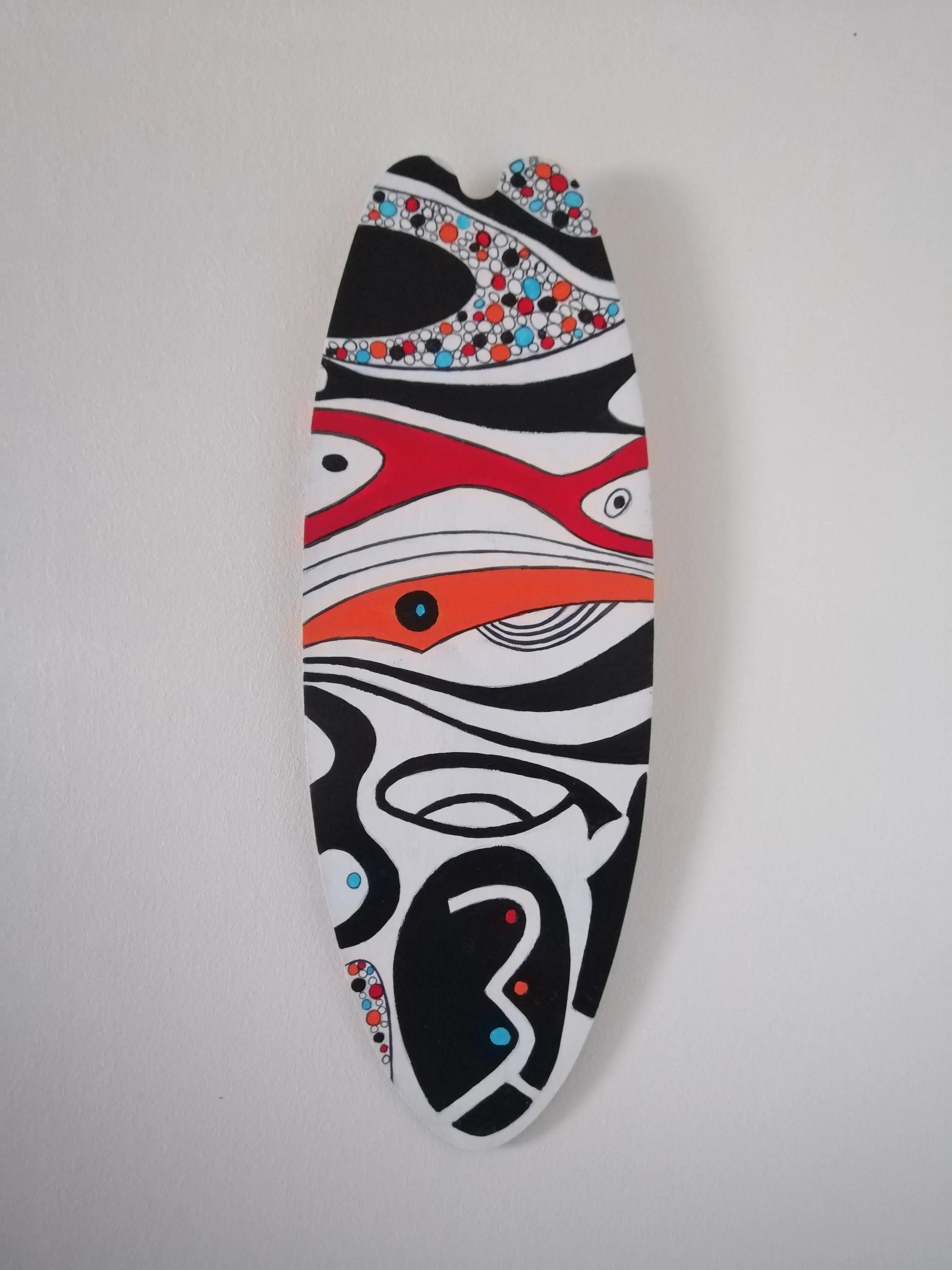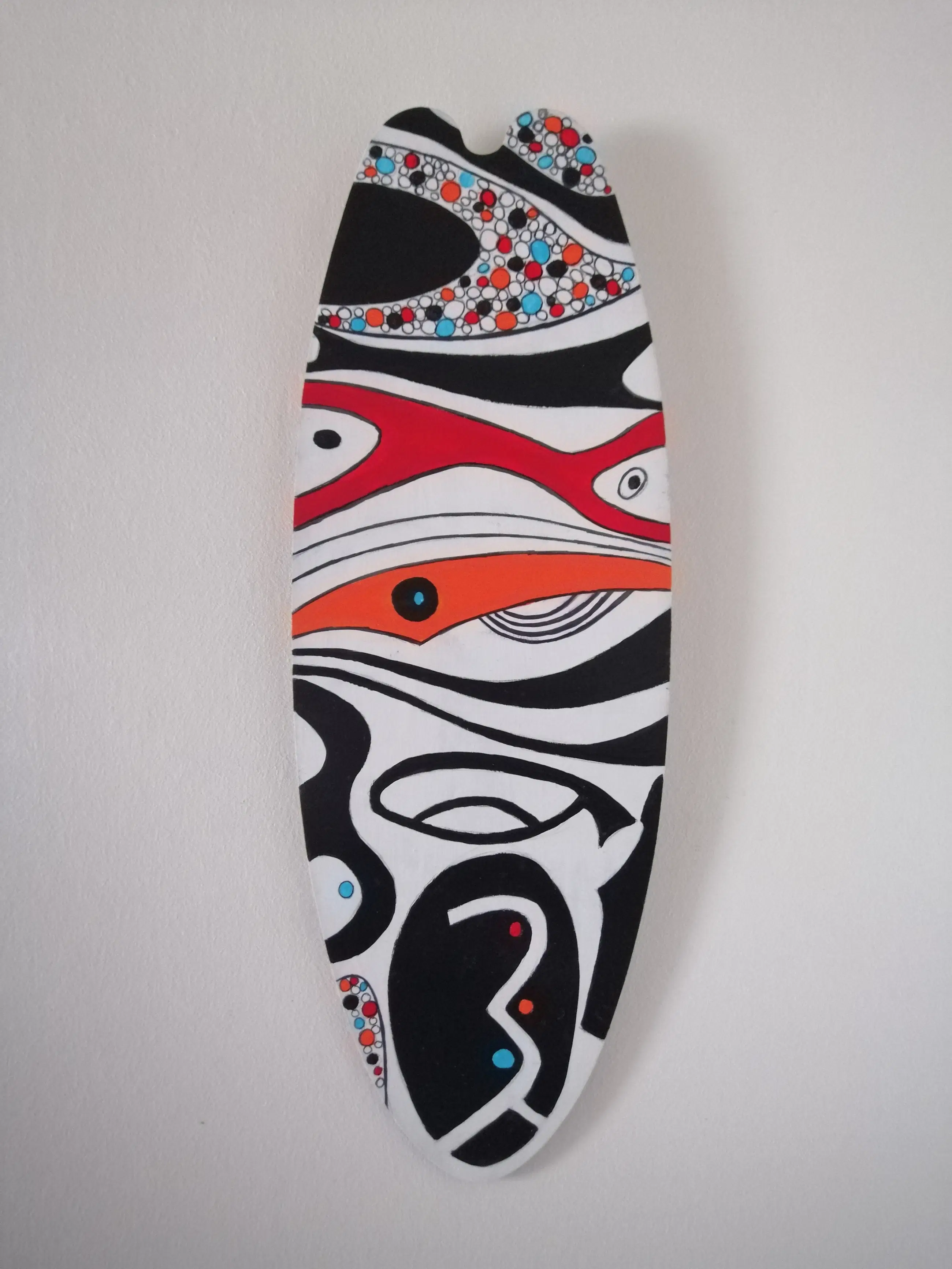 Technieken: acrylverf en inkt op houten paneel, afgewerkt met satijnvernis.