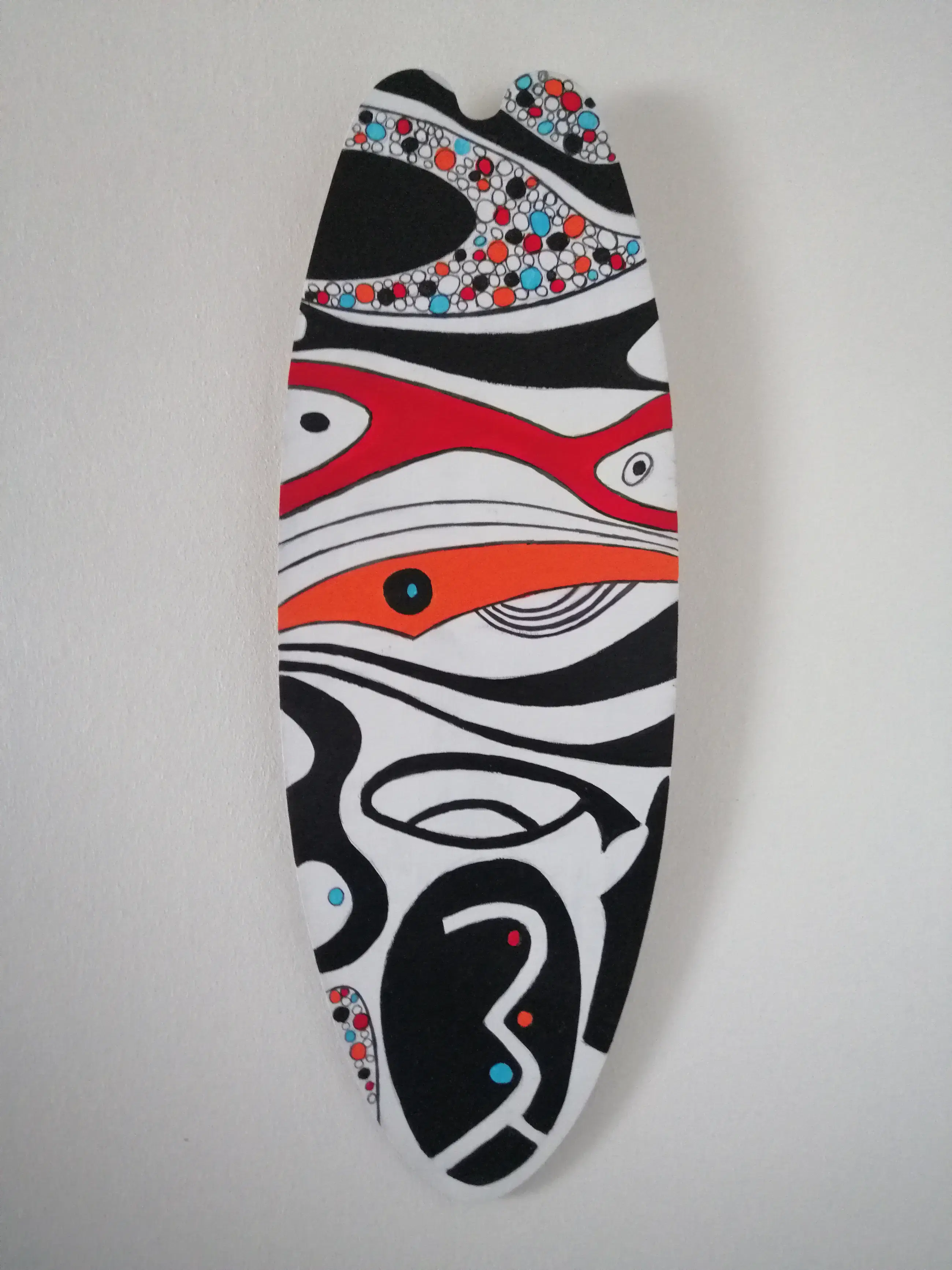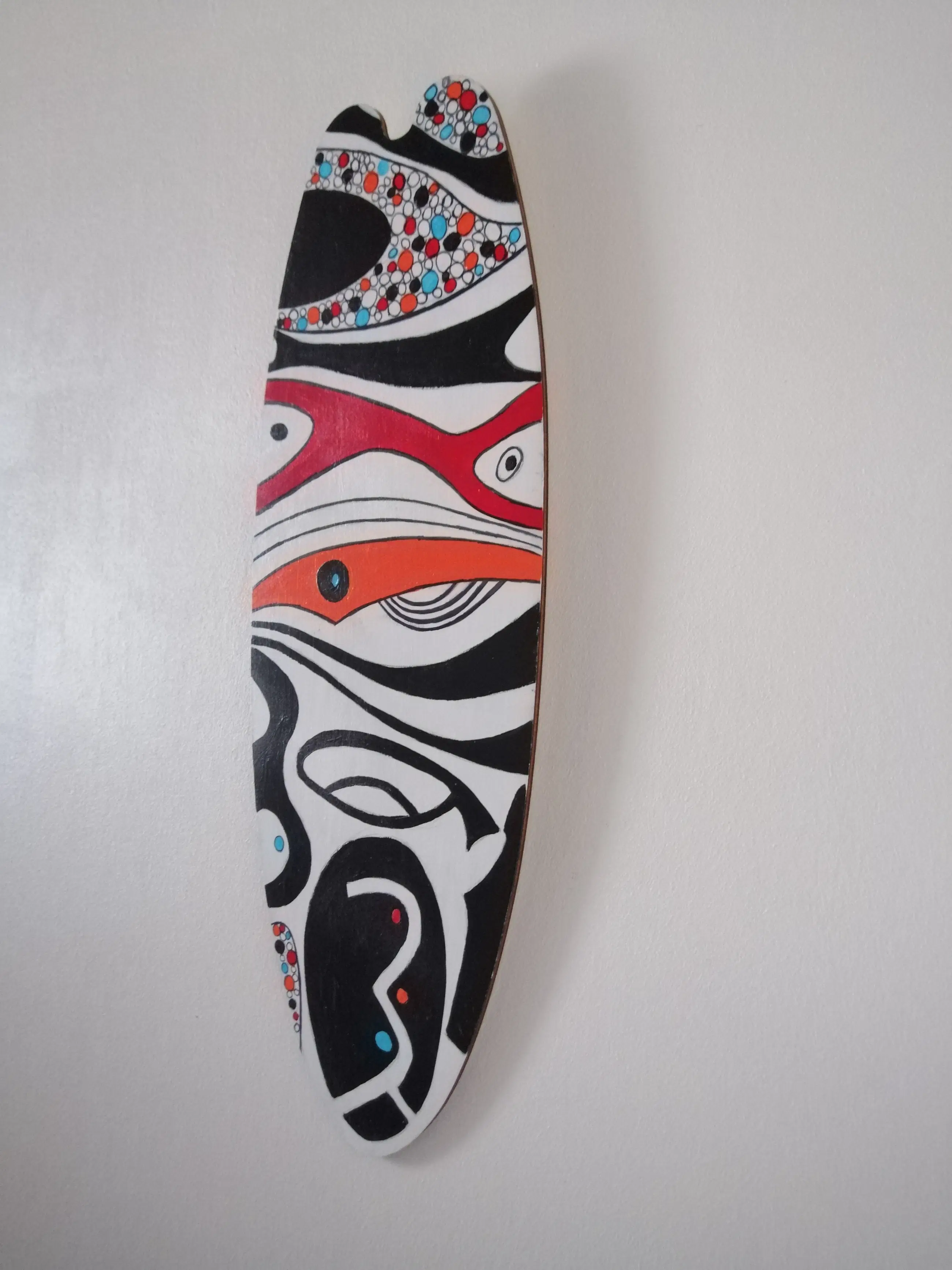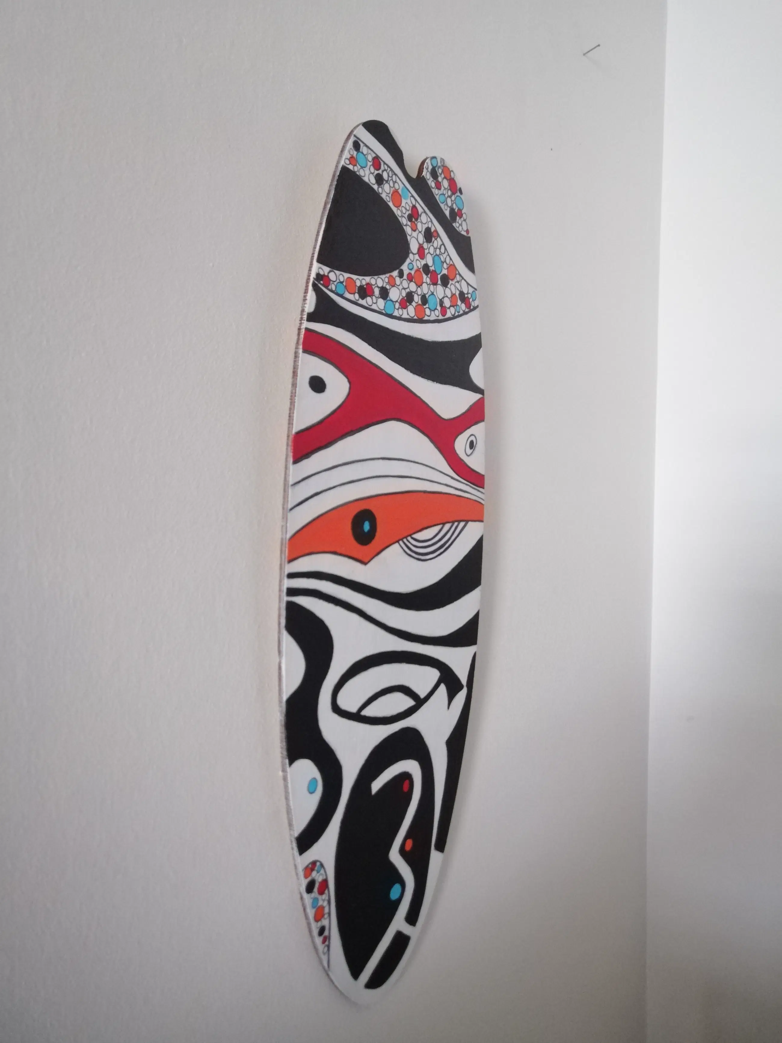 Technieken: acrylverf en inkt op houten paneel, afgewerkt met satijnvernis.