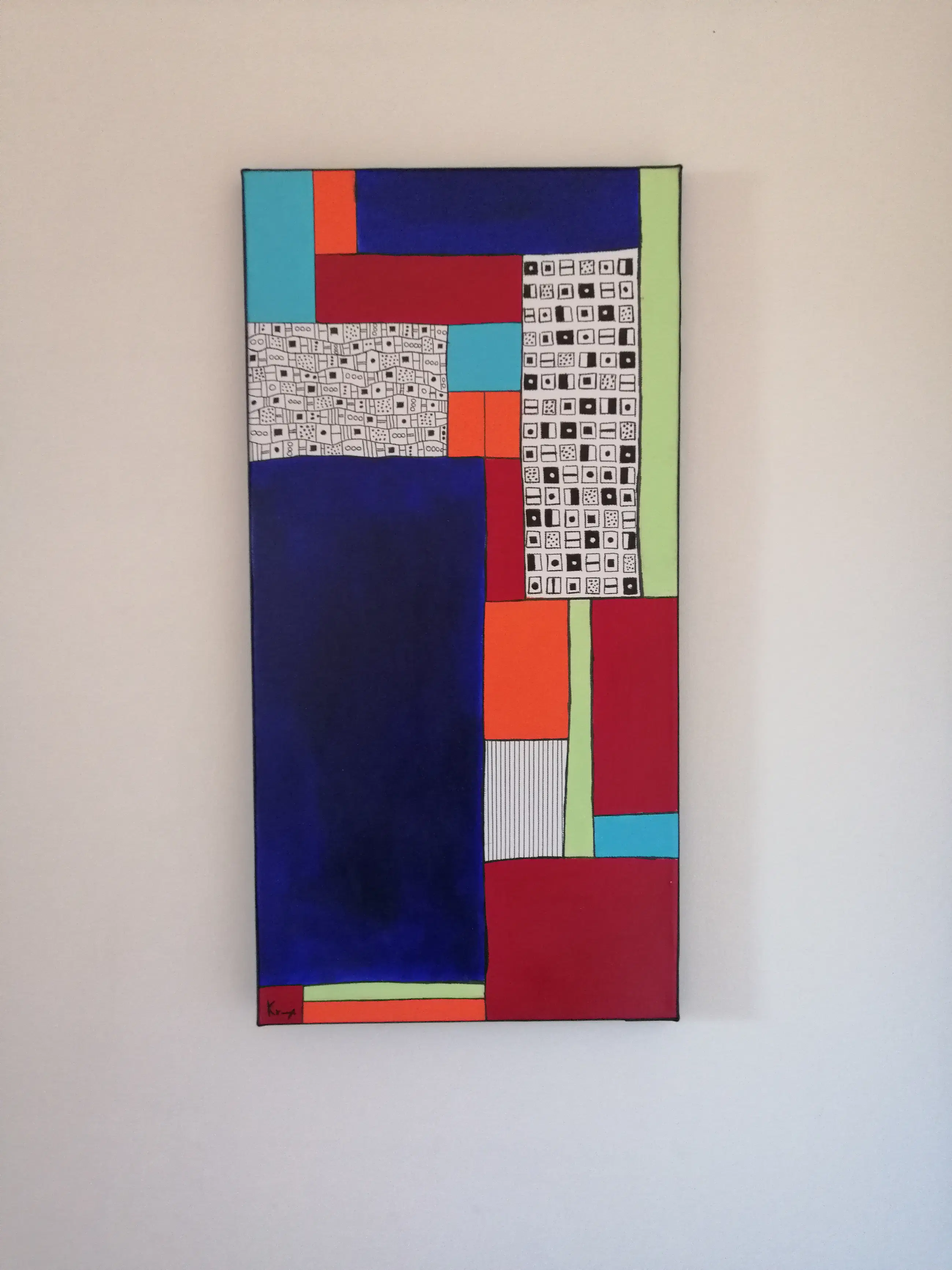 Technieken: acrylverf en inkt, afgewerkt met satijnen vernis