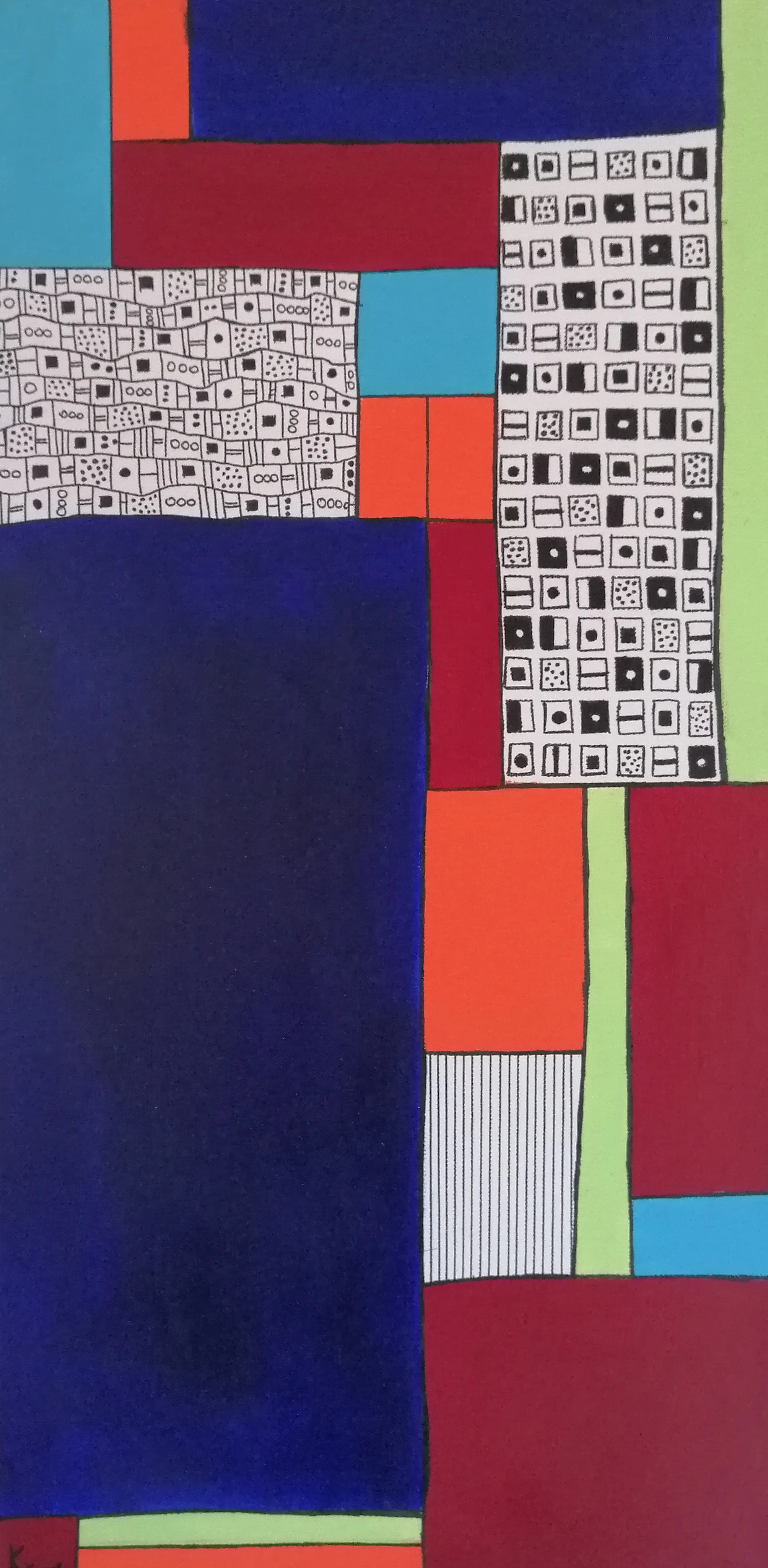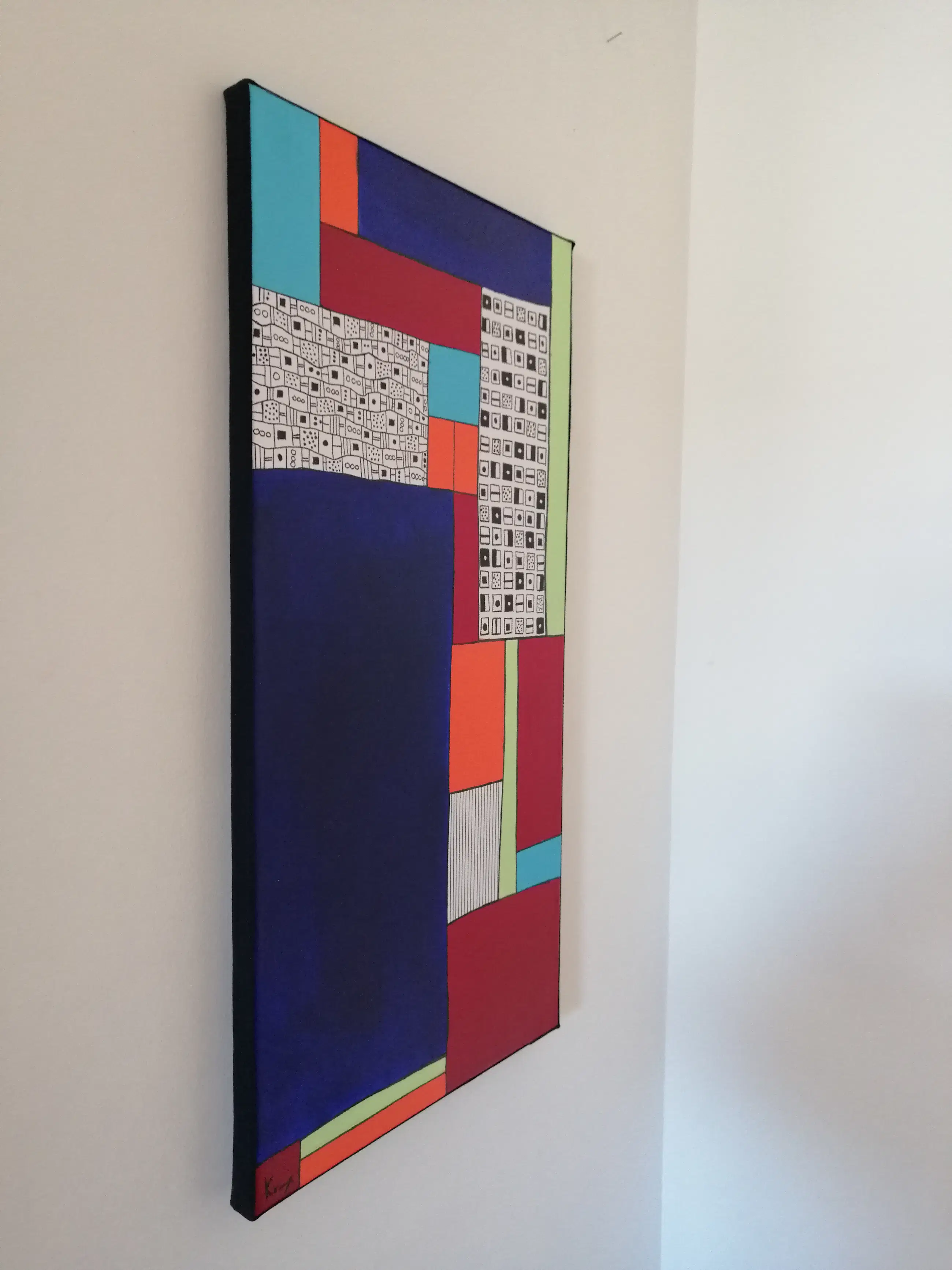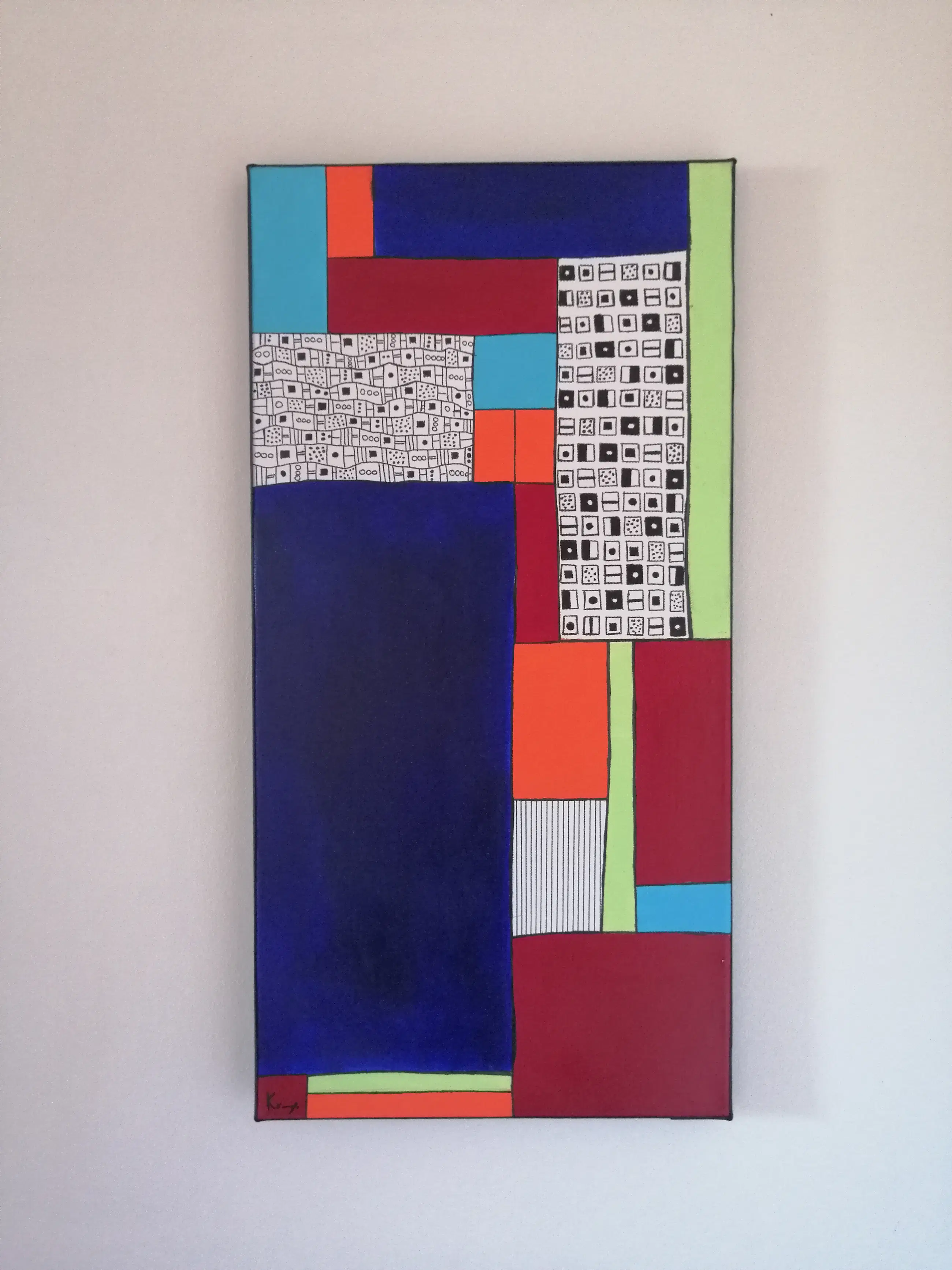 Technieken: acrylverf en inkt, afgewerkt met satijnvernis.