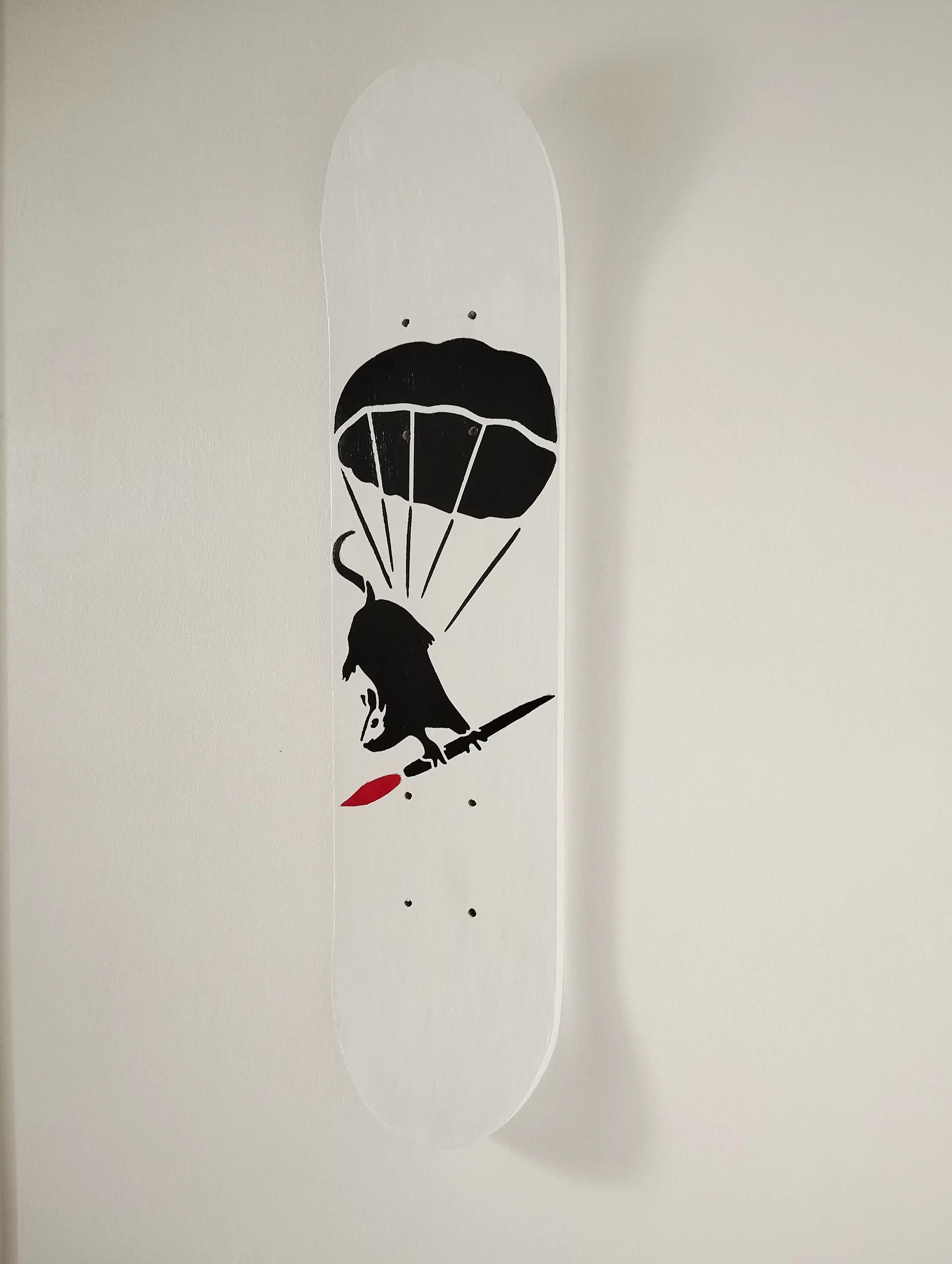 Technieken: hout, acrylverf en inkt, satijnen vernisafwerking