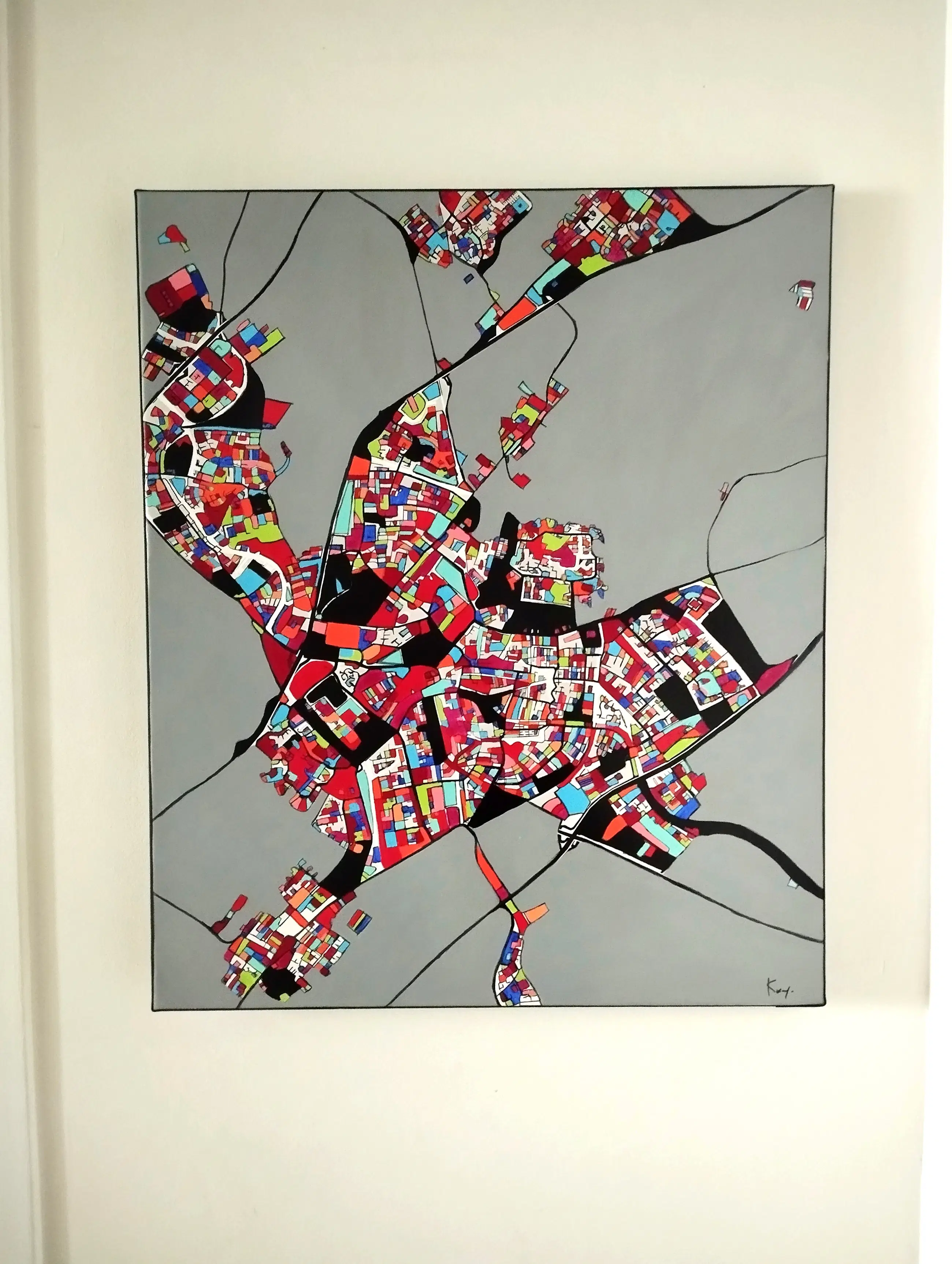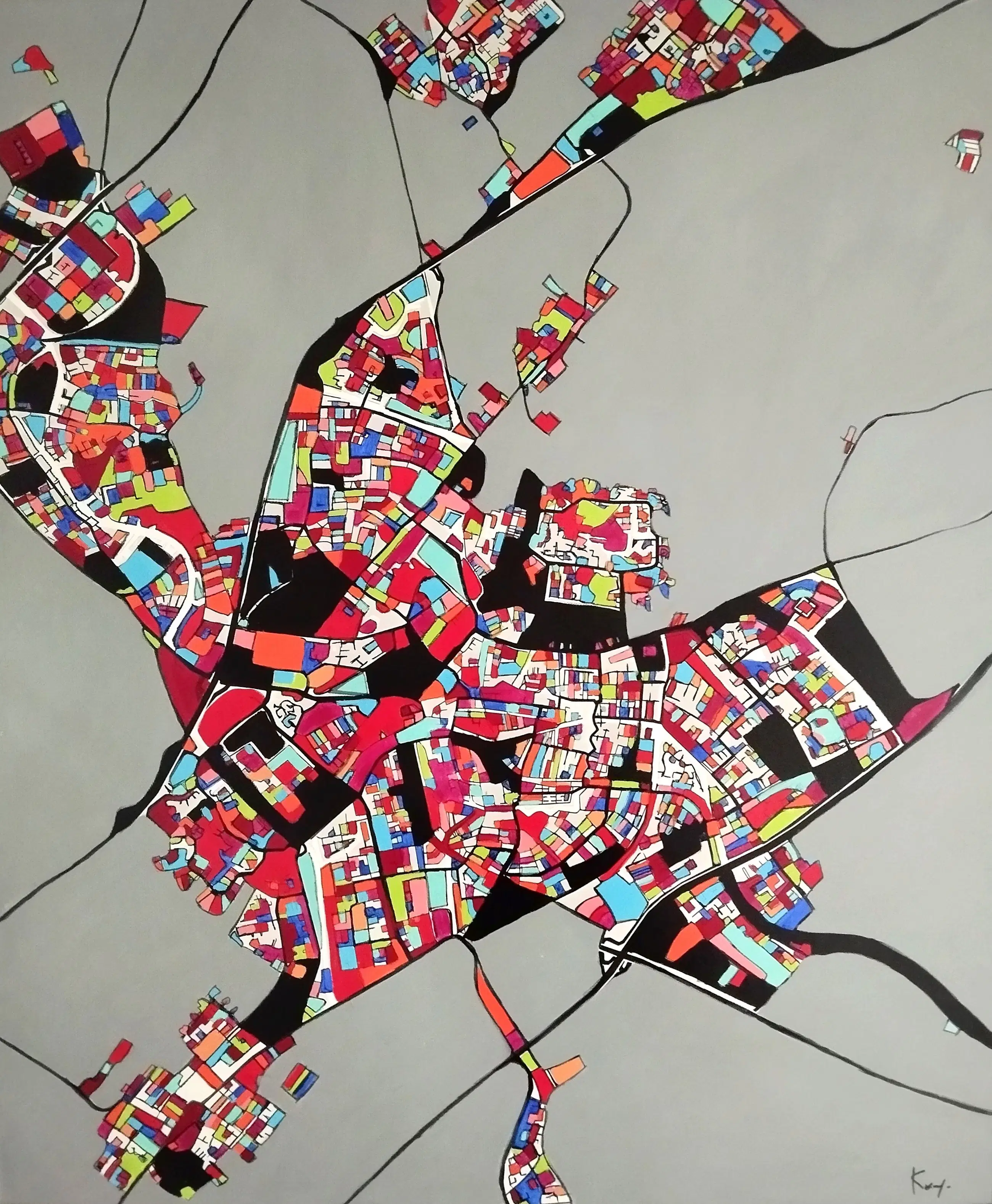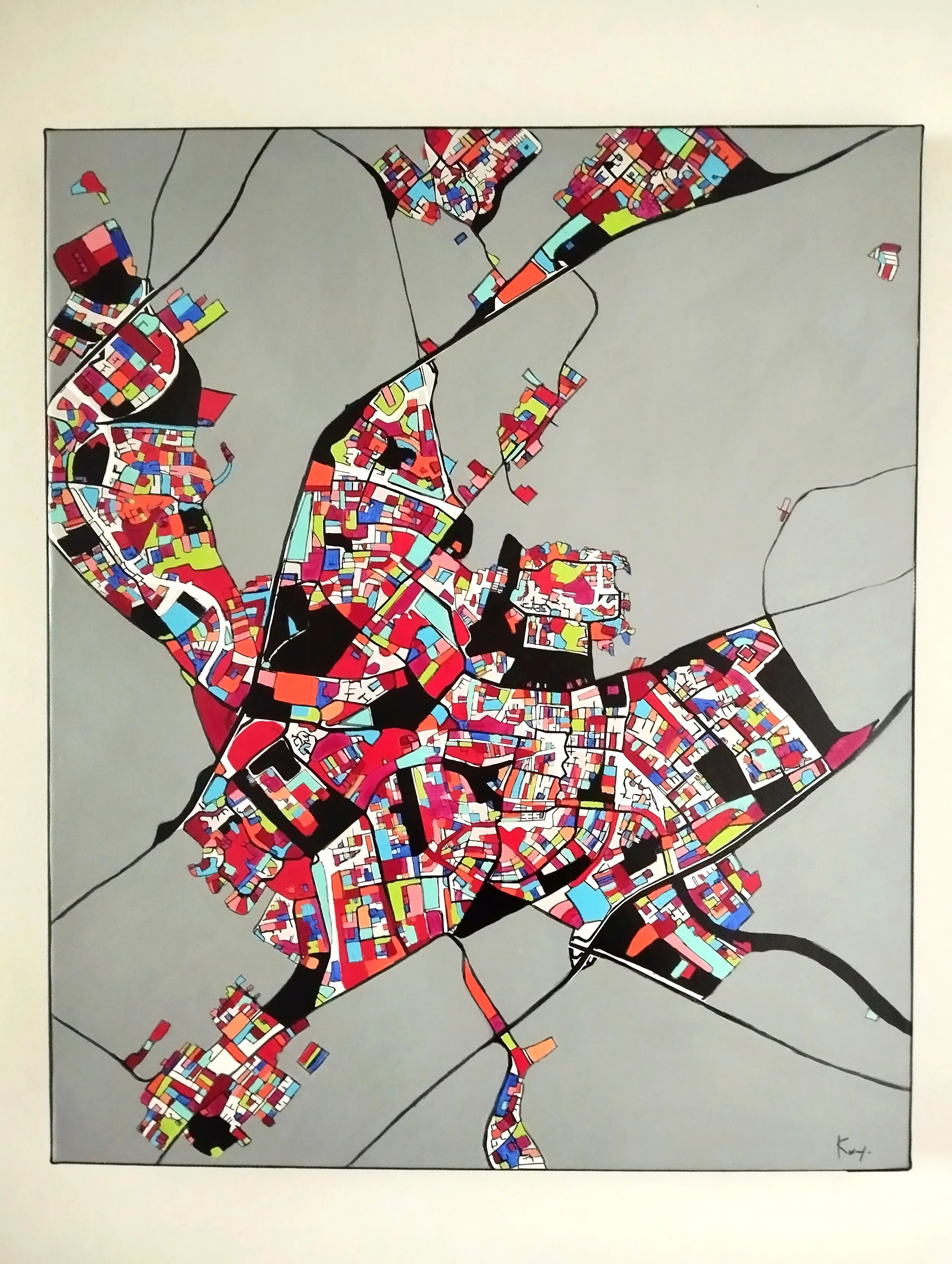 Technieken: acrylverf en inkt, satijnen vernisafwerking