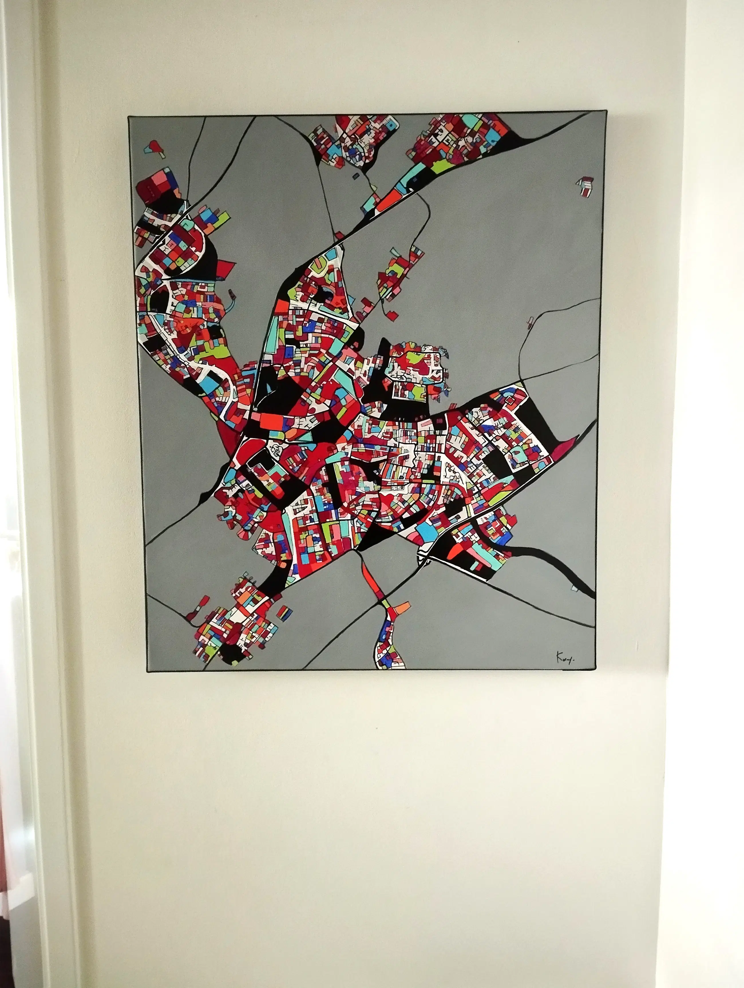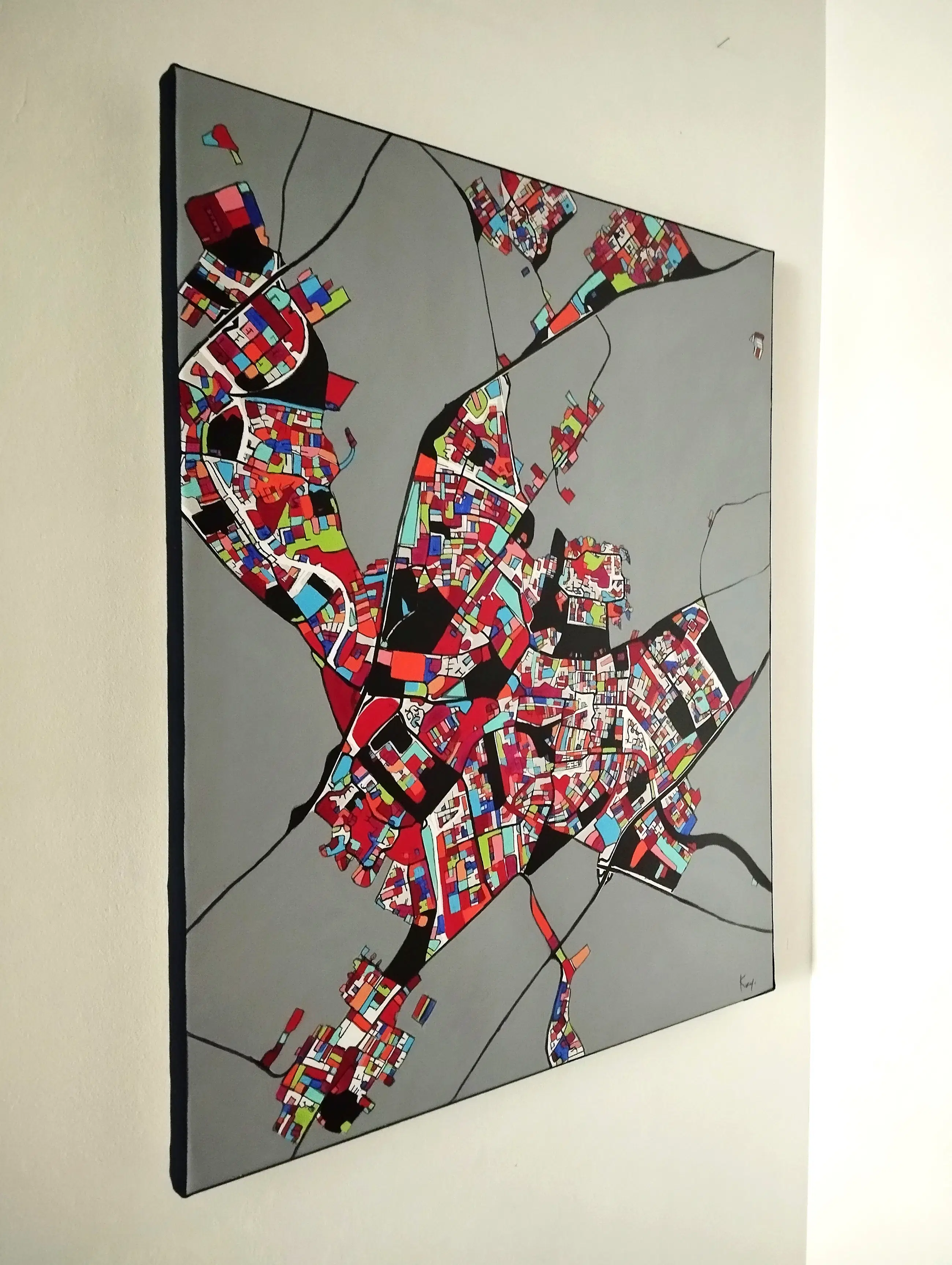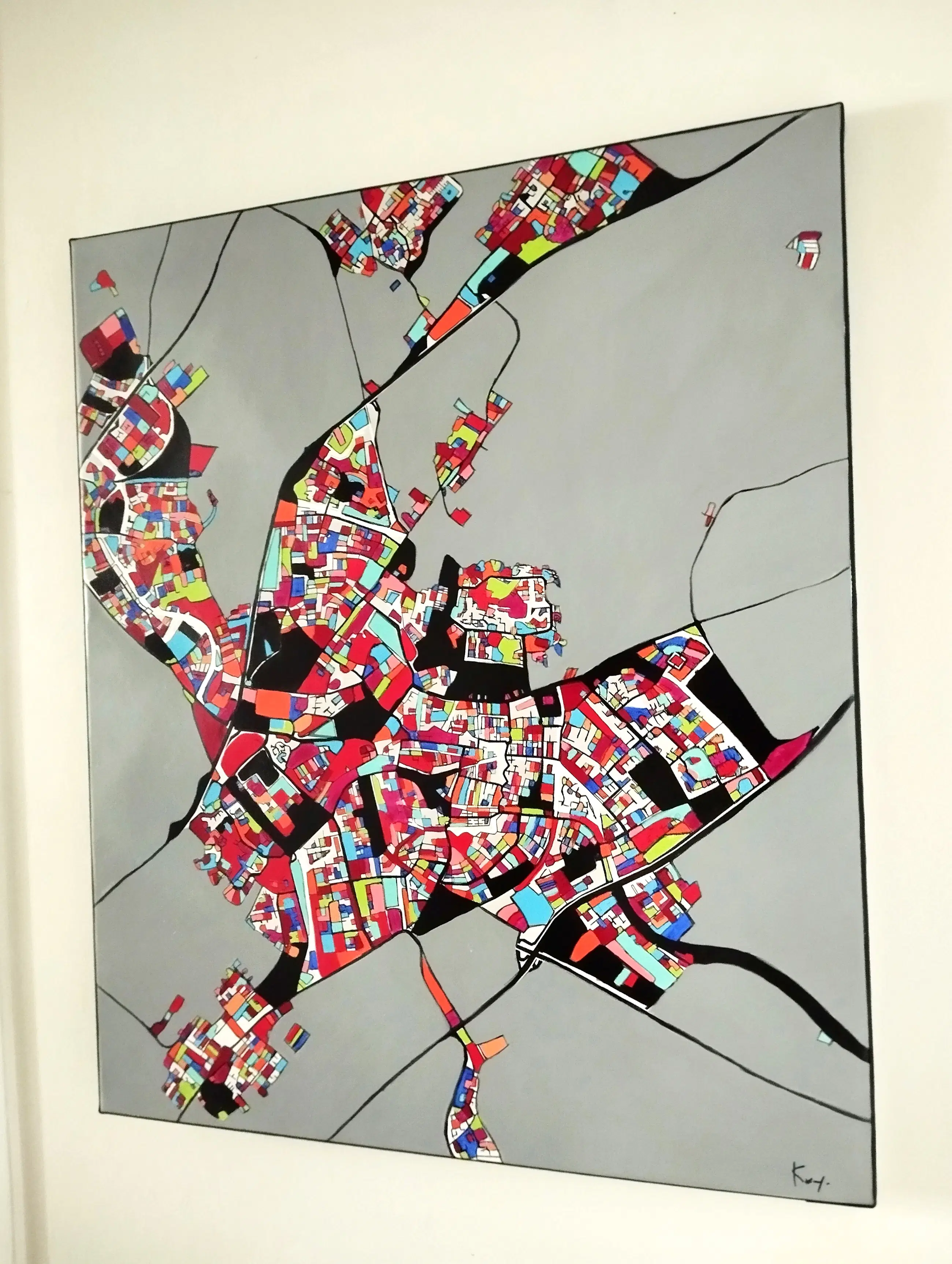 Technieken: acrylverf en inkt, satijnen vernisafwerking