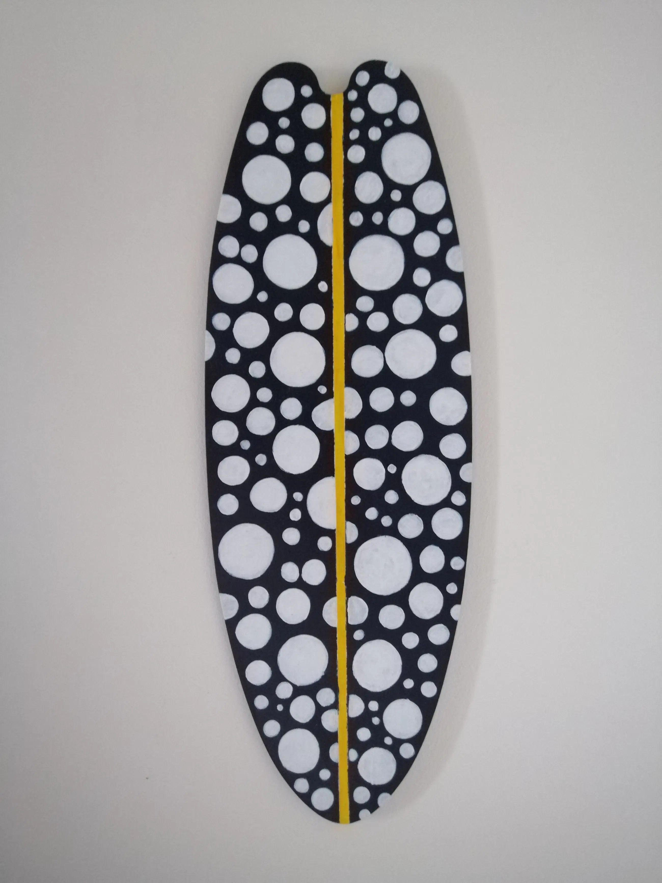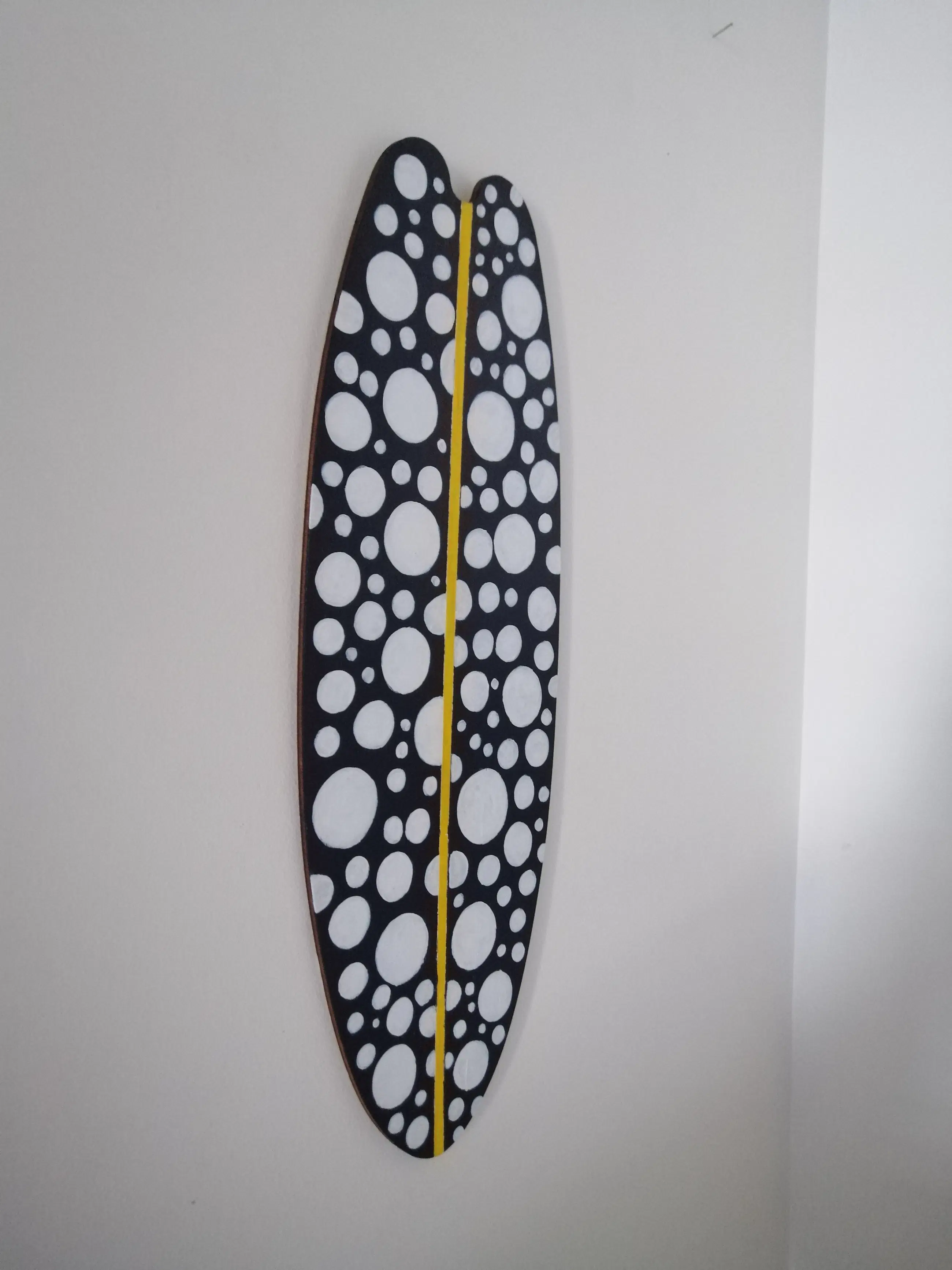 Technieken: acrylverf en inkt op houten paneel, afgewerkt met satijnvernis.