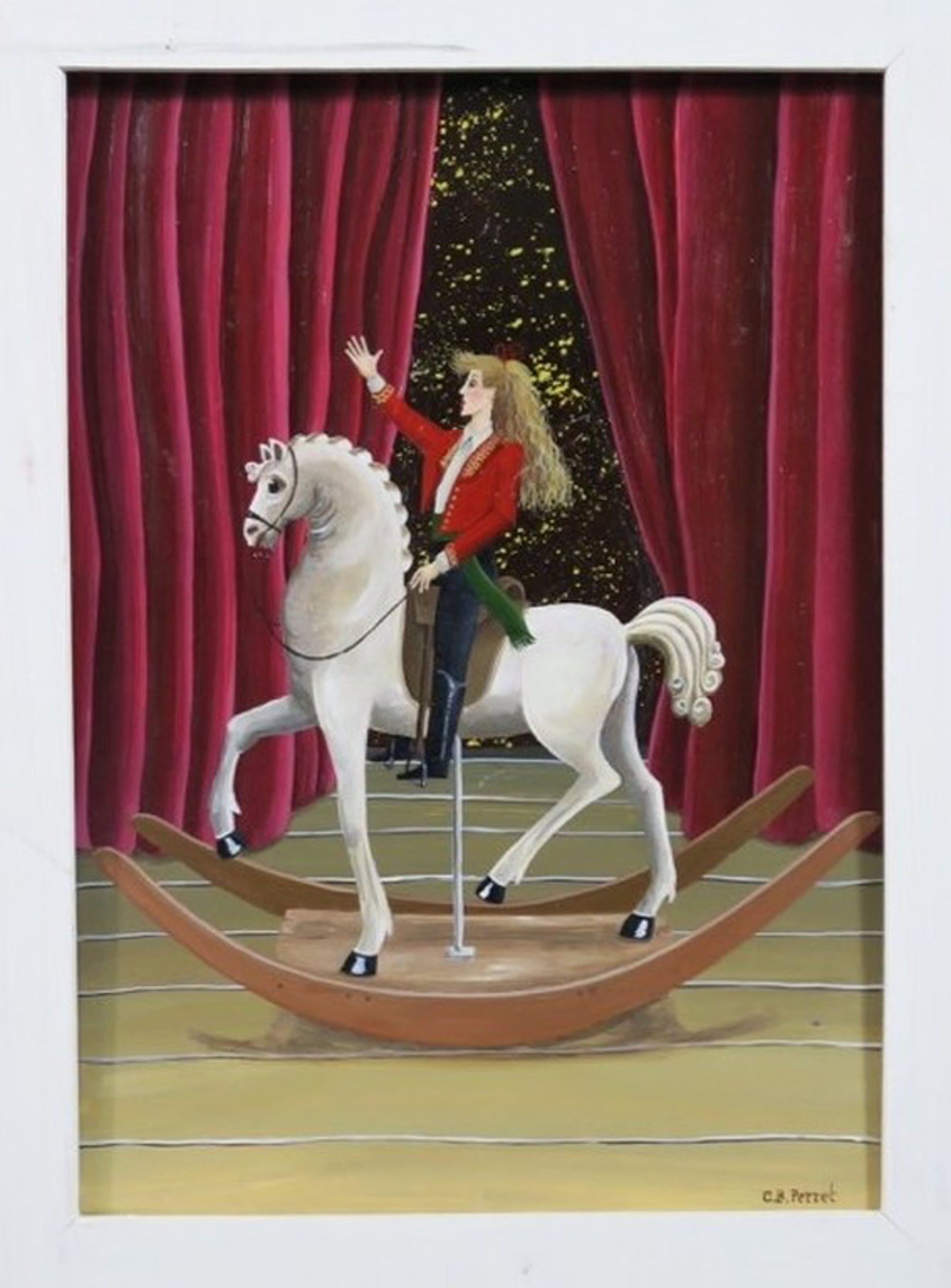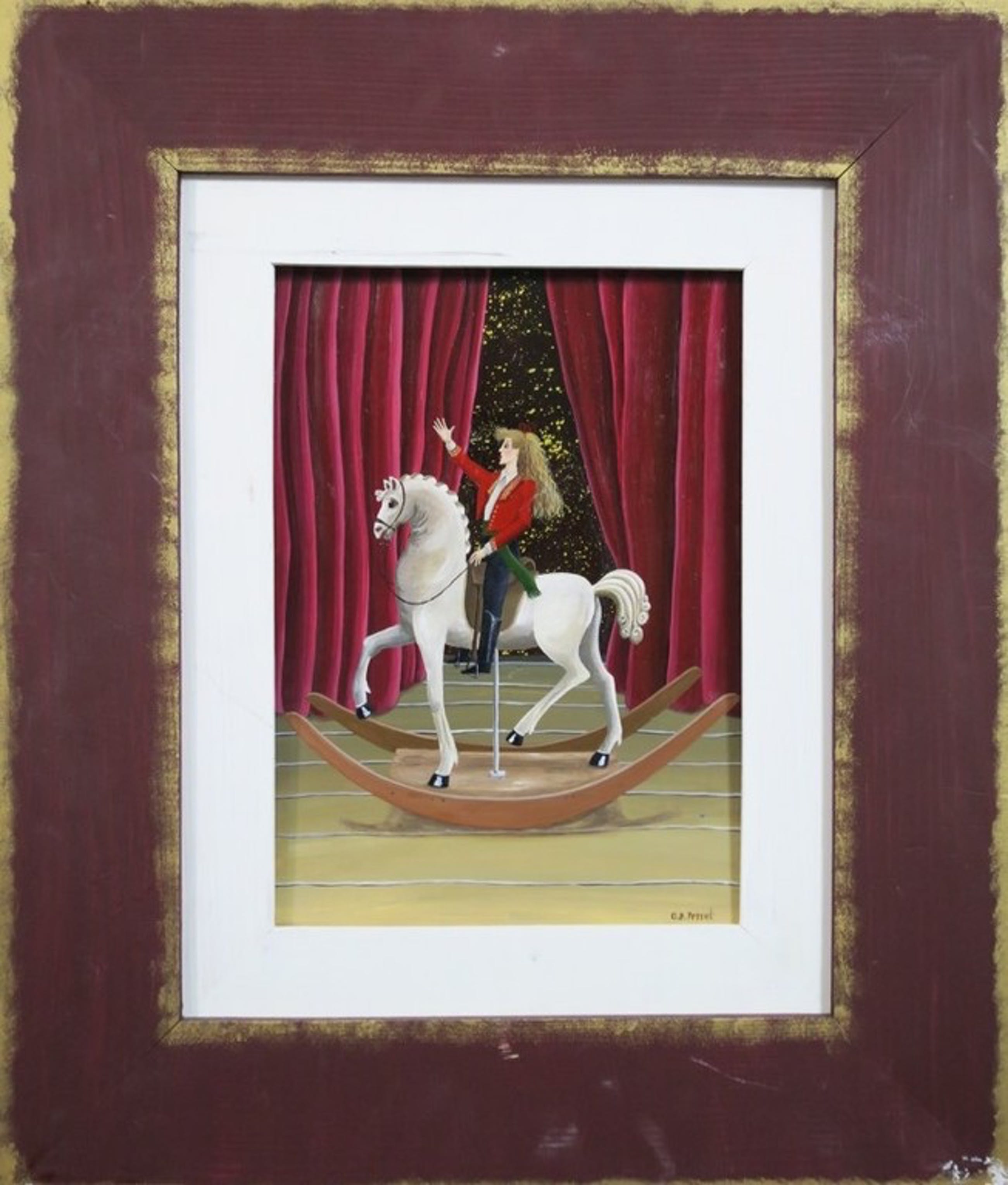 Conditie: In goede staat, maar met wat lichte krasjes, een door het haar van de figuur en langs de randen waar het board de lijst raakt. Waarschijnlijk gemakkelijk te restaureren.