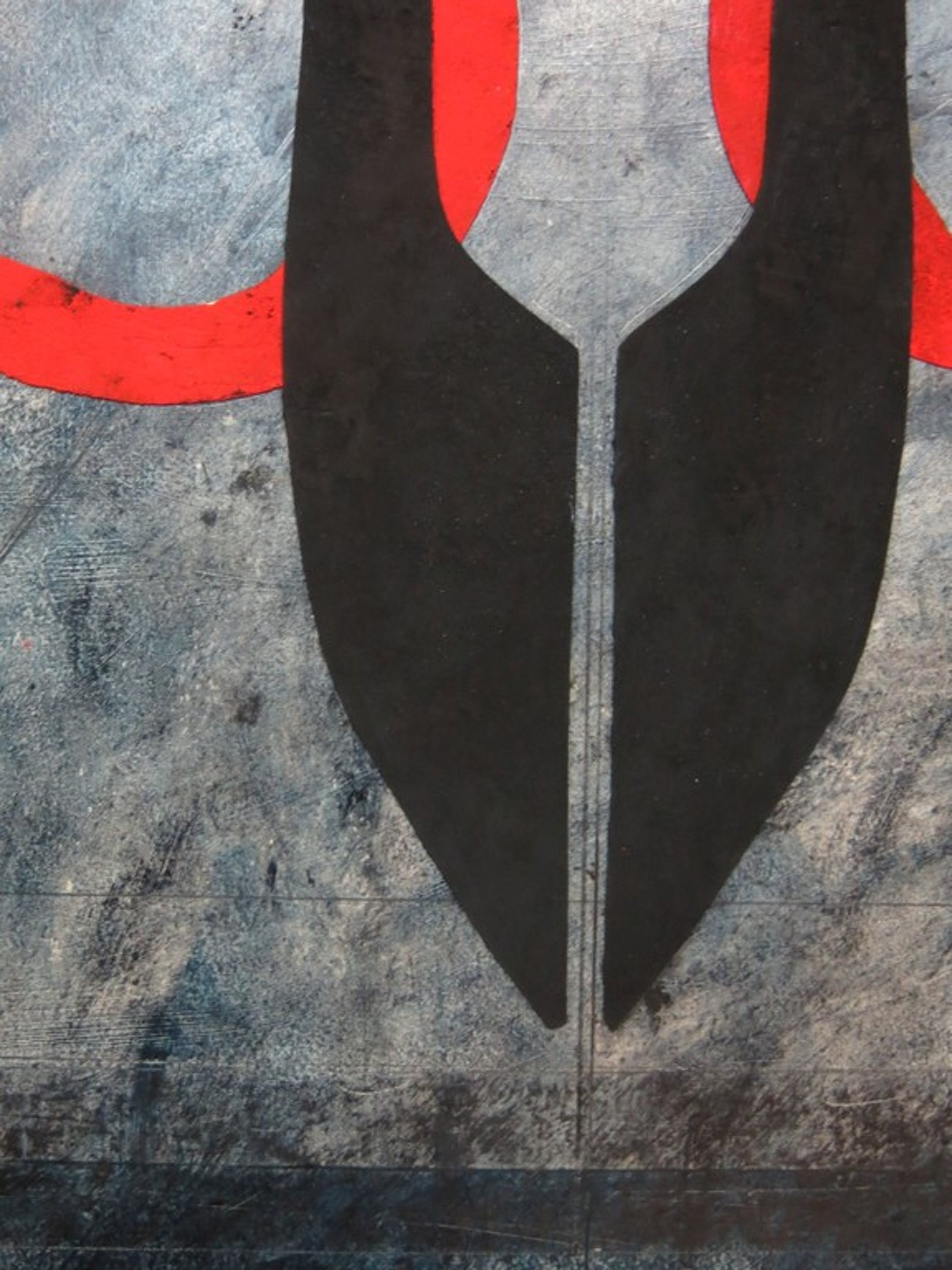 Materiaal: Olieverf, was en grafiet op papier, bevestigd op paneel