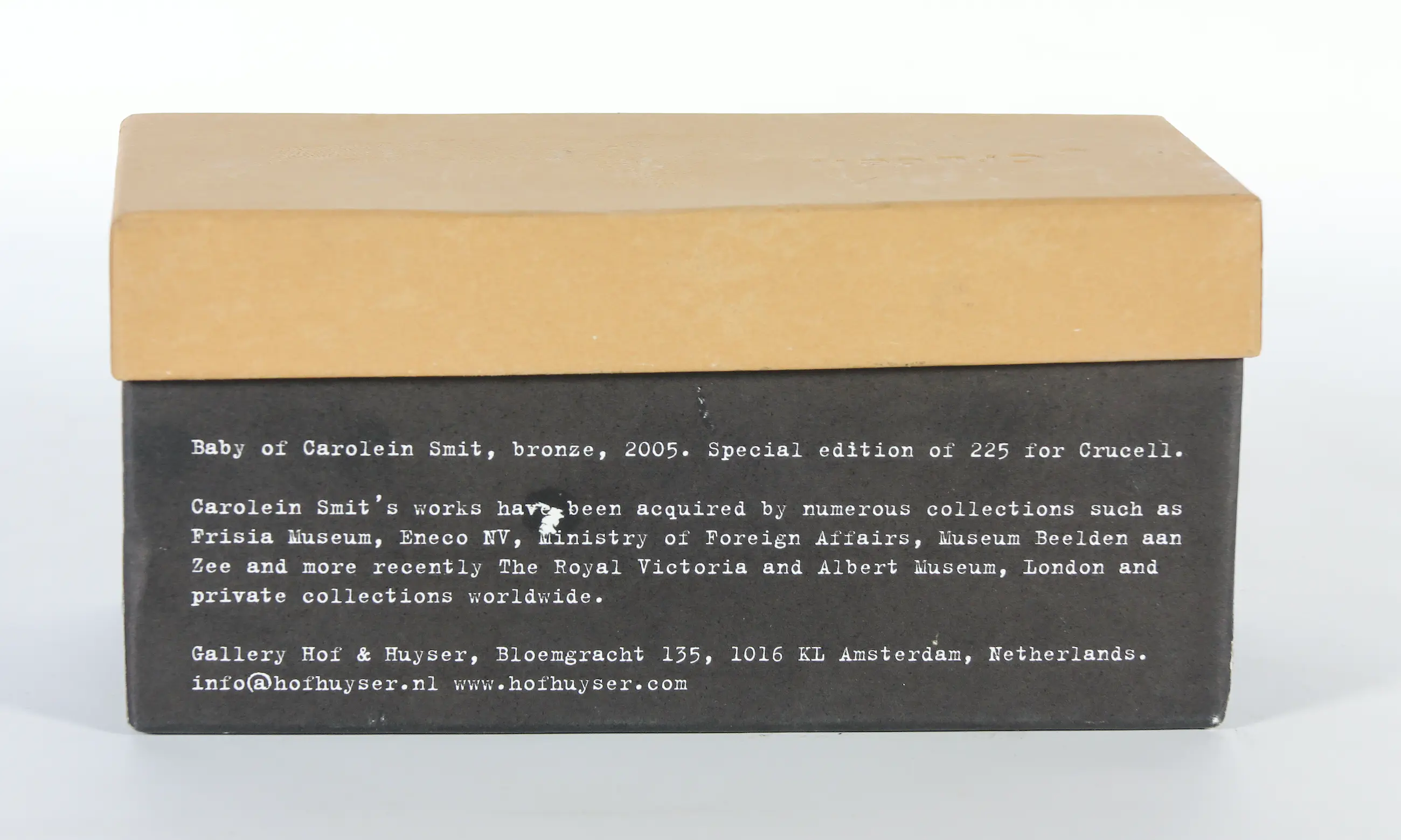Bronzen beeldje vervaardigd door beeldhouwster en Keramist Carolein Smit. Het betreft een speciale editie in opdracht van het biotechbedrijf Crucell. Het werk wordt geleverd met originele doos.