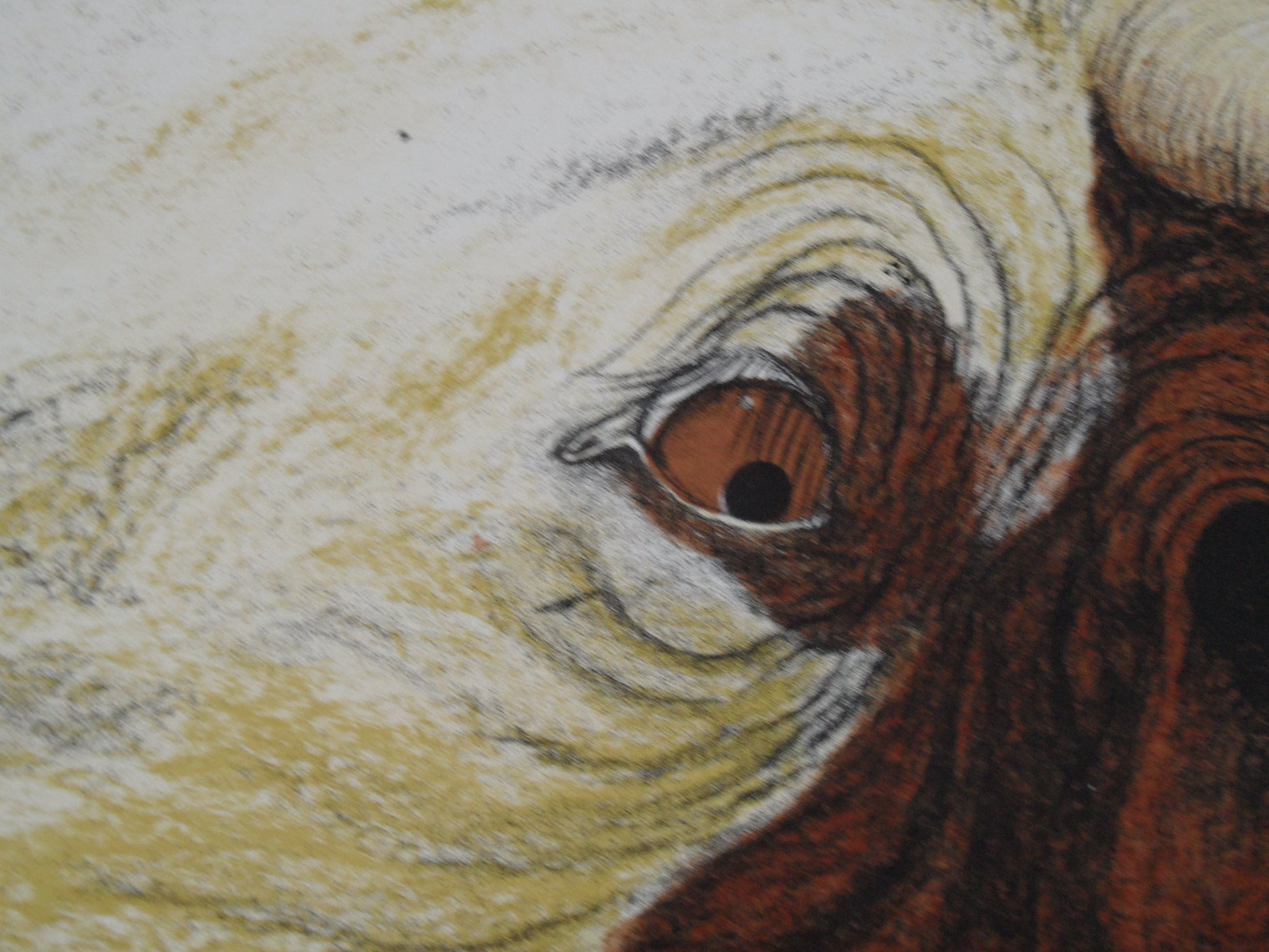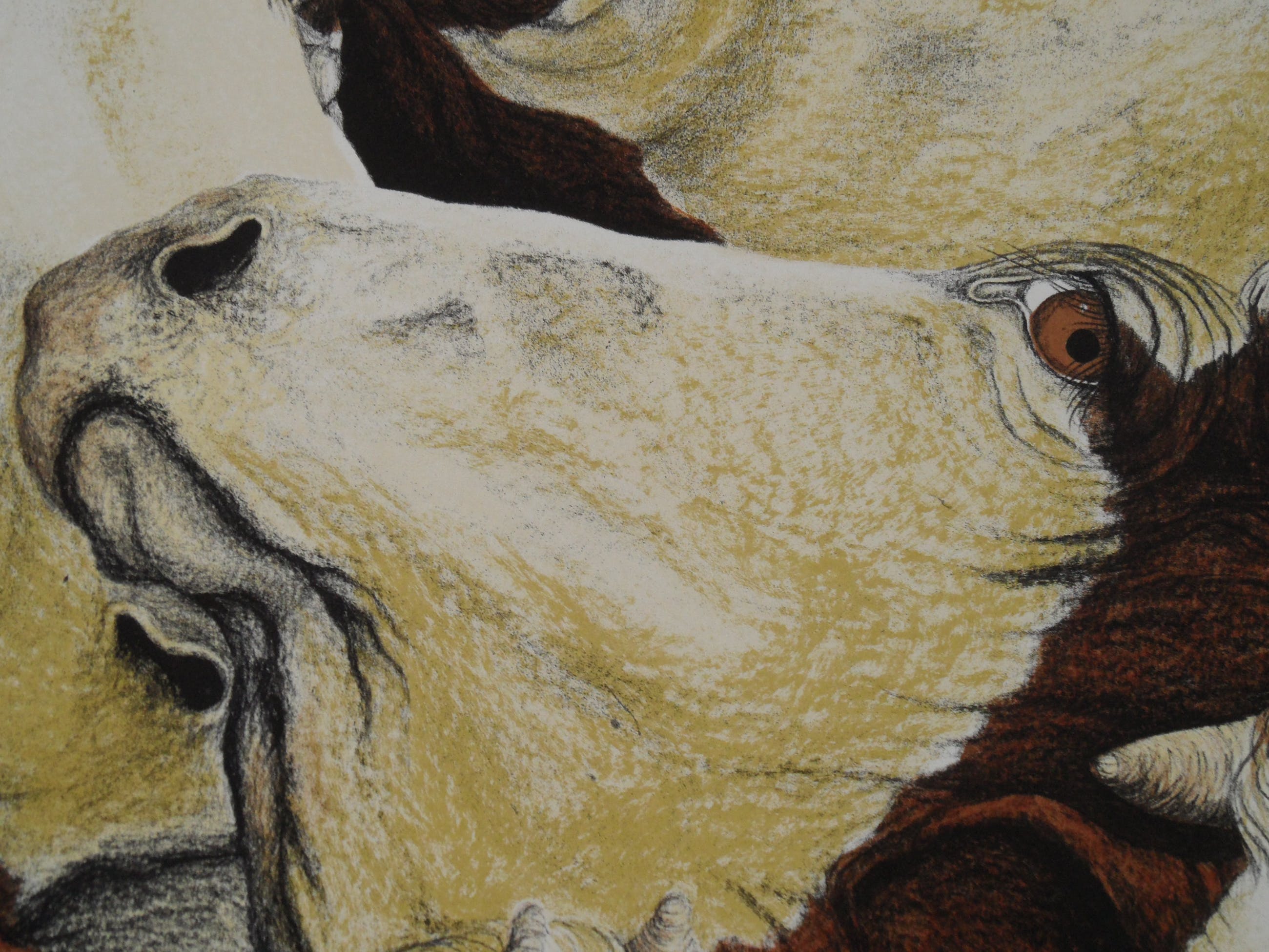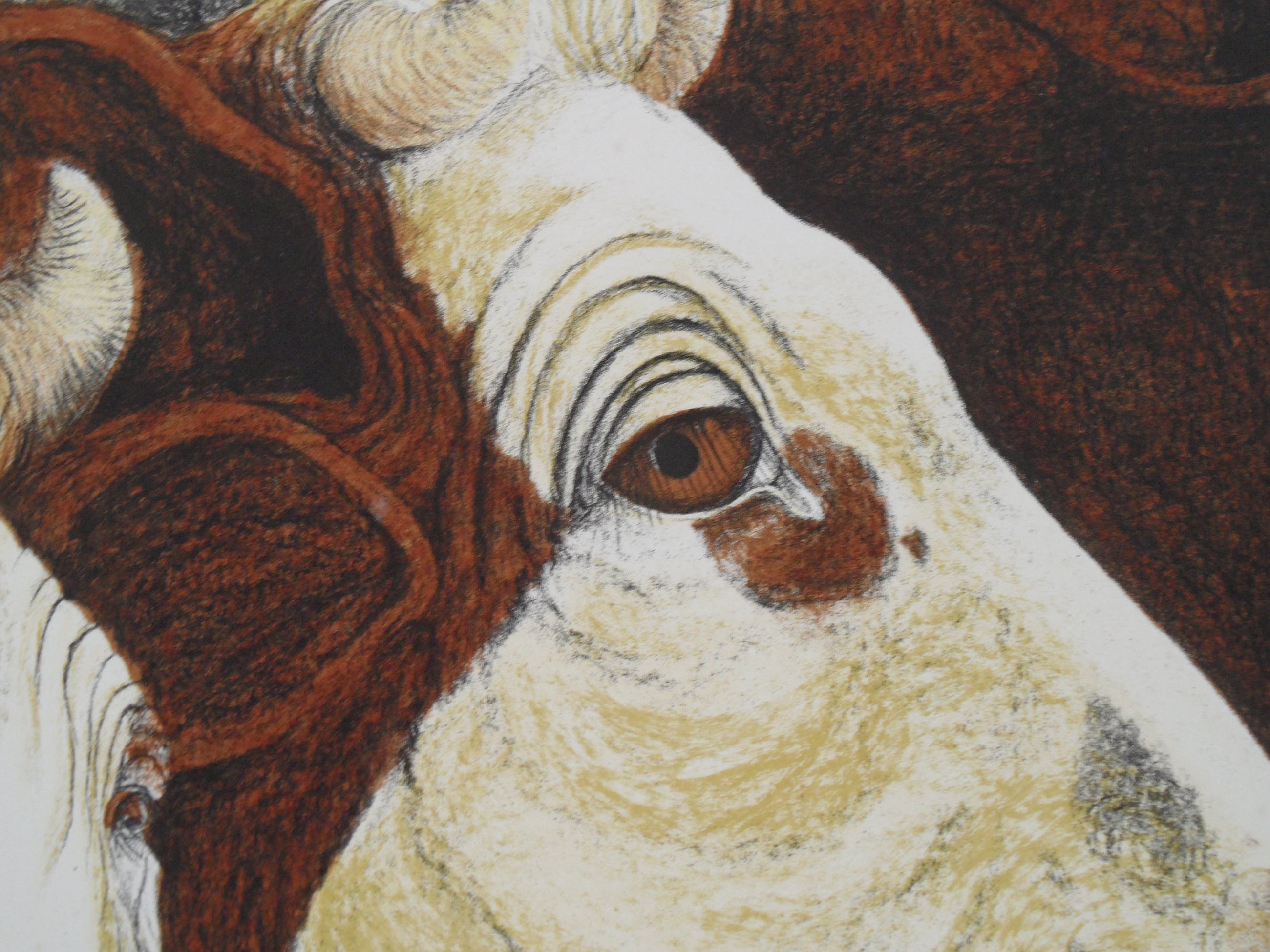 De compositie van deze zeefdruk is bijzonder en de afbeelding is minutieus en zeer realistisch gemaakt. Het geheel is een vertoon van vakmanschap.