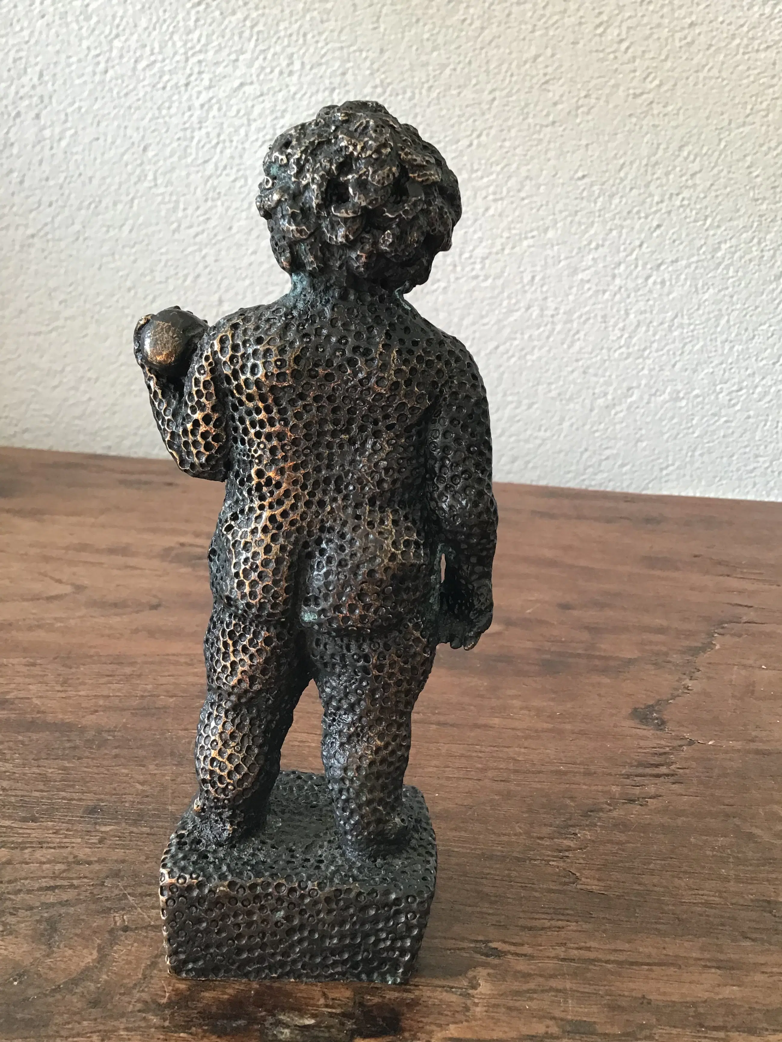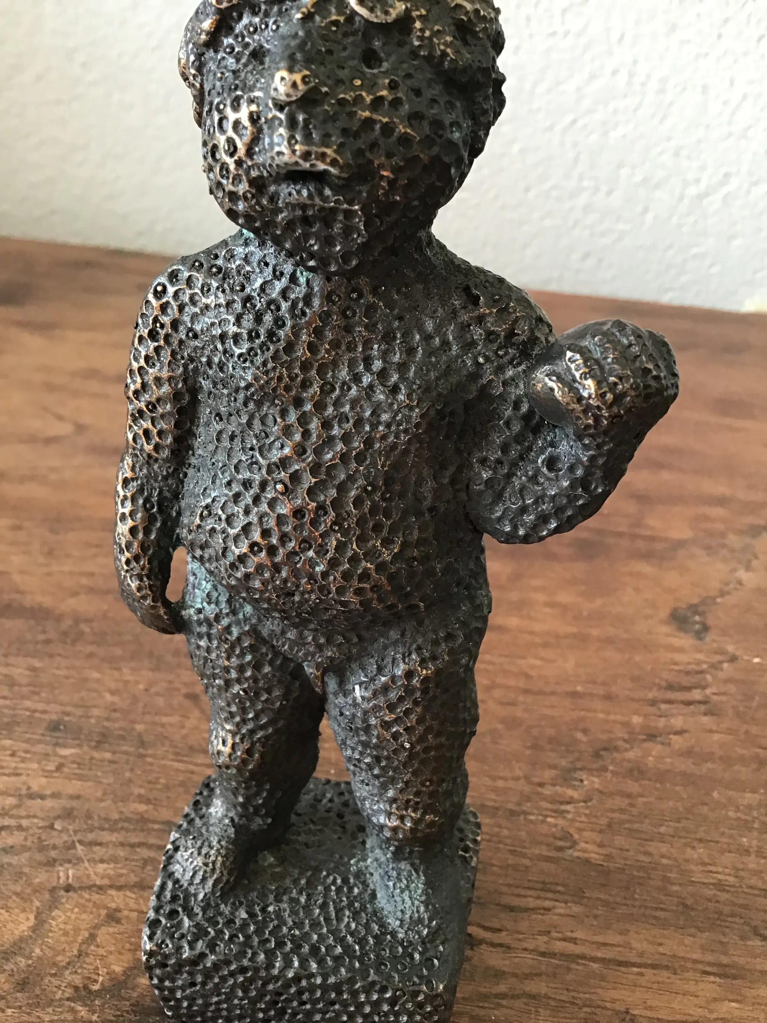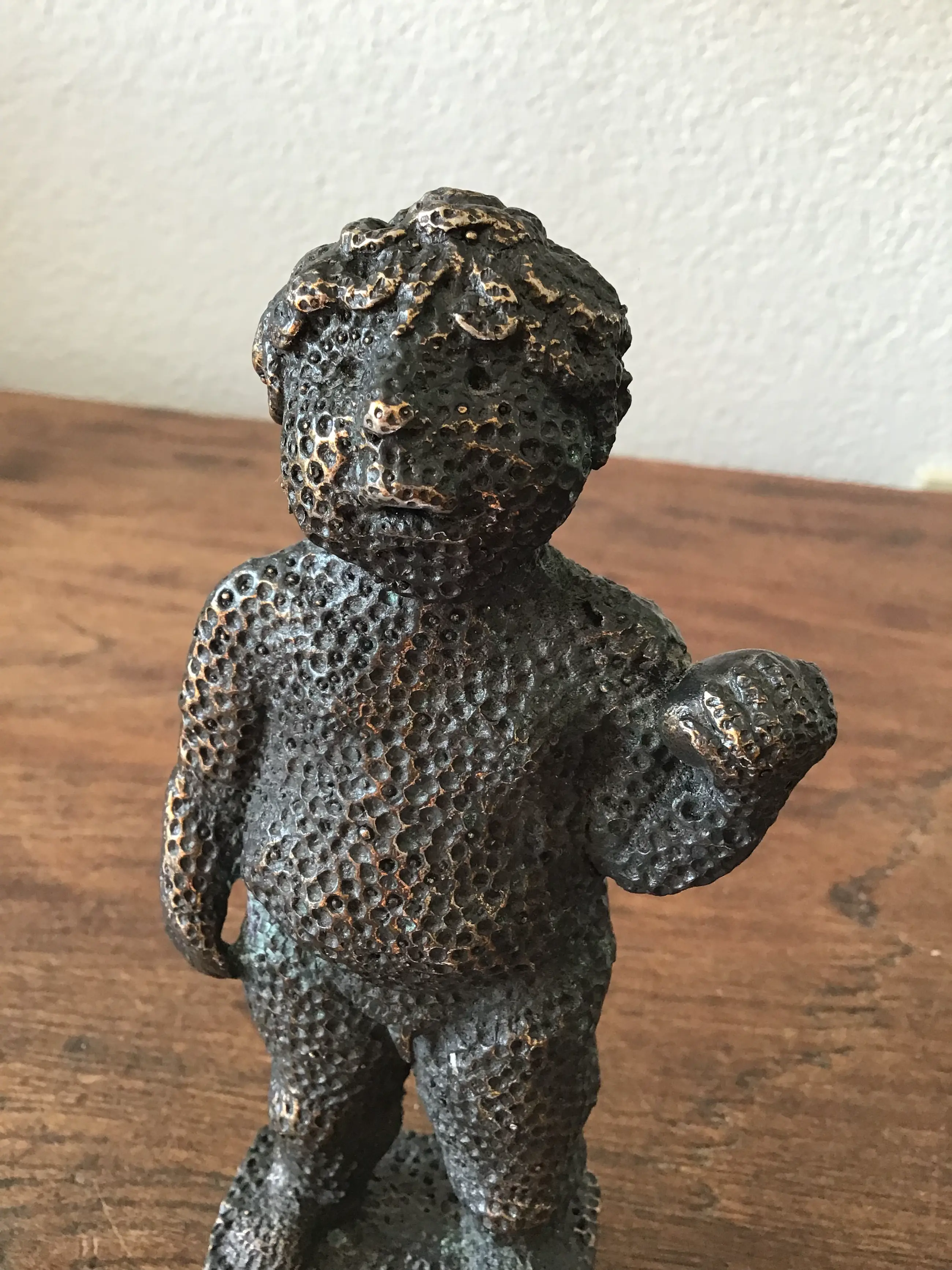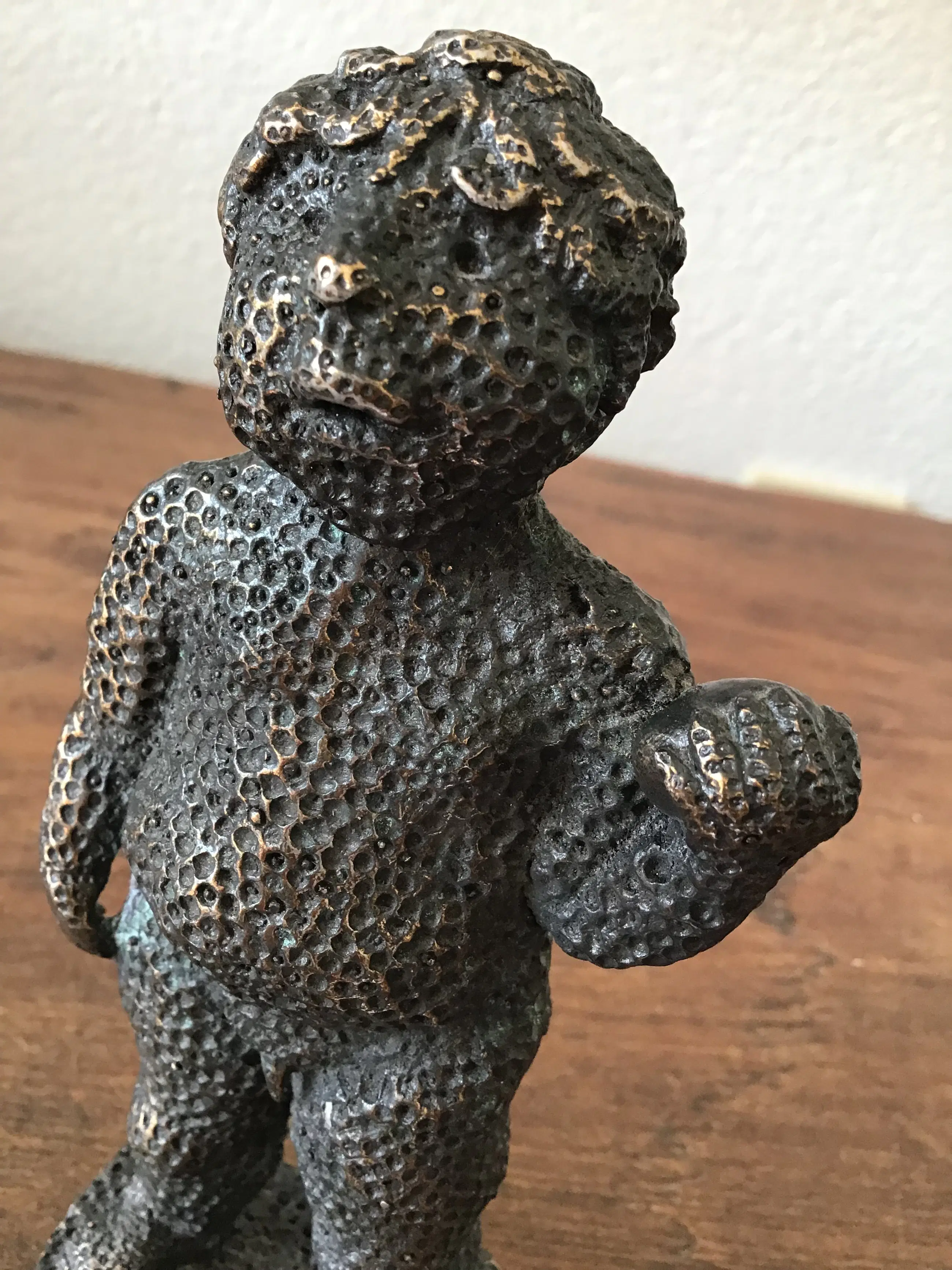 Uniek schattig beeldje van Carolein Smit, Brons Kind met bal Afmetingen 16x7x4cm Het is een bijzonder beeldje in brons daar Carolein keramisch werk maakt Conditie uitstekend Wordt aangetekend verzonden Over de kunstenaar: Zie Wikipedia