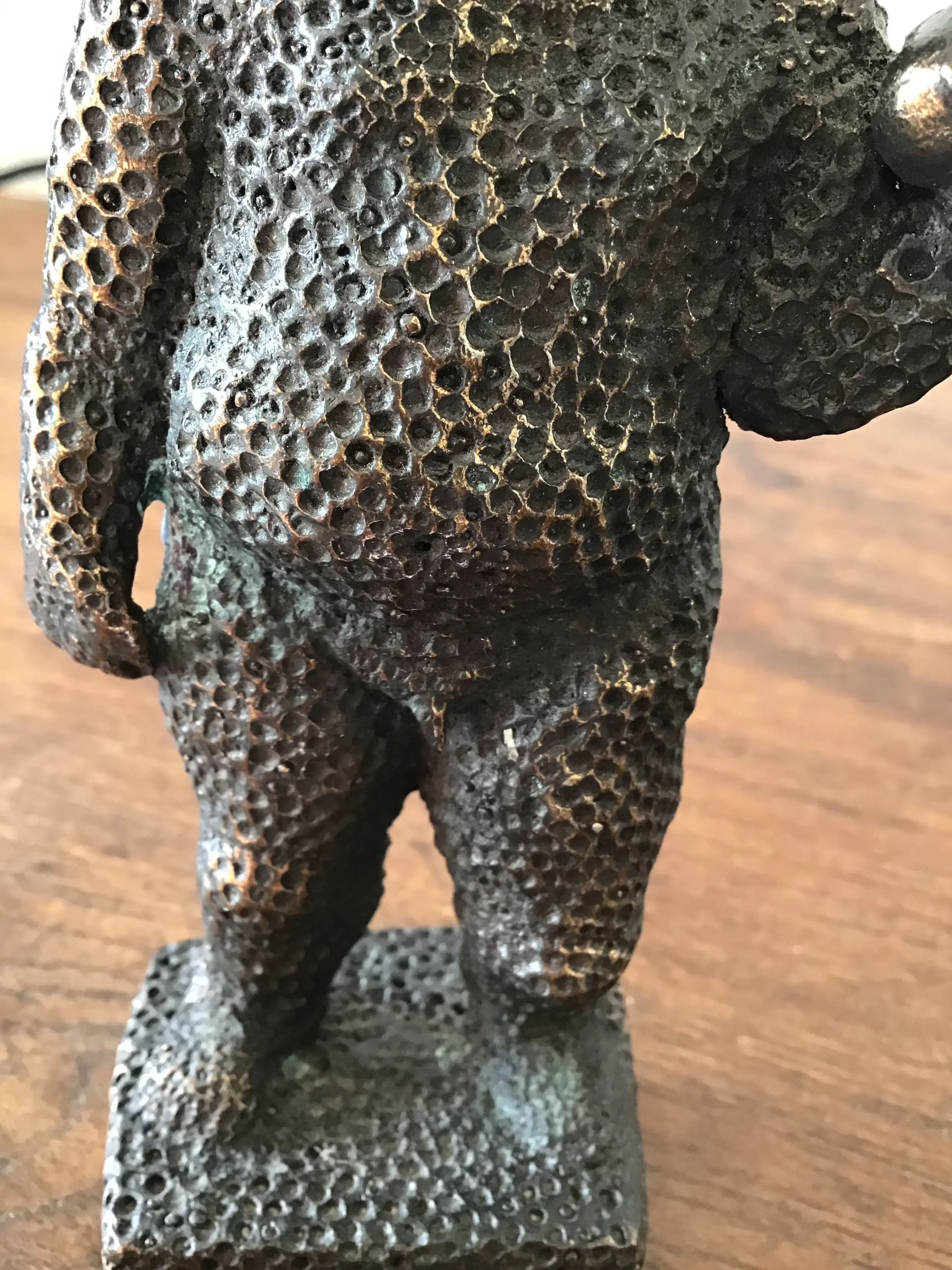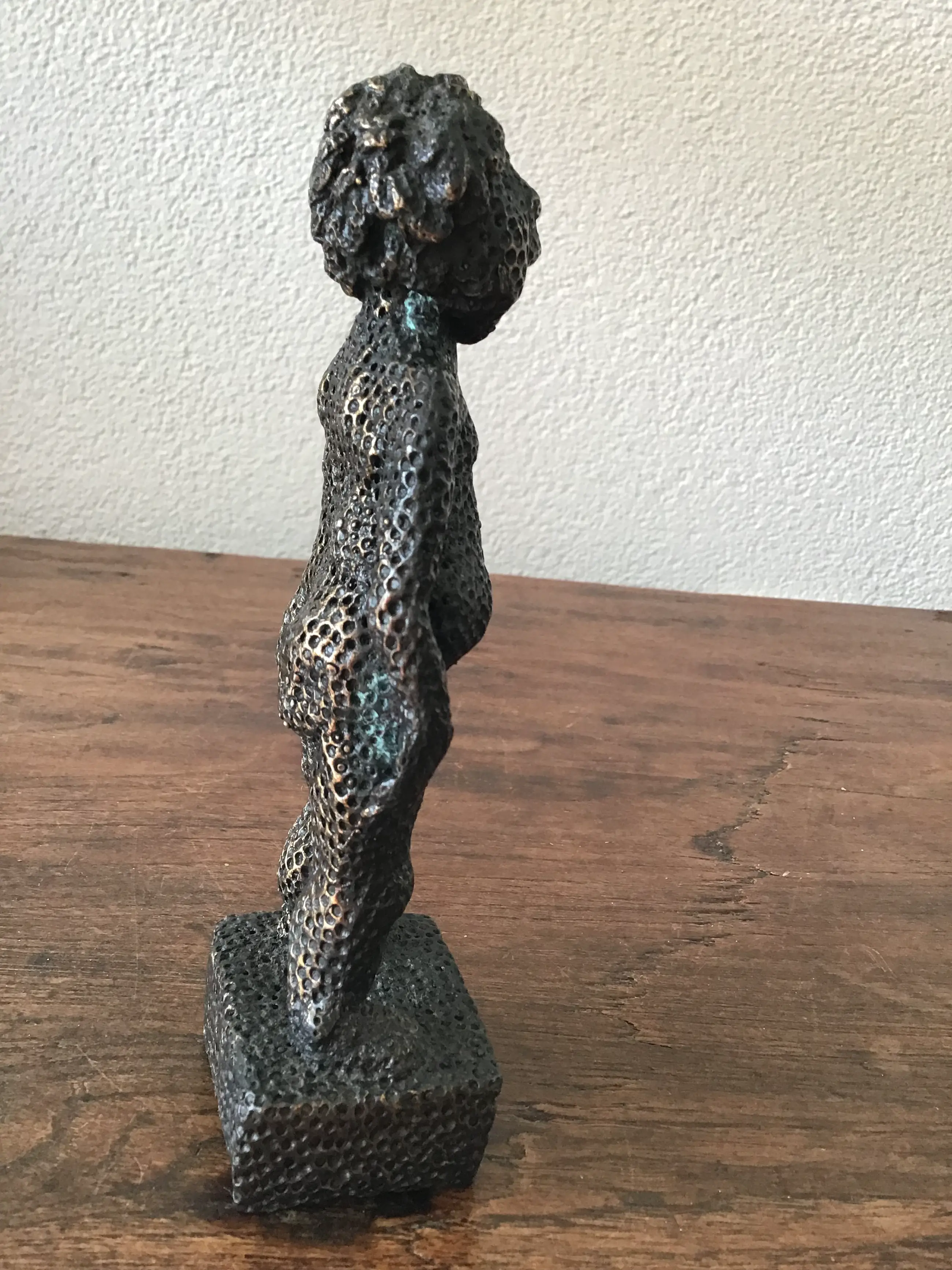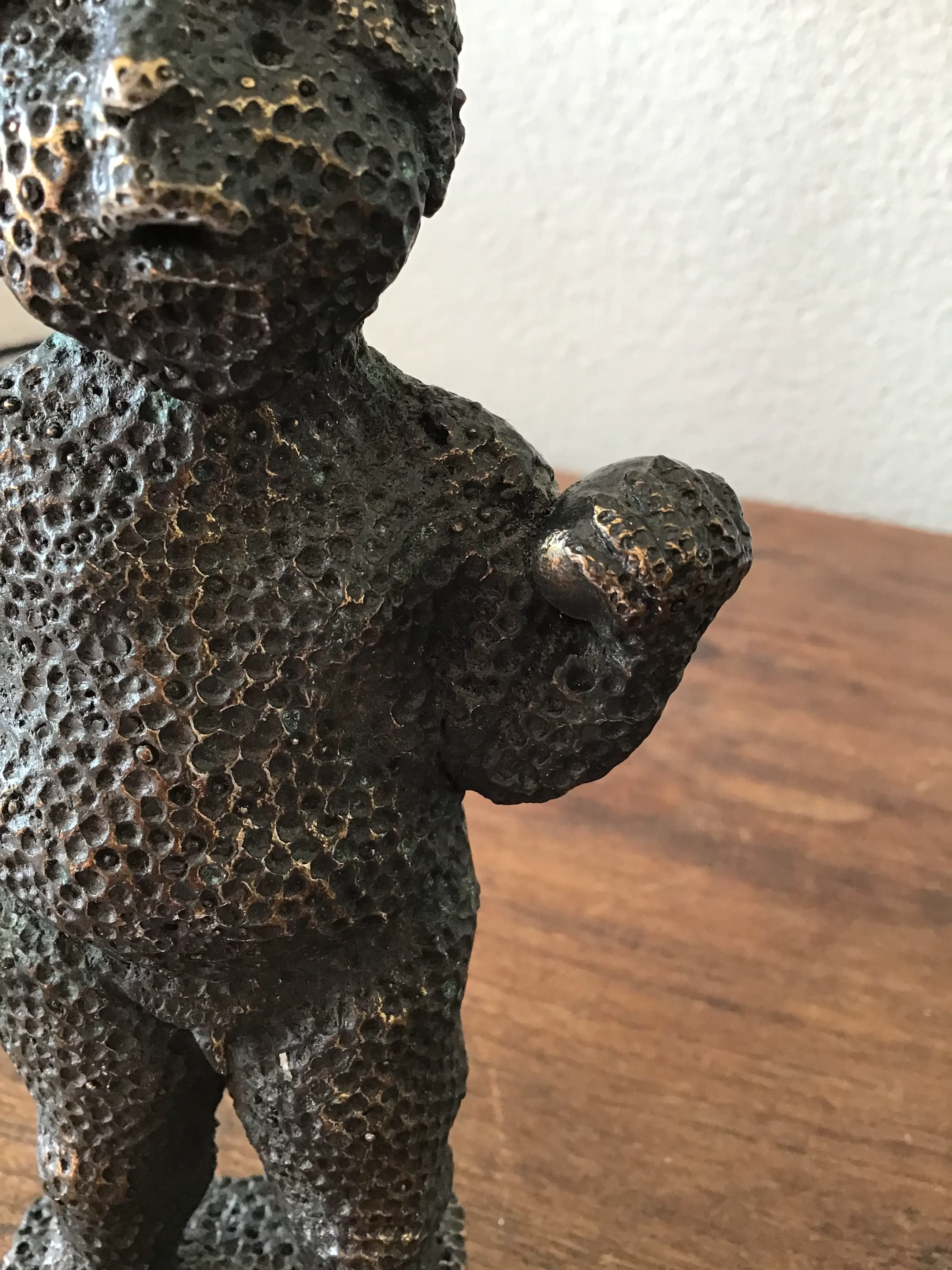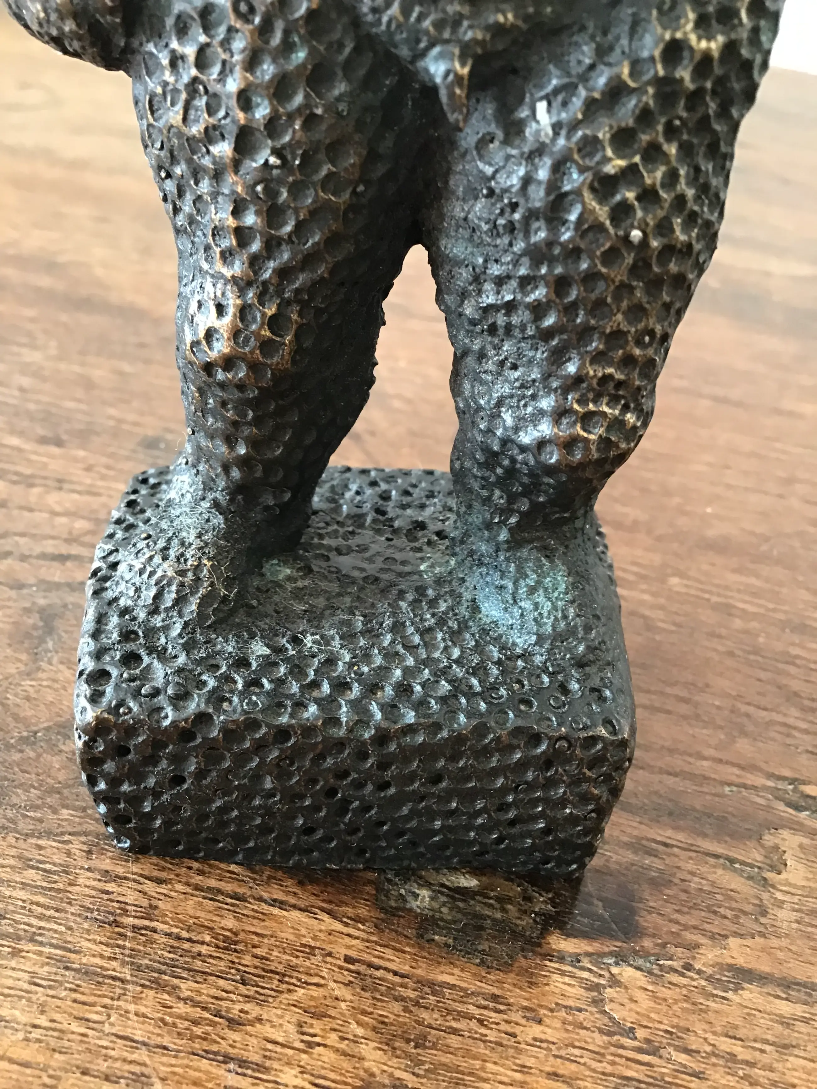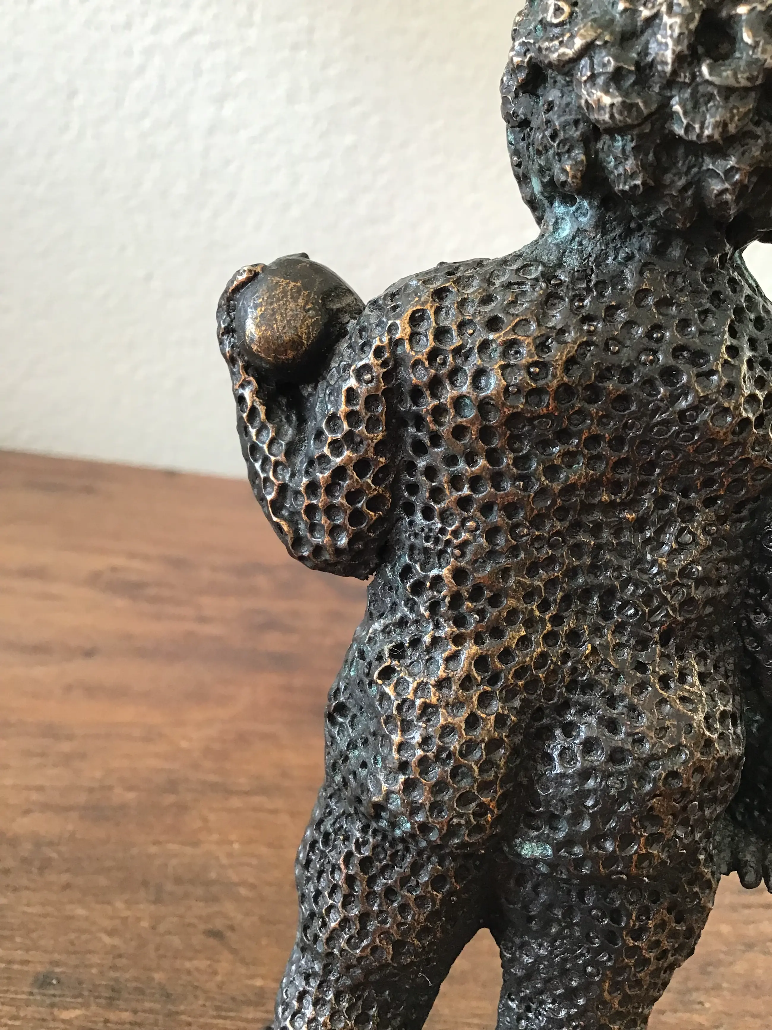 Uniek schattig beeldje van Carolein Smit, Brons Kind met bal Afmetingen 16x7x4cm Het is een bijzonder beeldje in brons daar Carolein keramisch werk maakt Conditie uitstekend Wordt aangetekend verzonden Over de kunstenaar: Zie Wikipedia