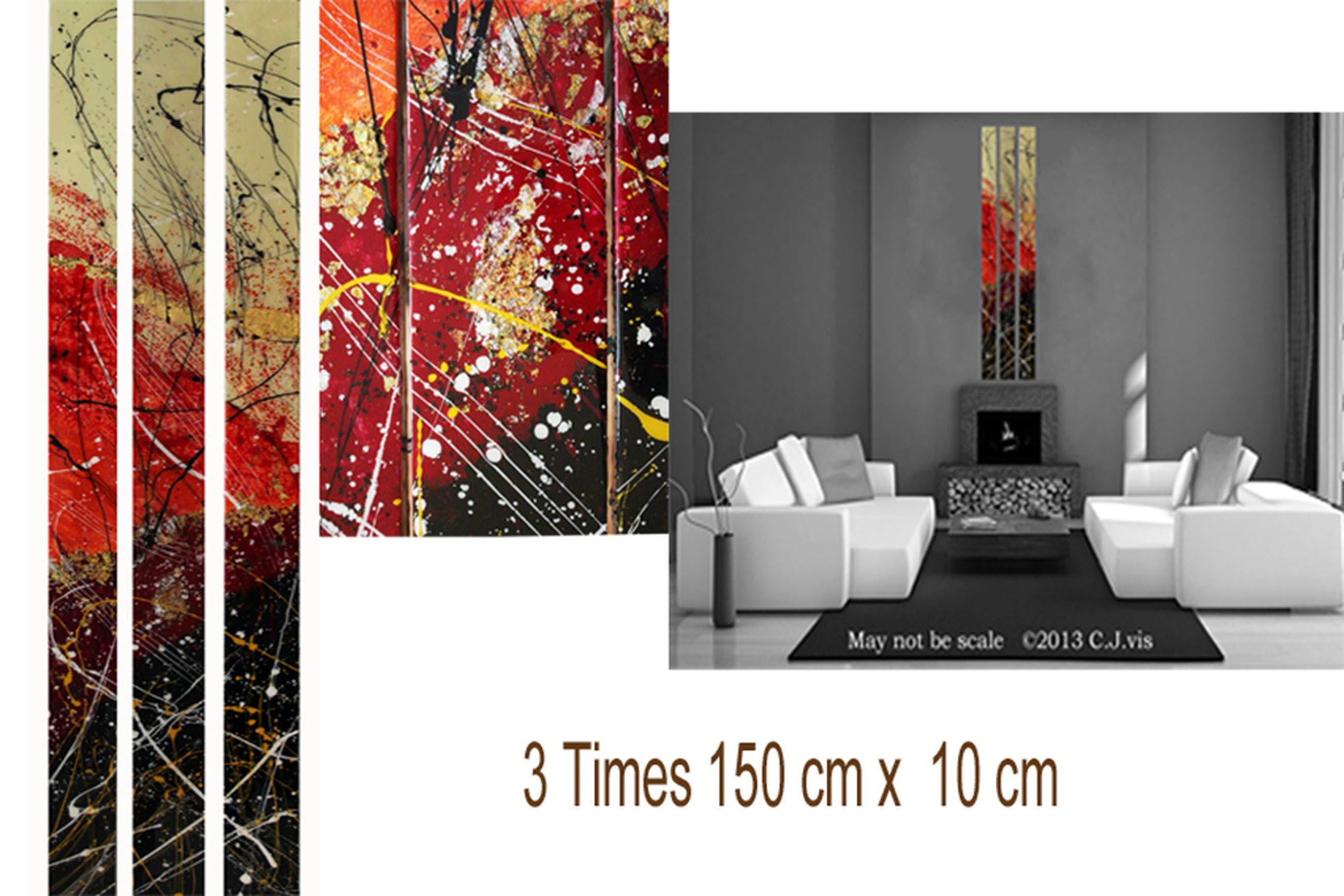 Drieluik 150 cm x 10 cm x 2 cm