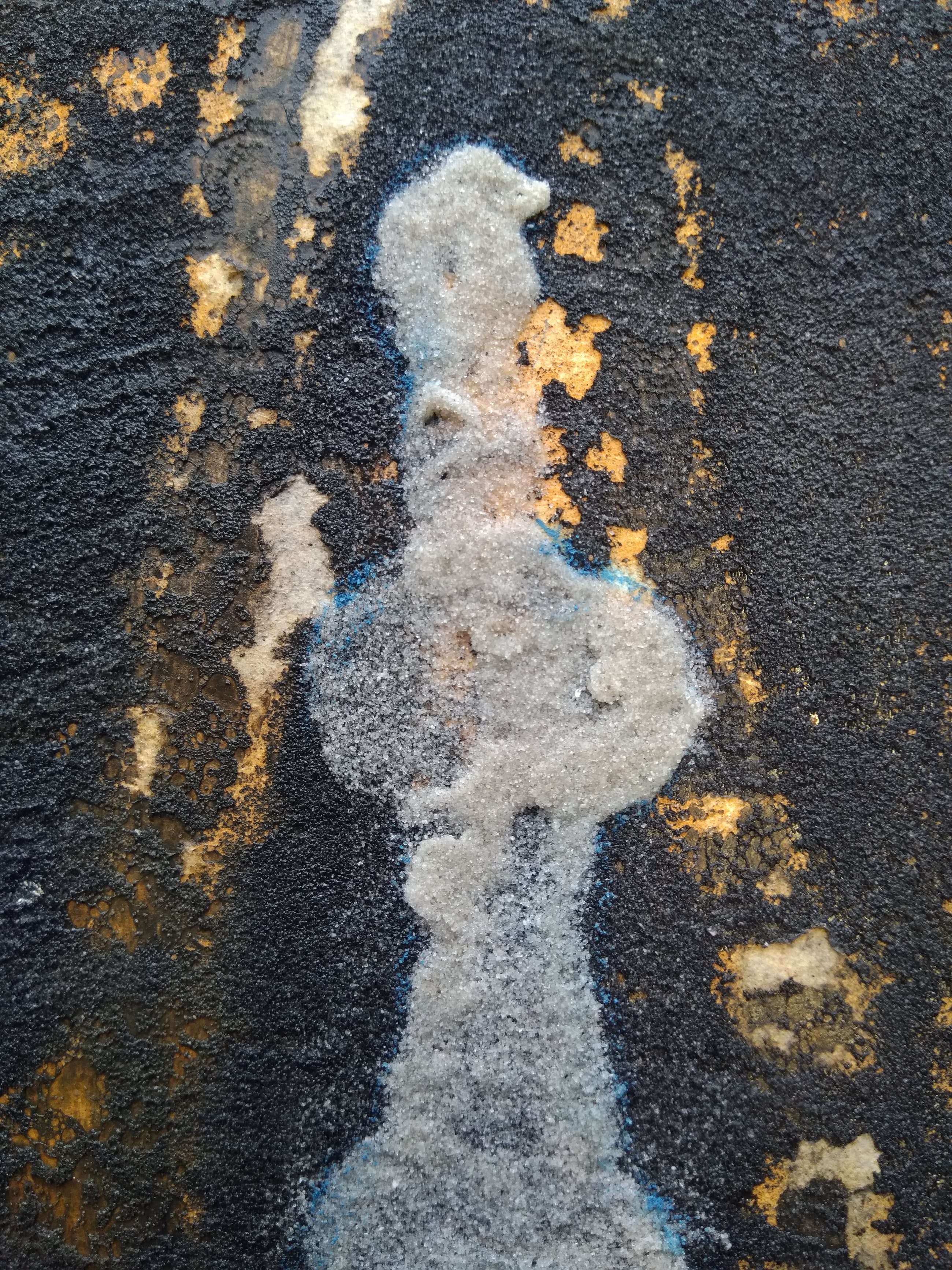 ''Schilderen is voor mij beeldhouwen op het platte vlak. Verf, zand,