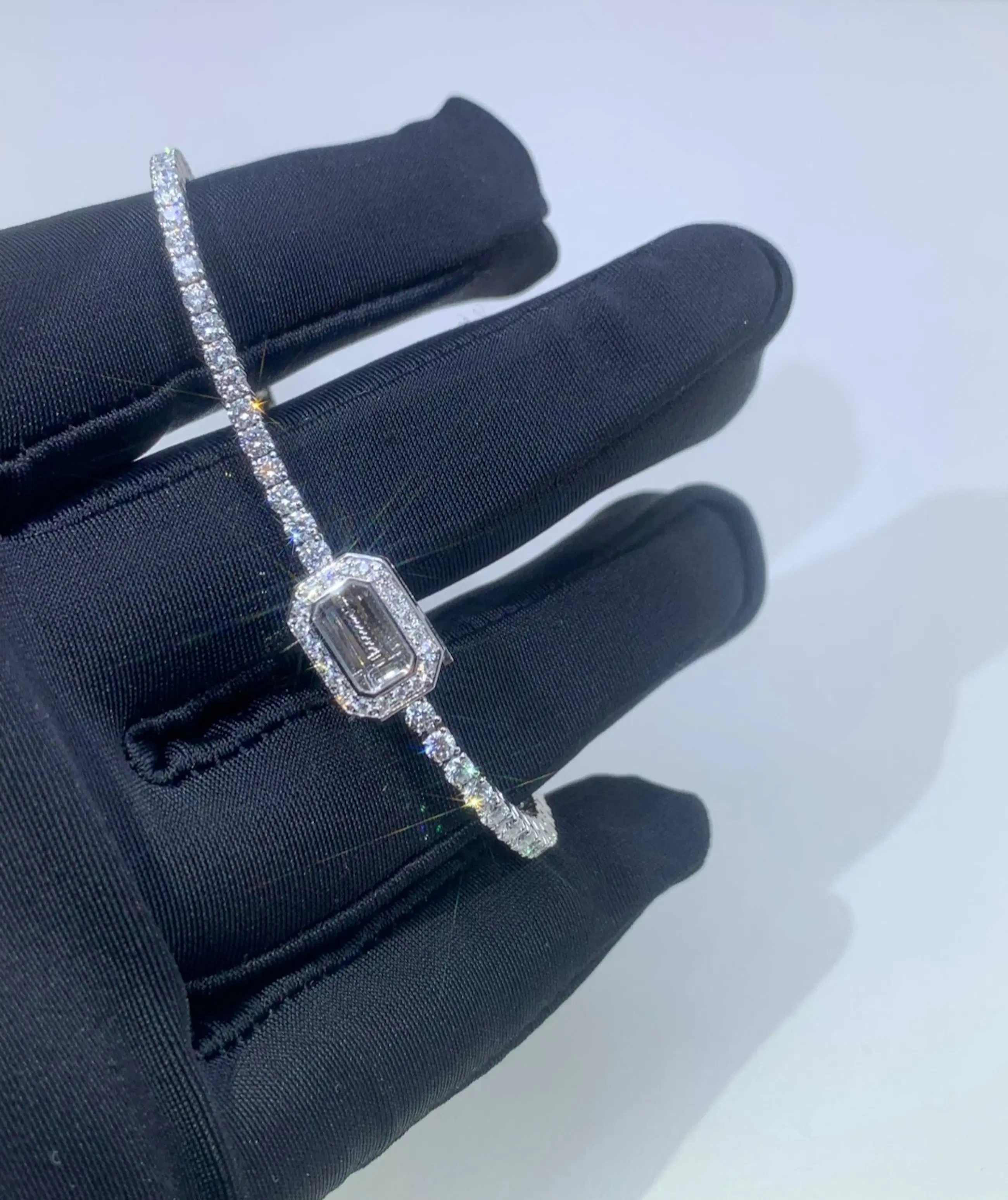 Een verfijnde armband vervaardigd van 18-karaats goud, geïnspireerd op het iconische ontwerp van de Rivière Vendôme Bracelet van Boucheron. Dit sieraad straalt luxe en elegantie uit, met een tijdloos design dat perfect aansluit bij zowel dagelijkse als formele gelegenheden. Let op: dit betreft geen origineel Boucheron sieraad, maar een ontwerp geïnspireerd op deze stijl.