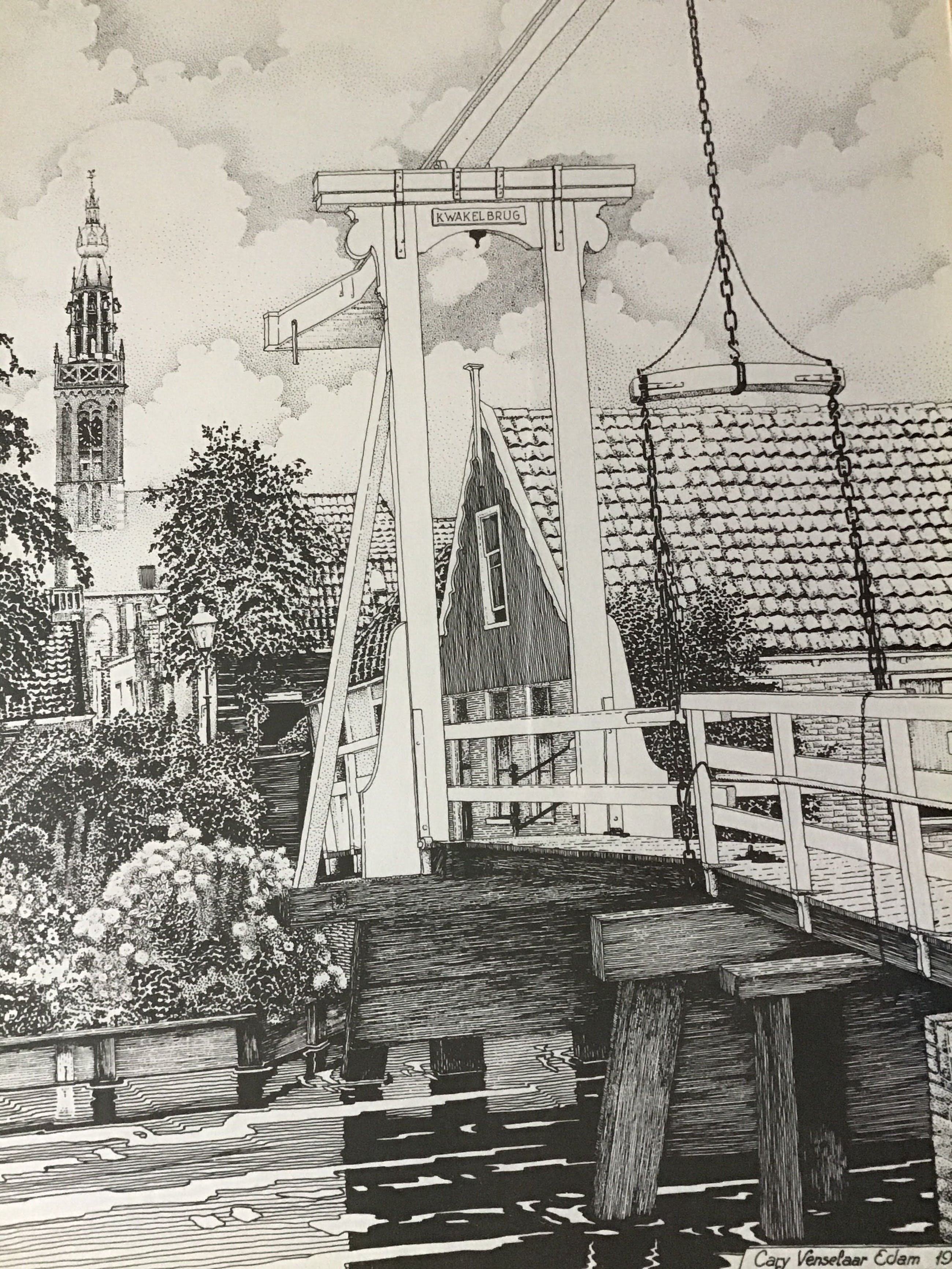 Nauwkeurig beeld van de Kwakelbrug in Edam. Venselaar is meer bekend om zijn oriëntaalse werk.