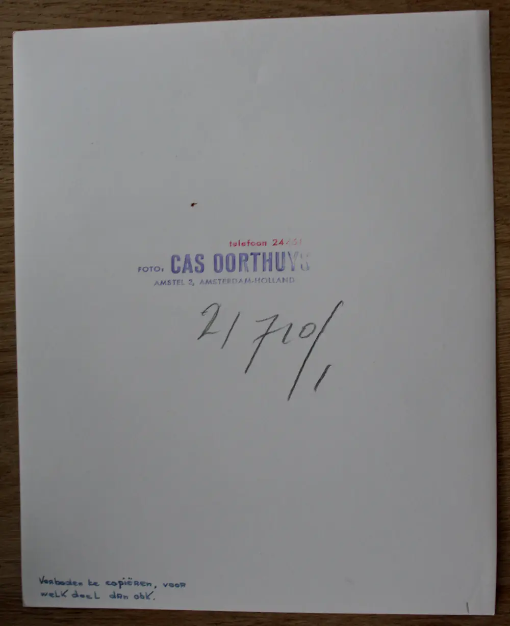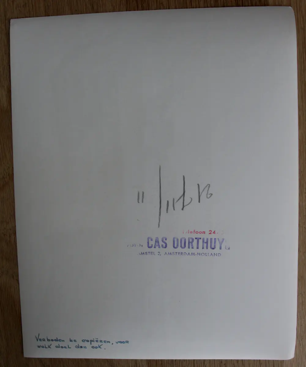 3 Foto's van Cas Oorthuys. Afmetingen foto: H20 x b25cm. Achterop, zijn de foto's voorzien van een atelier stempel. De authenticiteit van het aangeboden werk wordt volledig gegarandeerd. Een certificaat van echtheid kan, op aanvraag, worden gemaild.