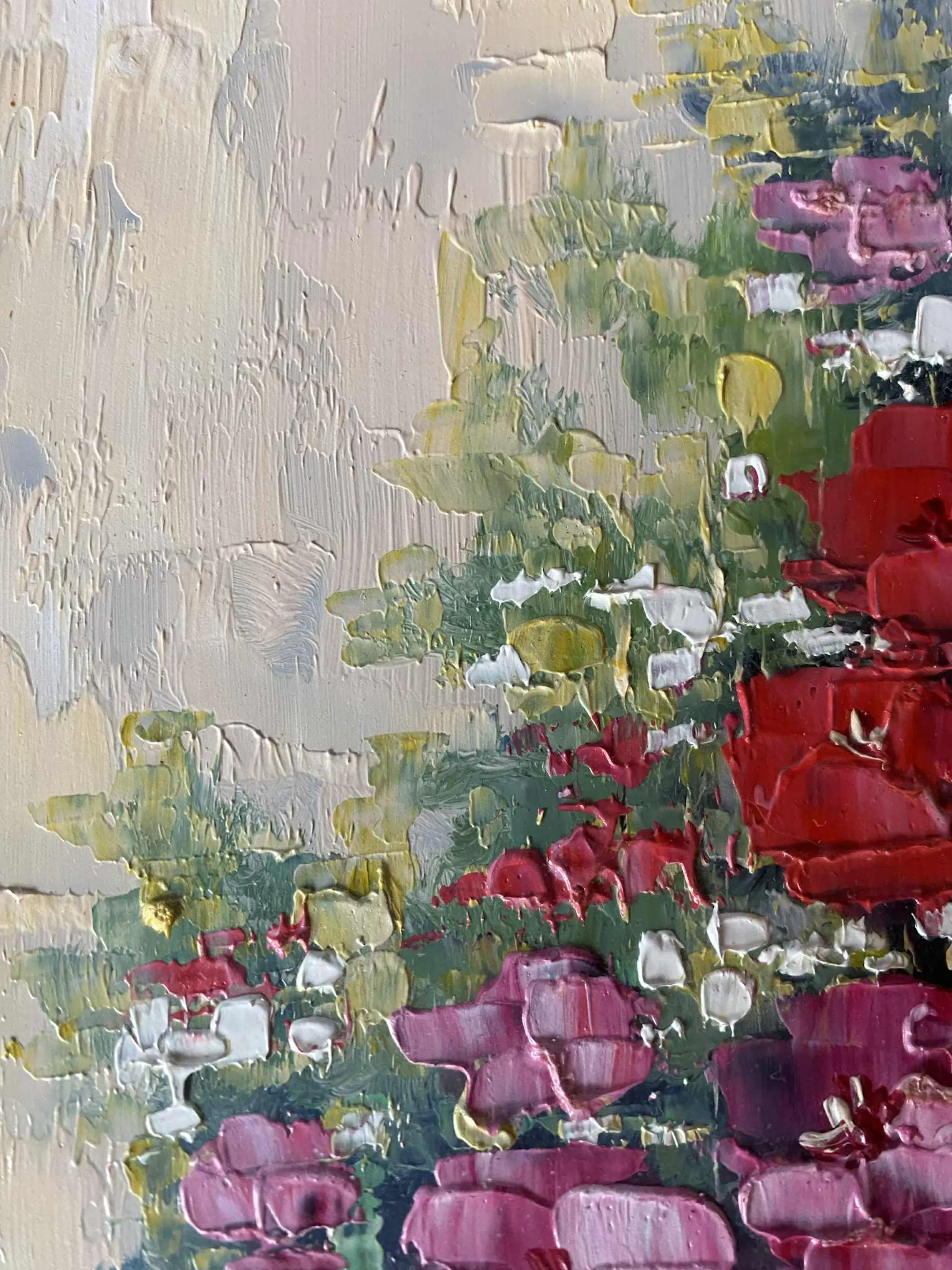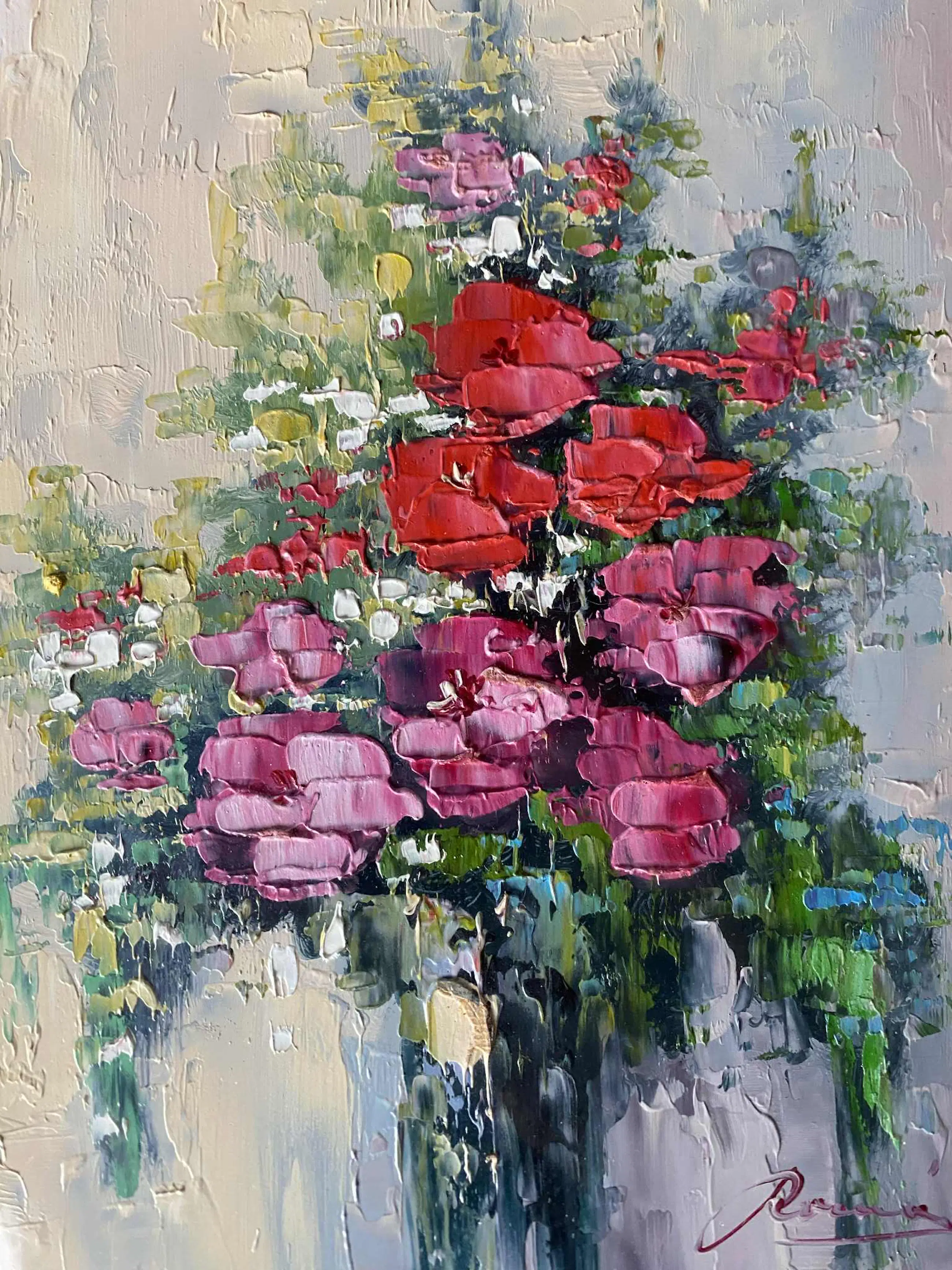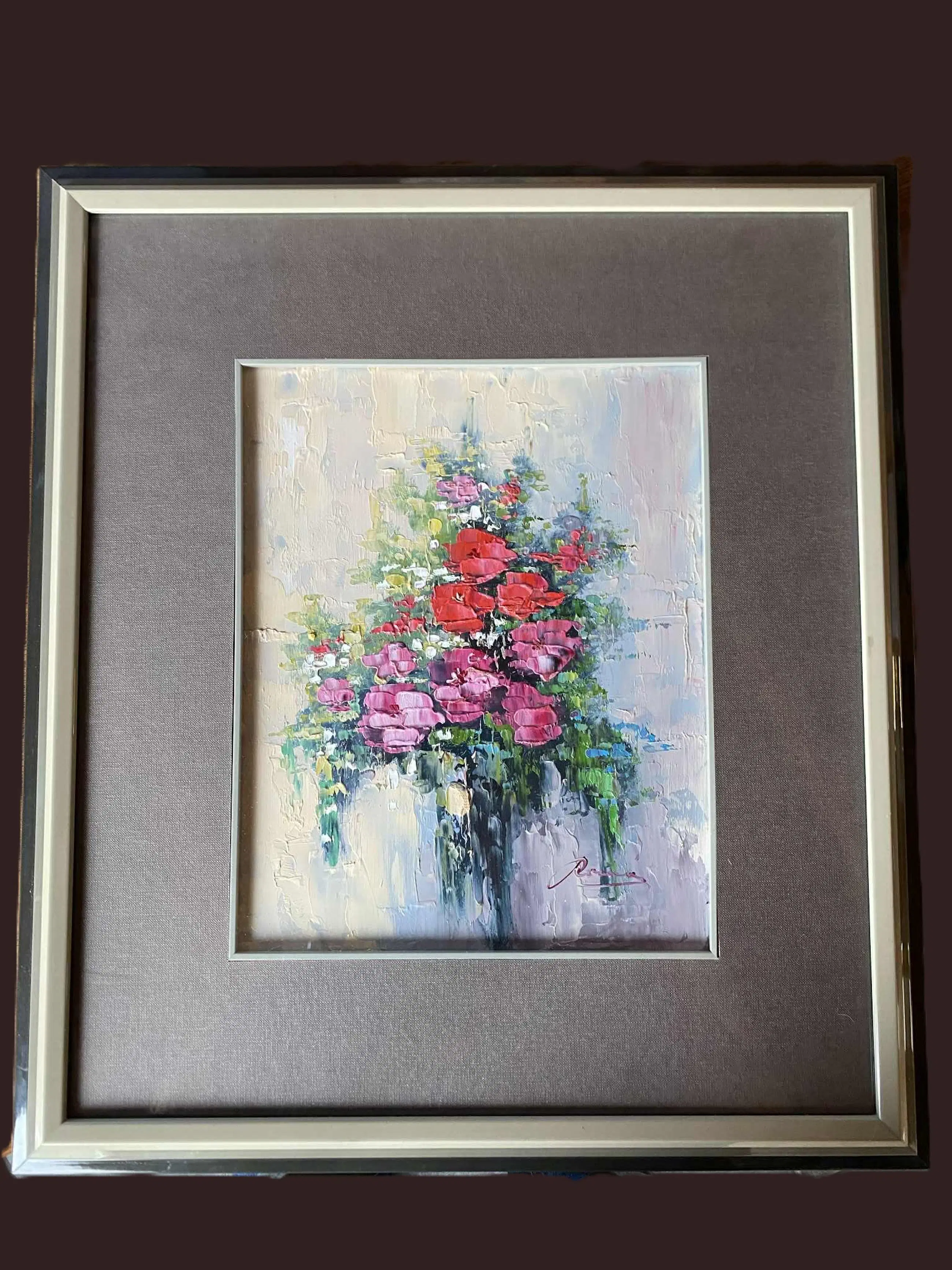 Dit is een prachtig werk waar de impasto volledig tot zijn recht komt. De kader is in driekleurige kunststof, achteraan stofvrij door een zachte doek.