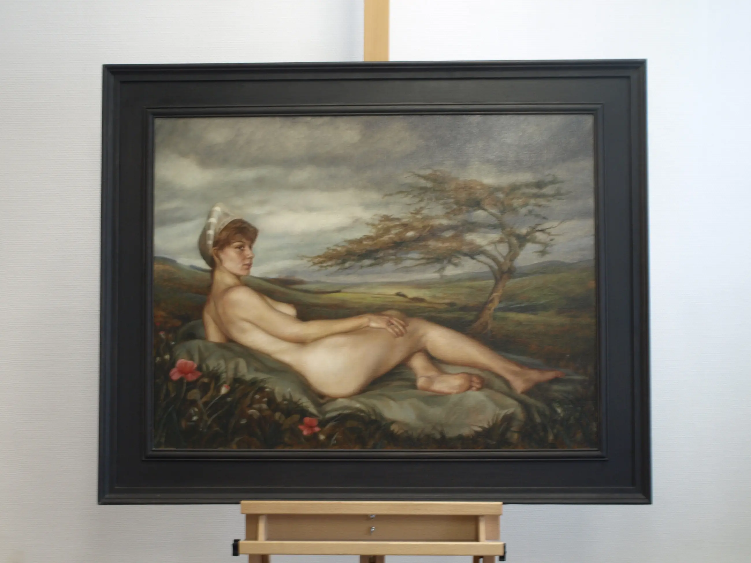 Informatie over de kunstenaar: Cas Waterman (Soest, 4 mei 1958), schilder. -Opleiding: D’ Witte Leli in Amsterdam (1981-1983). Hij werkte samen met de Amsterdamse kunstenaar Robert Jasper Grootveldt (1932-2009) aan een vlottenproject en drijvend theaterpodium. Hij was vormgever binnen de stichting ‘Beeldend Theater’ waar hij de vormgeving van diverse (poppen)theater- en filmproducties verzorgde. Hij volgde de masterclass schildertechniek bij kunstenaar Henk Huig (1934-) en deed uitvoerig onderzoek naar traditionele en meer eigentijdse schildertechnieken. Cas Waterman is vanaf 1989 zelfstandig kunstenaar en vanaf 2010 is hij is docent schildertechniek bij Academie Renshof. Ook geeft hij les in zijn eigen atelier in Amsterdam. Uit een recensie: “Cas Waterman is zonder twijfel de beste schilder van het naakt in Nederland. De uitstraling van de vrouwen op zijn schilderijen balanceert tussen het aardse, en het mystieke van iconen. Hij liep jarenlang met een schilderskist over de heuvels van Wales, de dalen in Yorkshire en langs de rivieren in eigen land en raakte in de ban van de zondeval. Hierover gaan zijn intrigerende schilderijen”. Voor meer informatie over de kunstenaar: www.caswaterman.nl https://www.caswaterman.nl/kunstwerk/201998_next.html